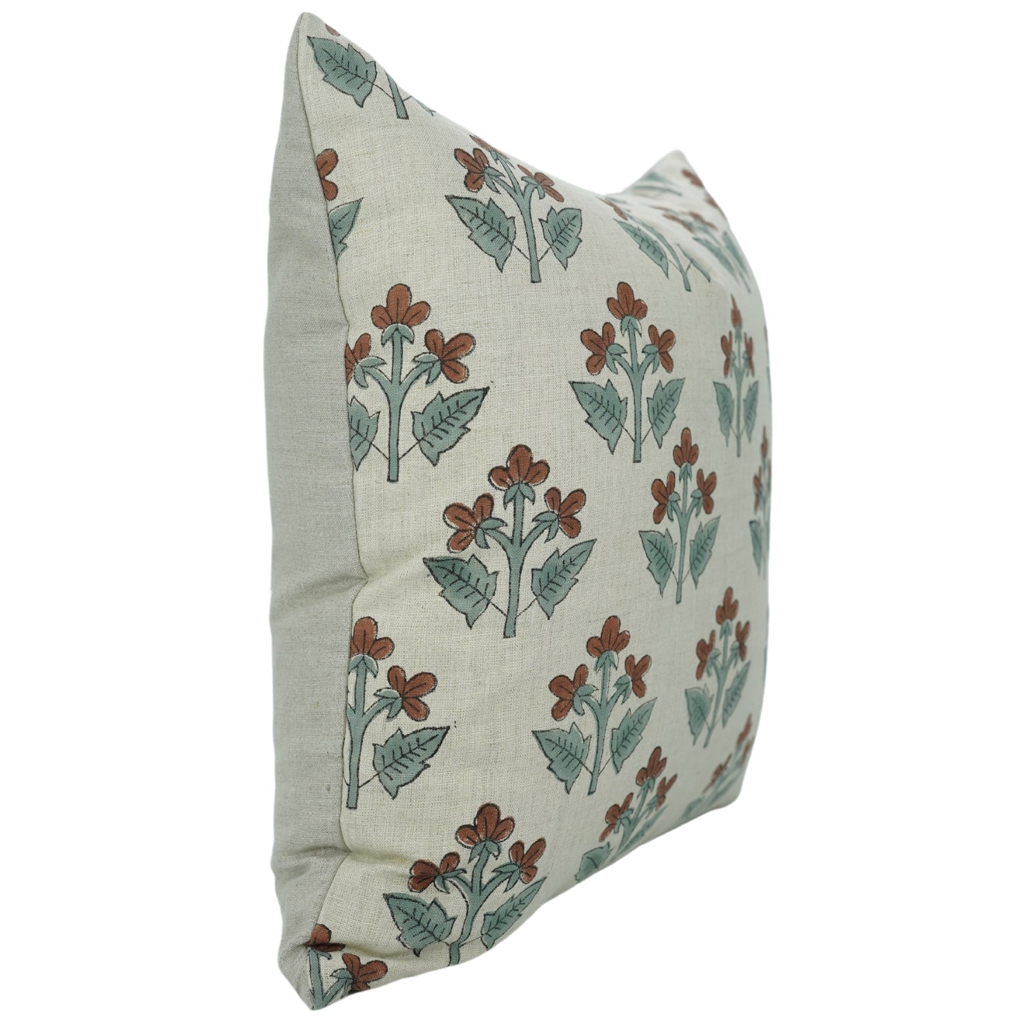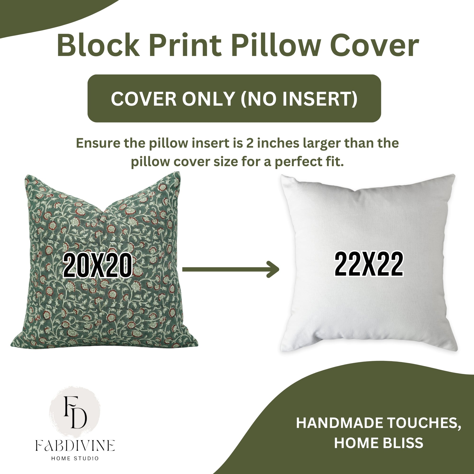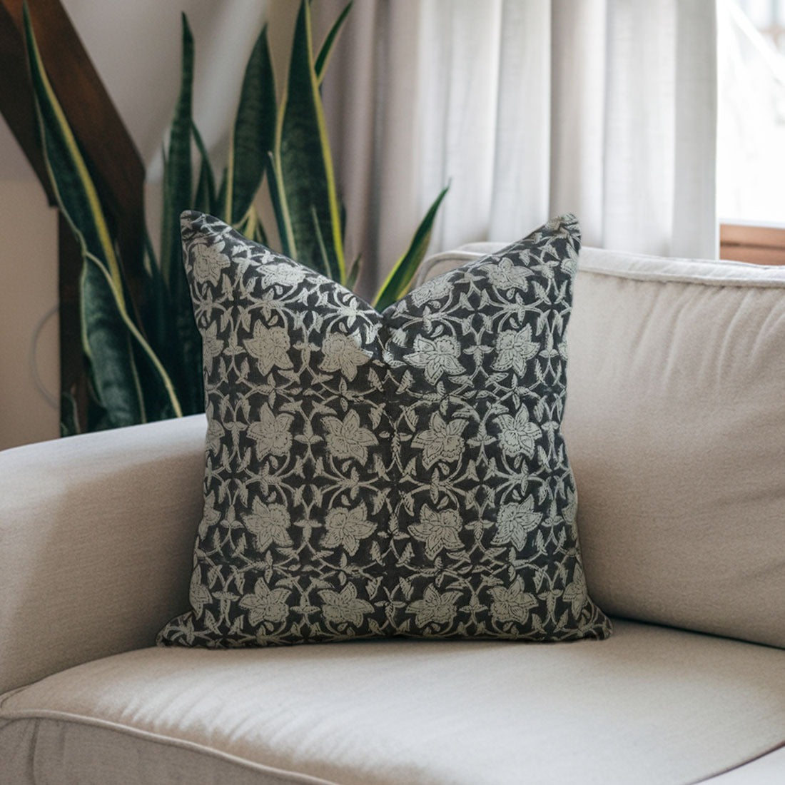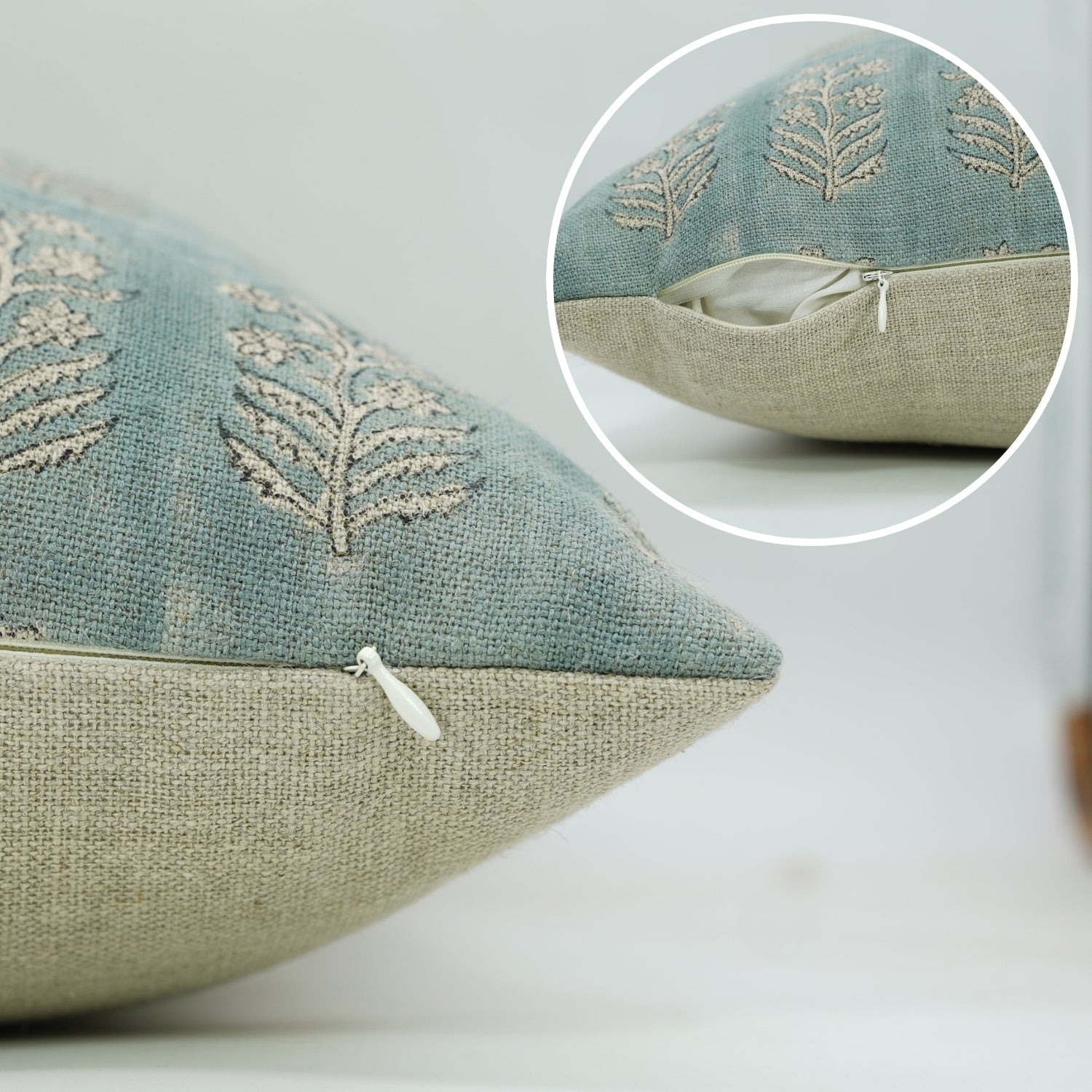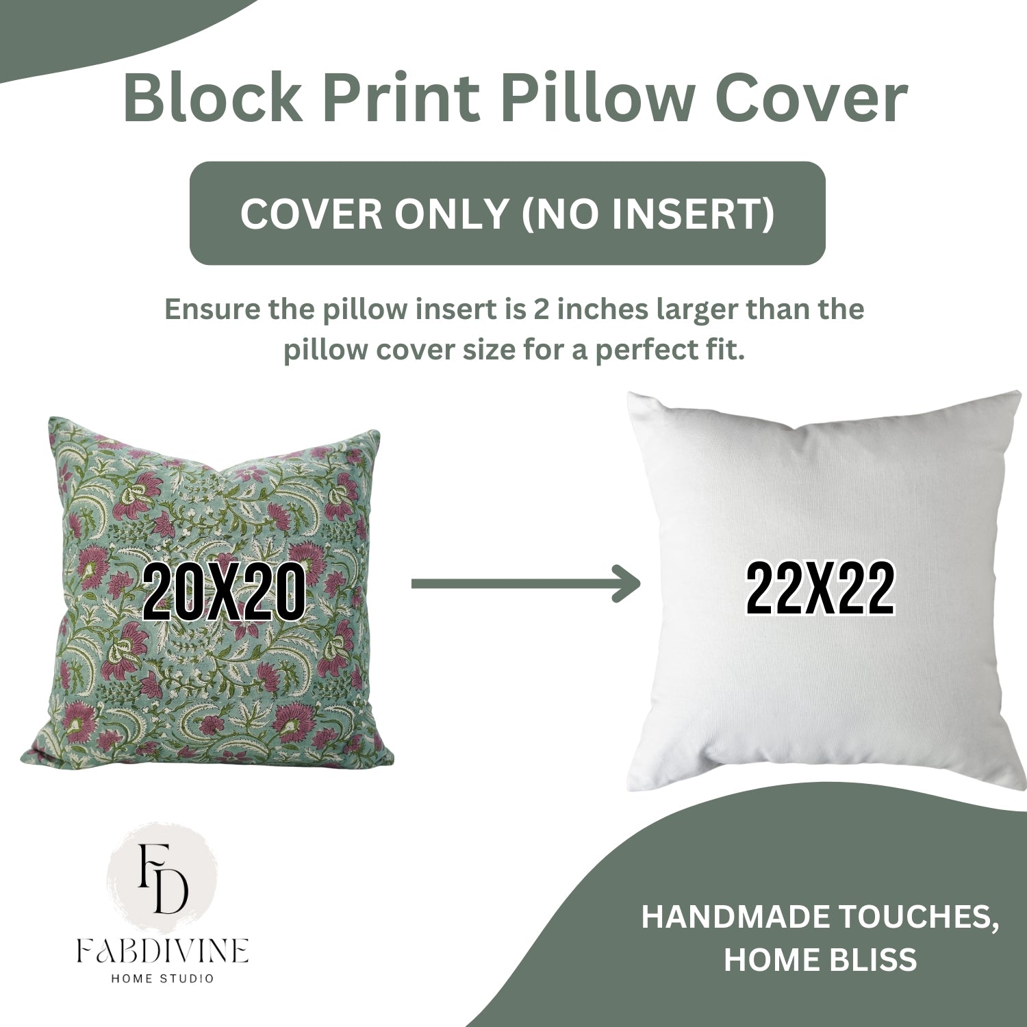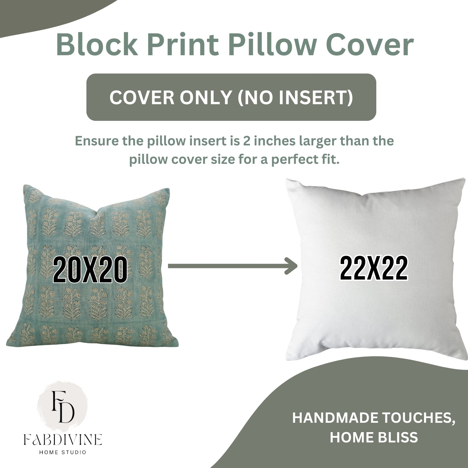 Linen Block Print Floral Pillow Covers | Handmade Cushion
