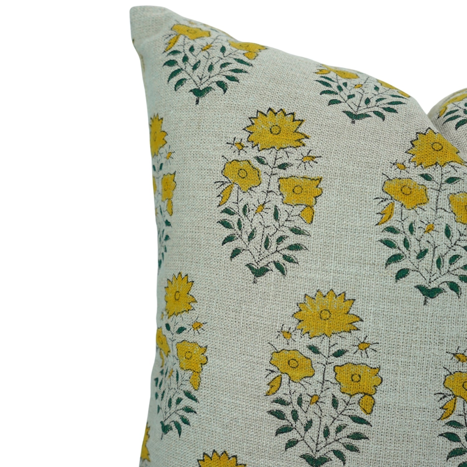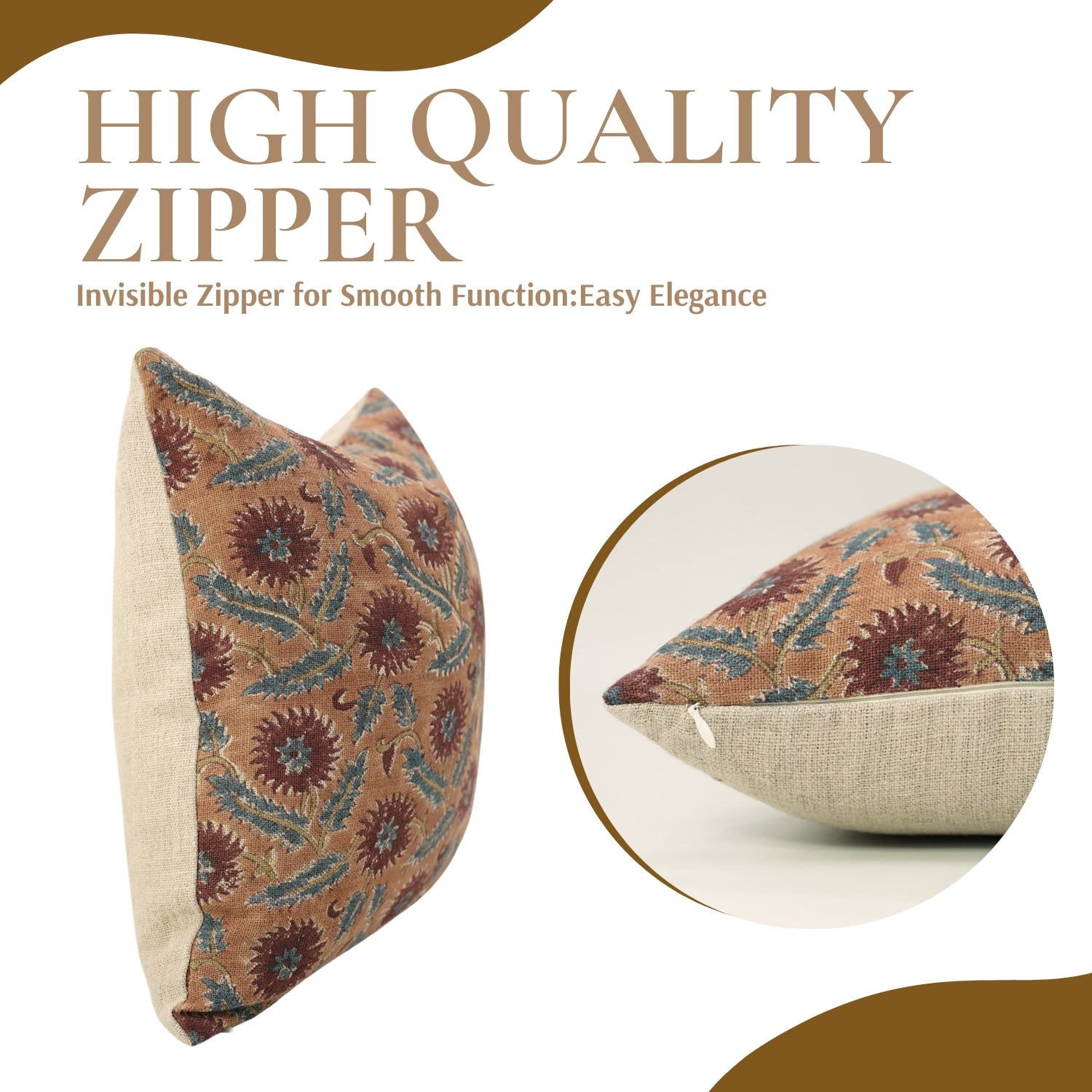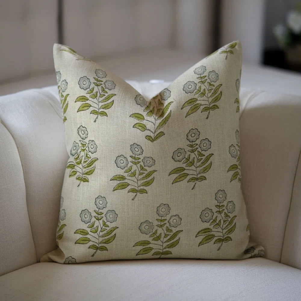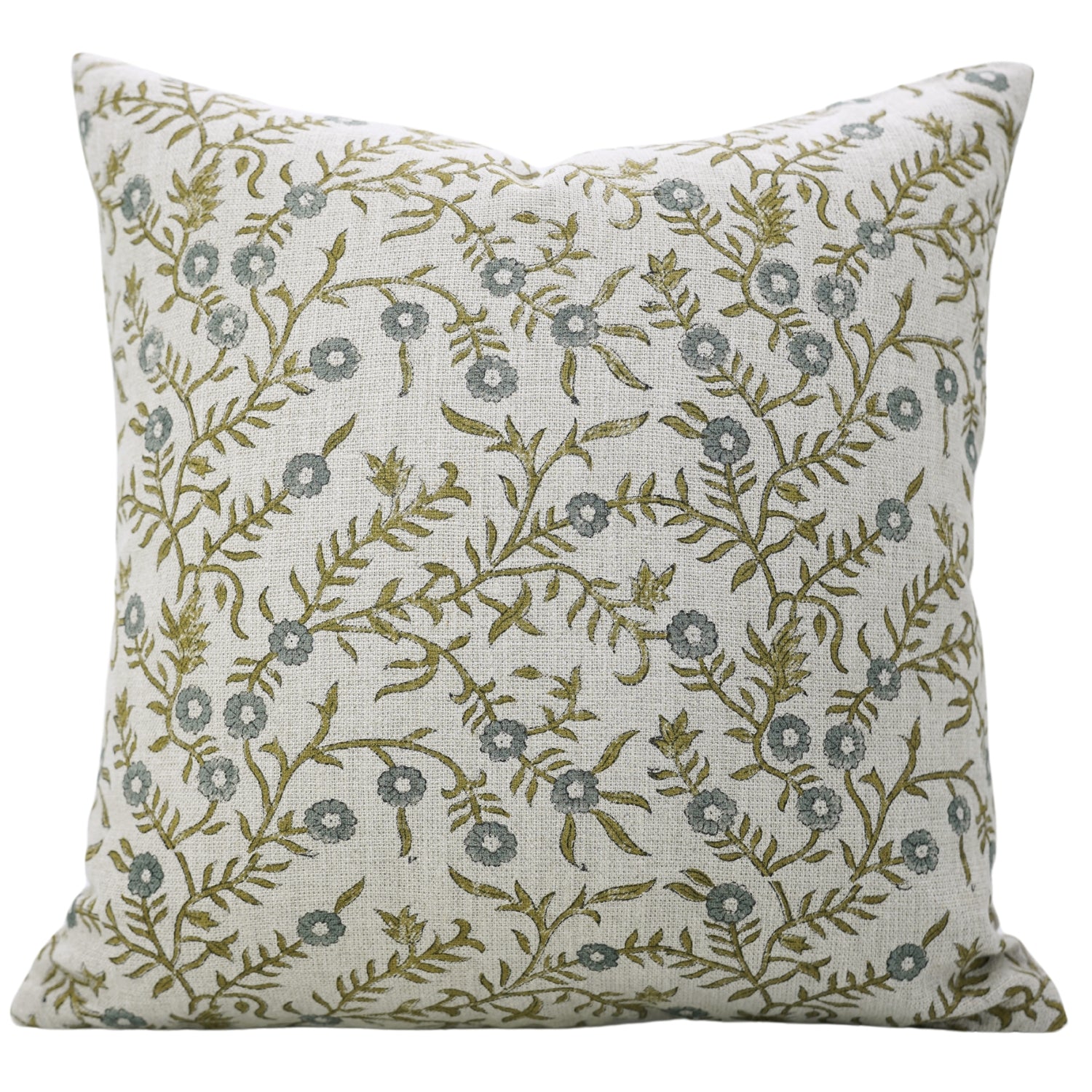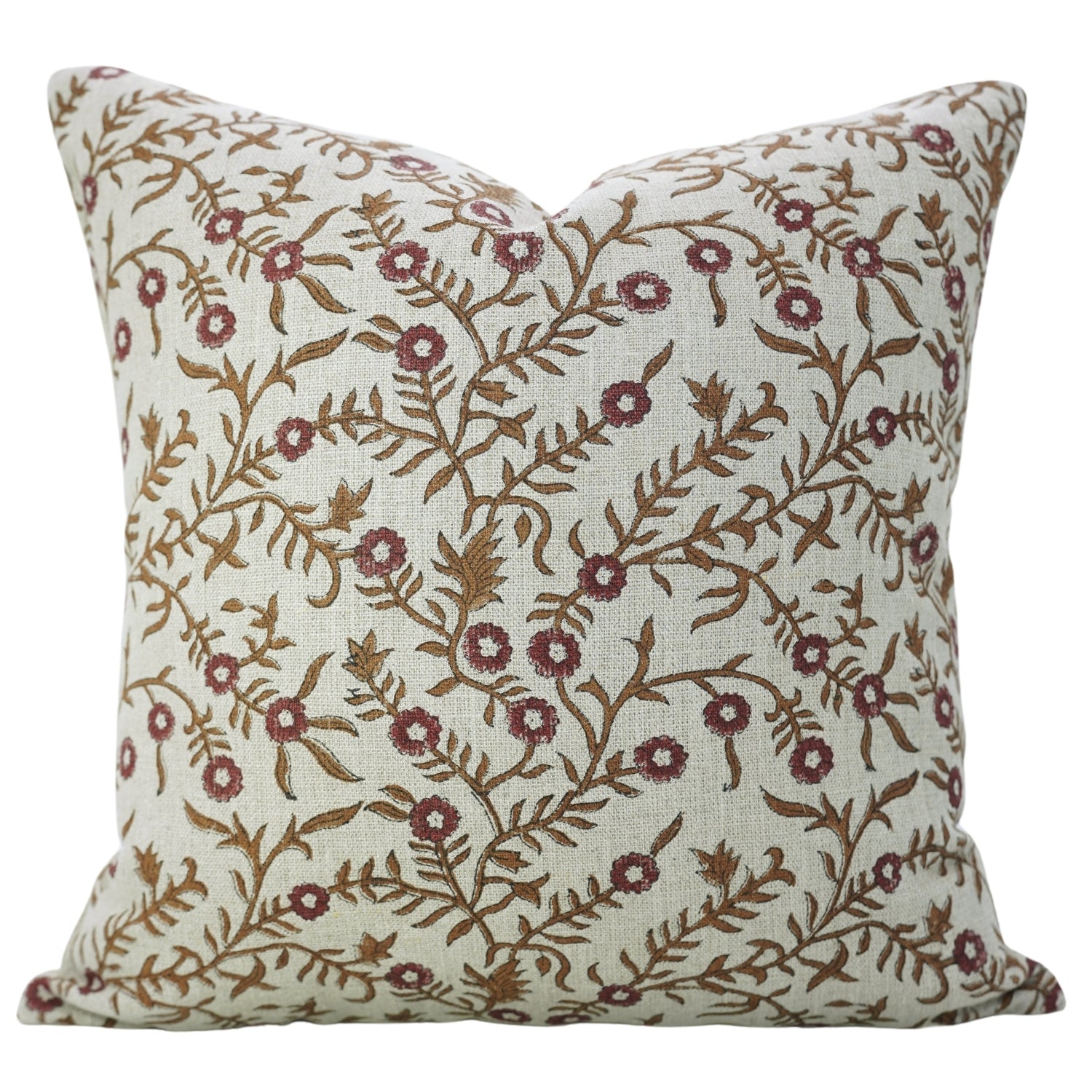 Linen Block Print Floral Pillow Covers | Handmade Cushion