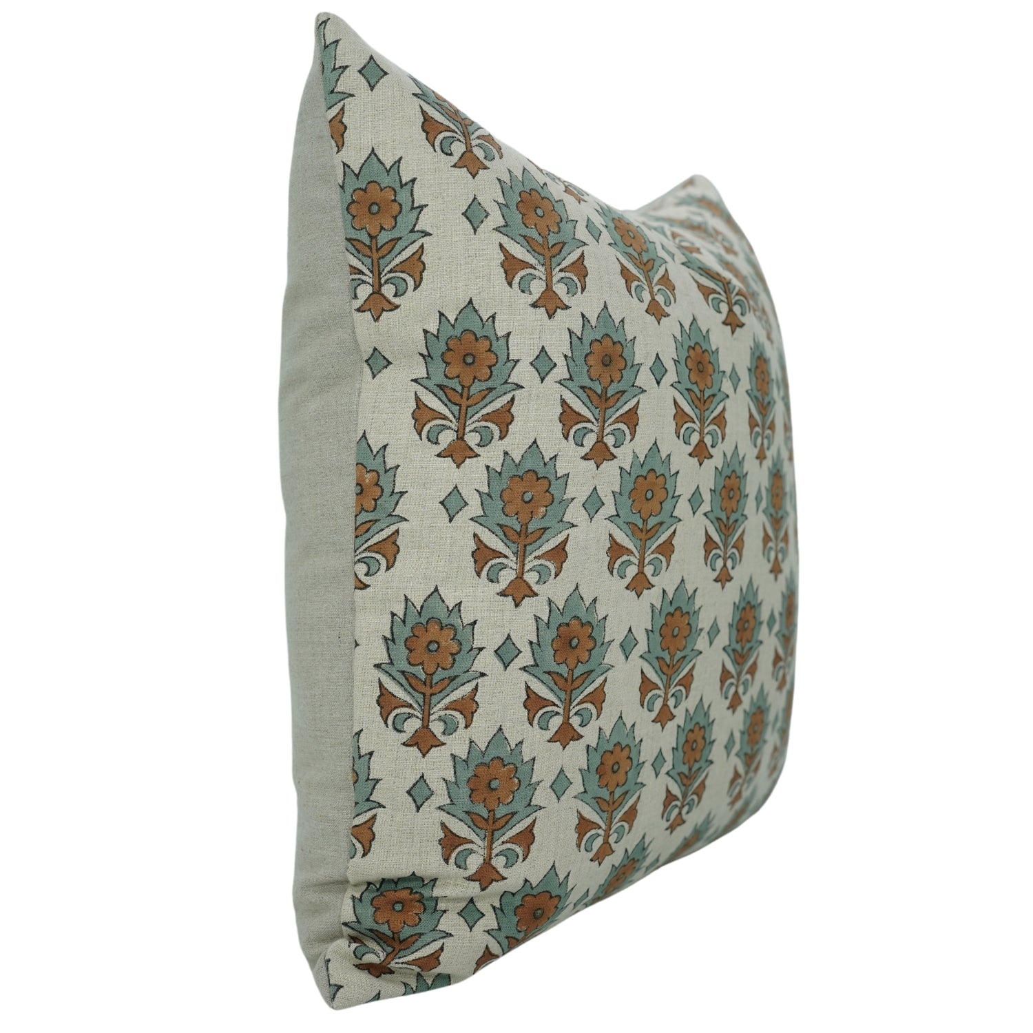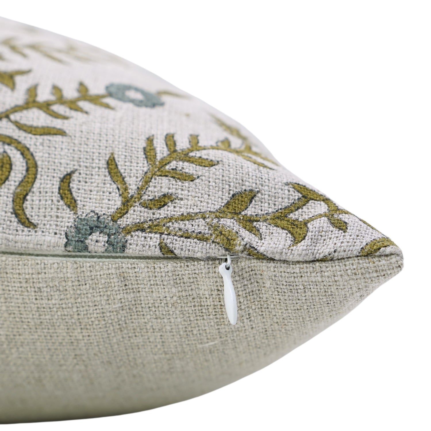 Block Printed Thick Linen Pillow Cover - Tulsi Buti