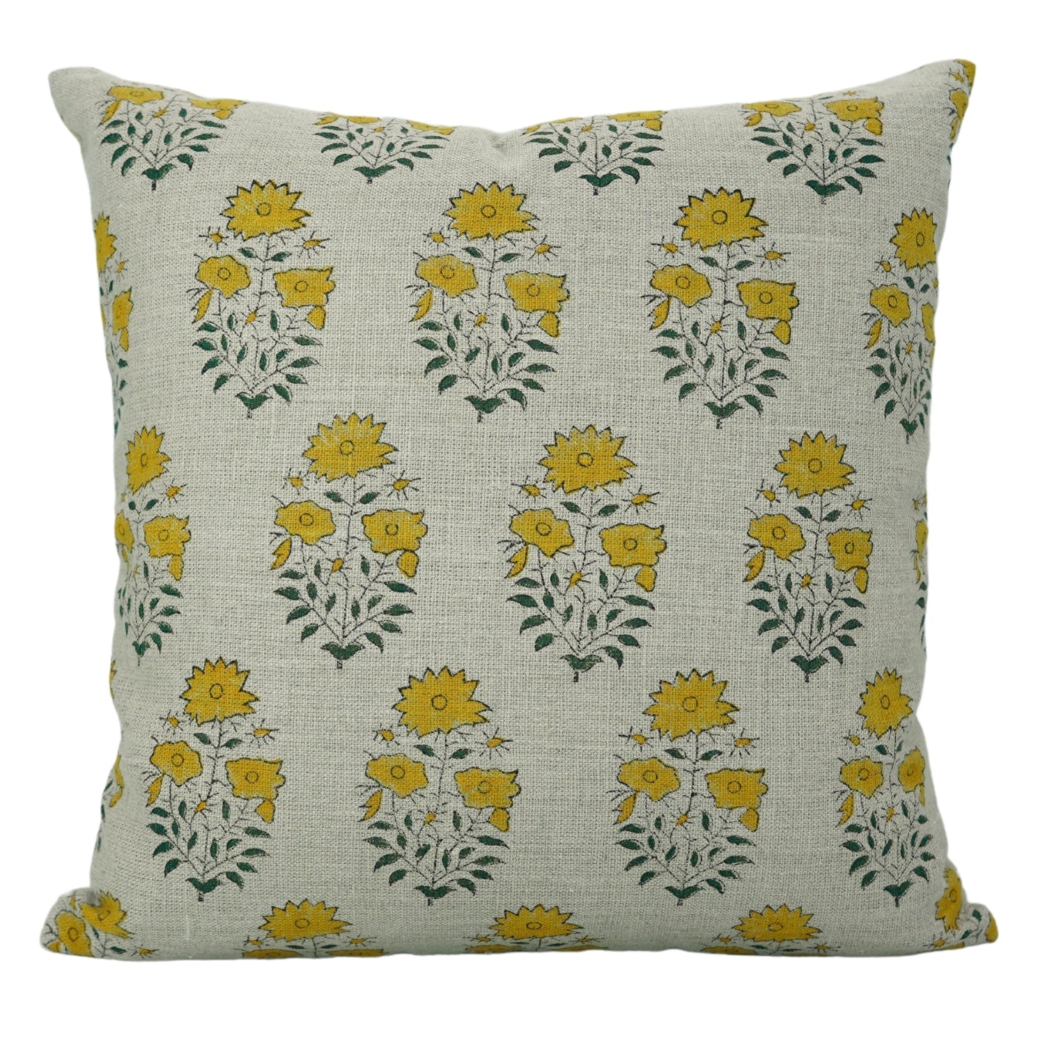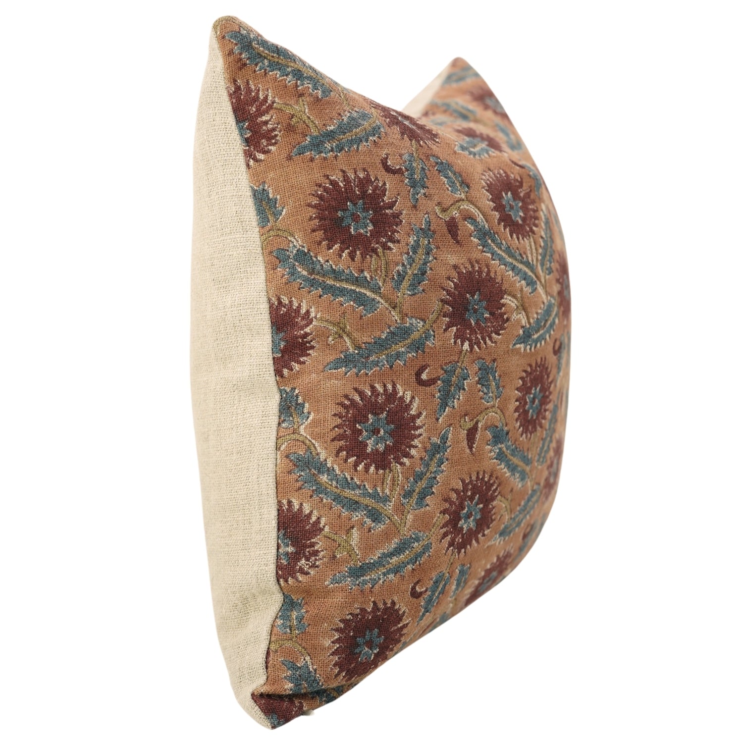Square Throw Pillow Cover - Hand Block Printed Pure Linen in Kusum Design