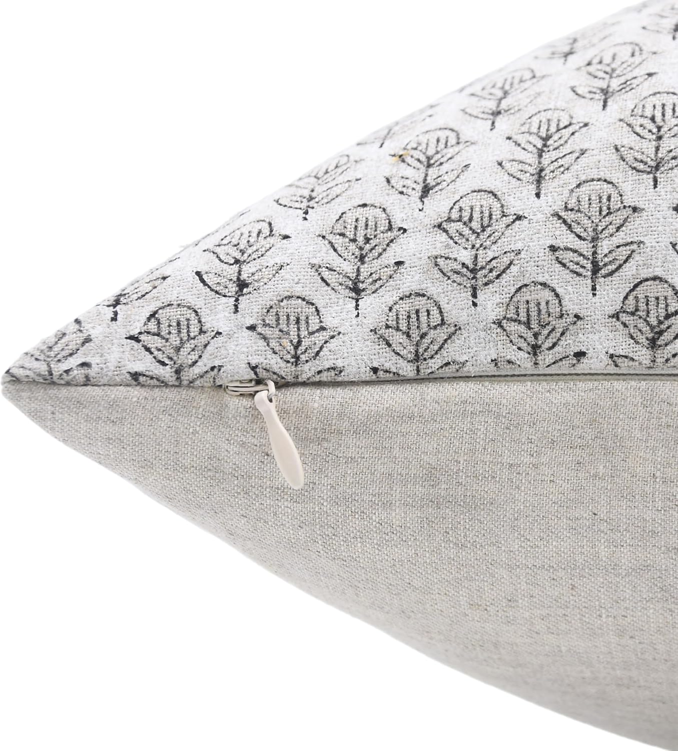 Handblock Floral Print Throw Pillow Case - 100% Pure Linen in Brown and Gray