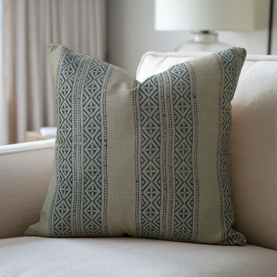 Block print Pillow cover for sofa, couch or bed- Pure Linen- VRINDAVAN - Fabdivine