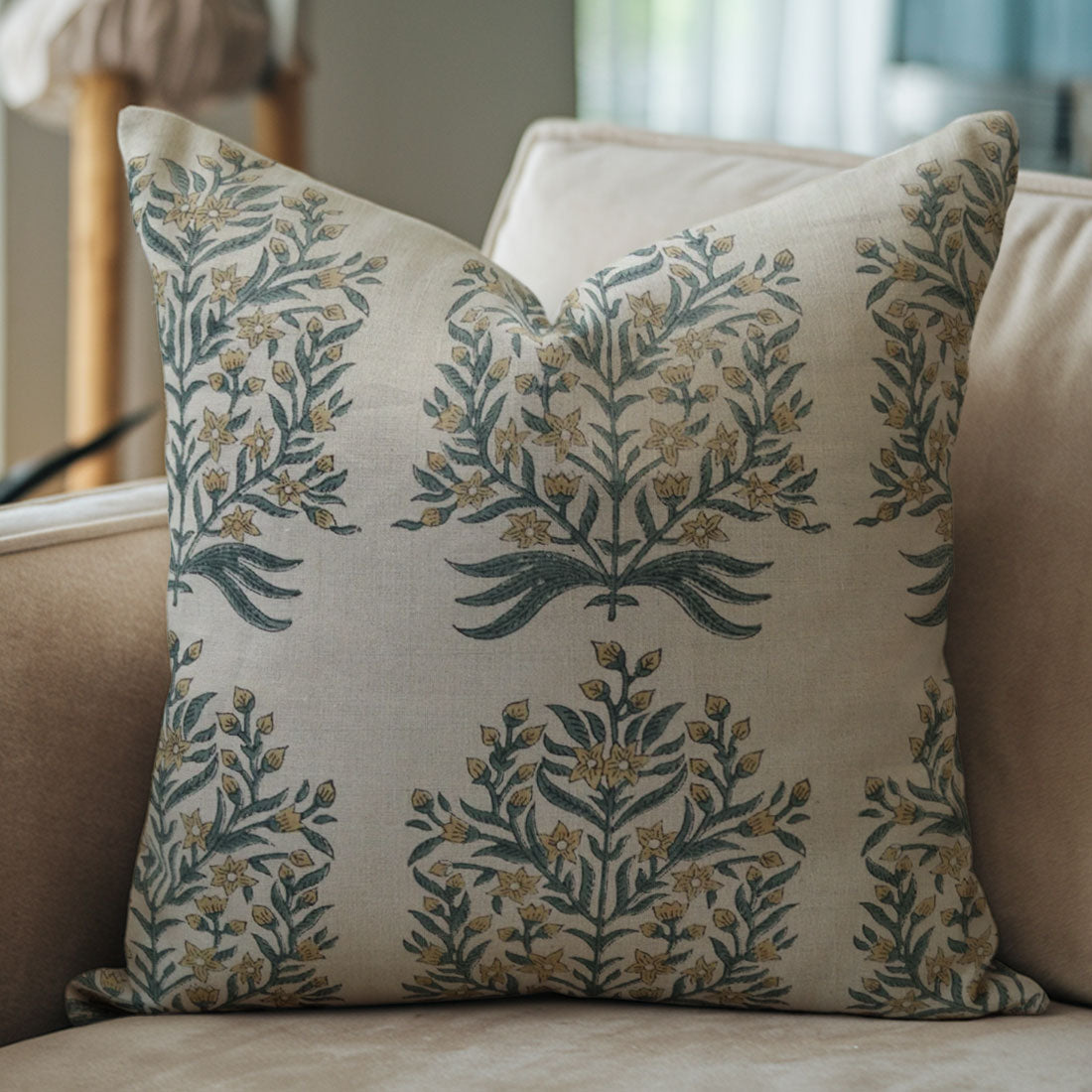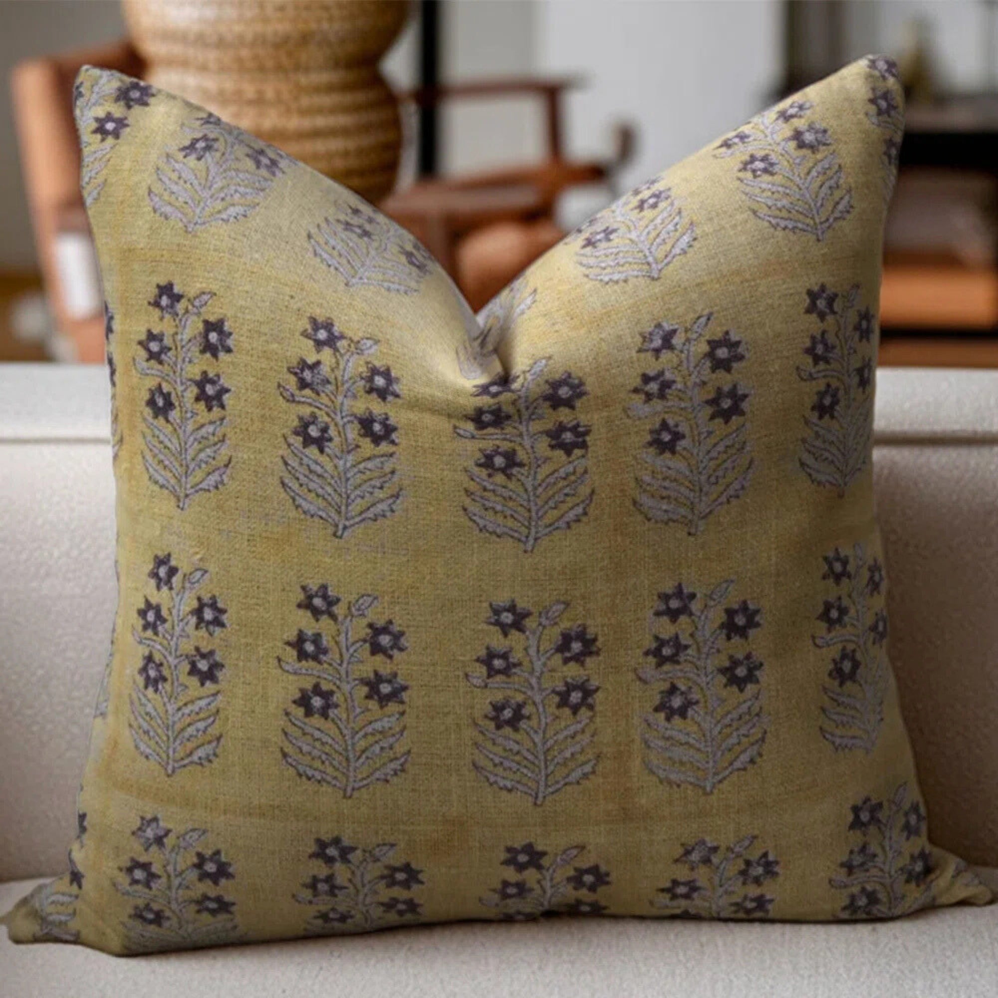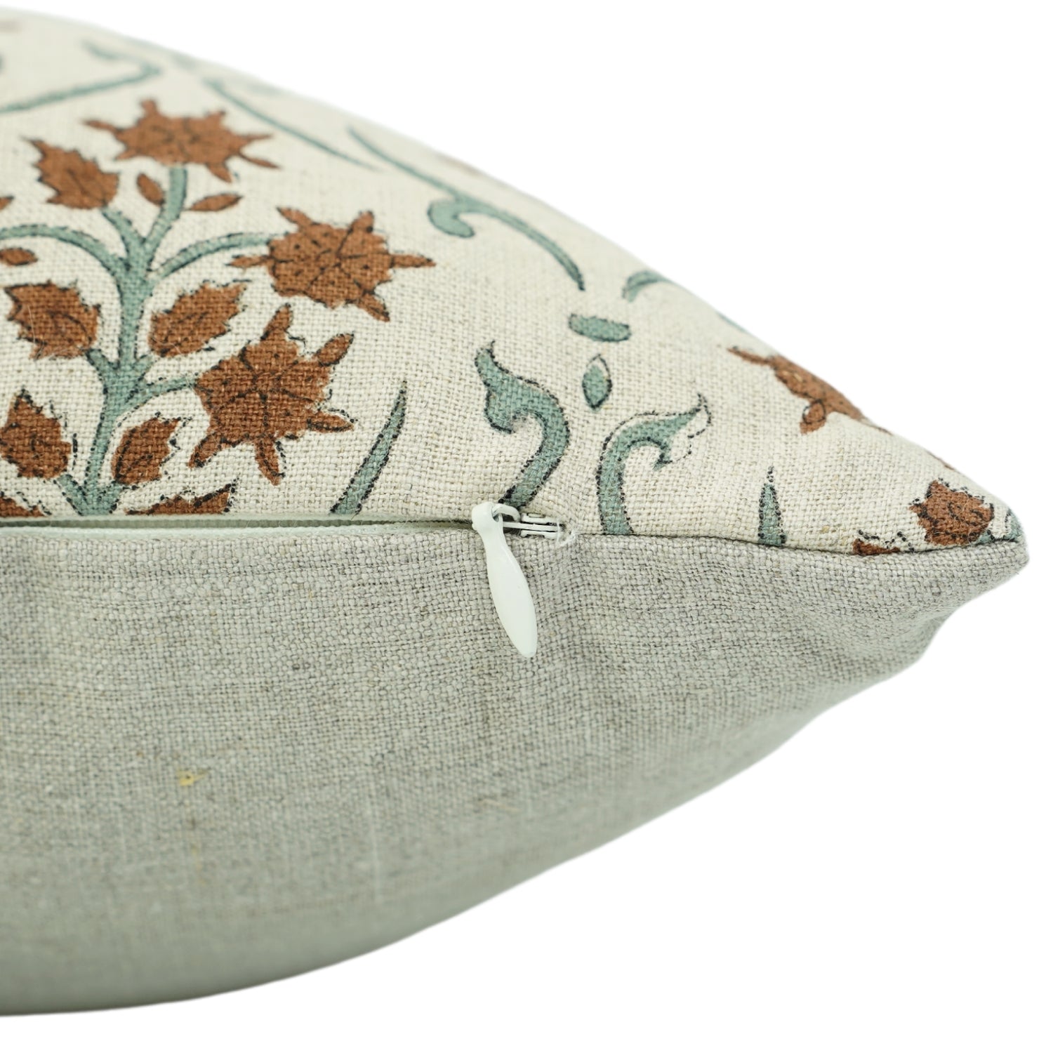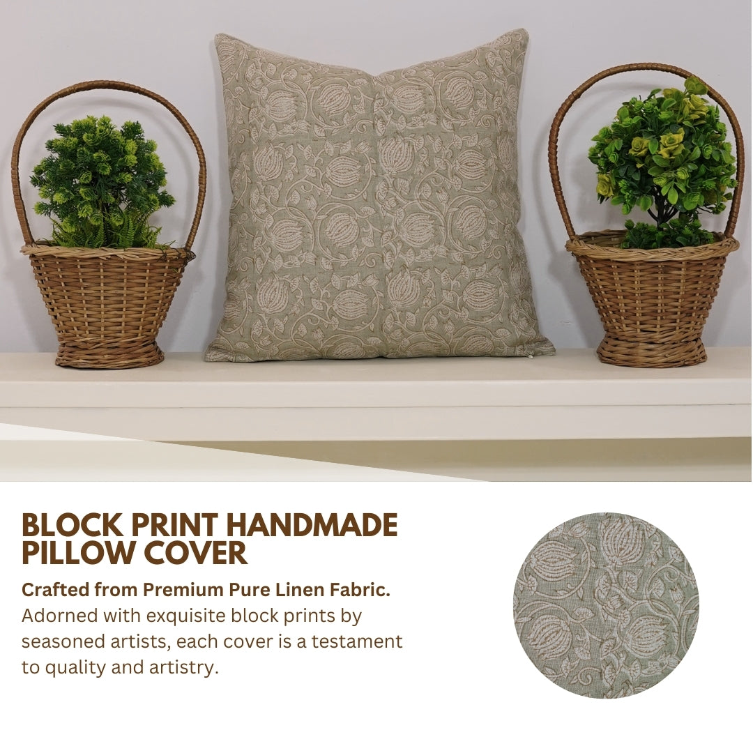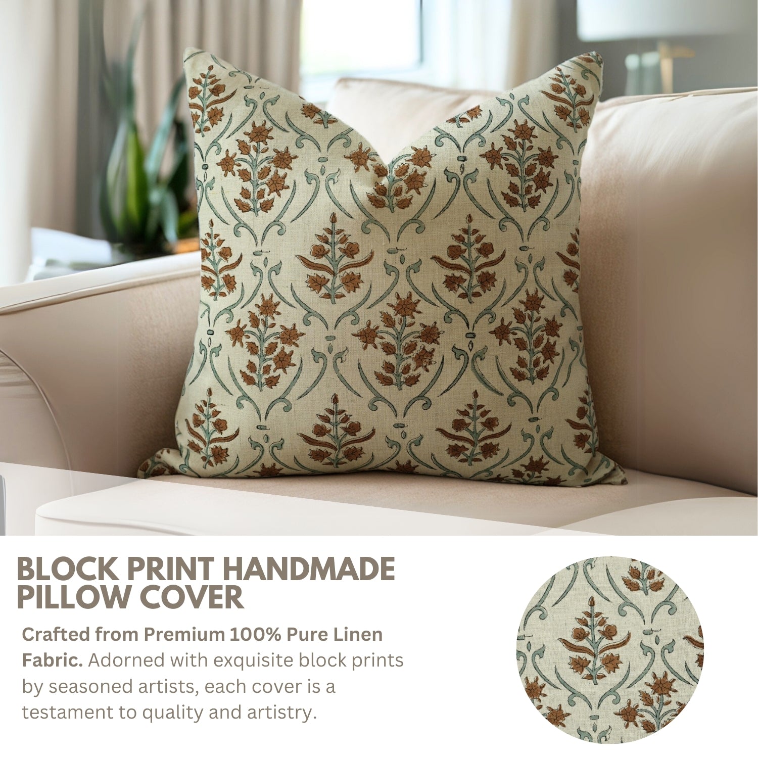 Linen Block Print Floral Pillow Covers | Handmade Cushion