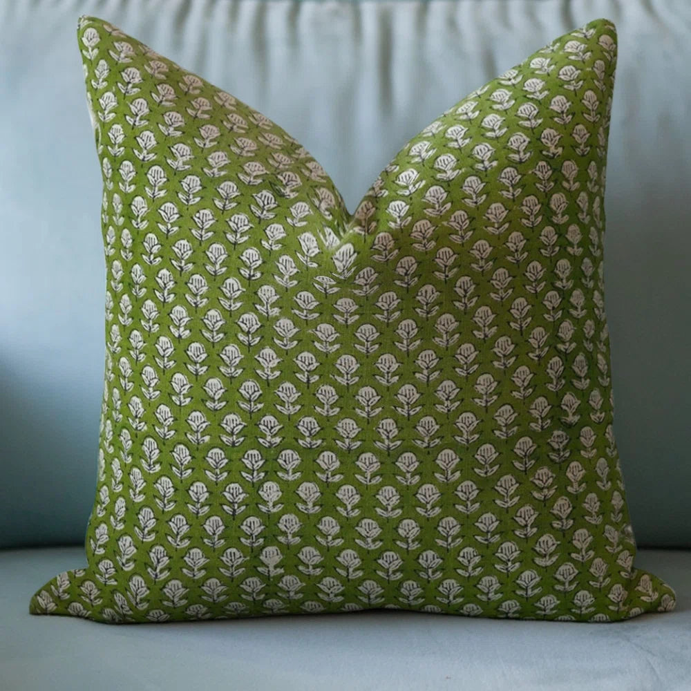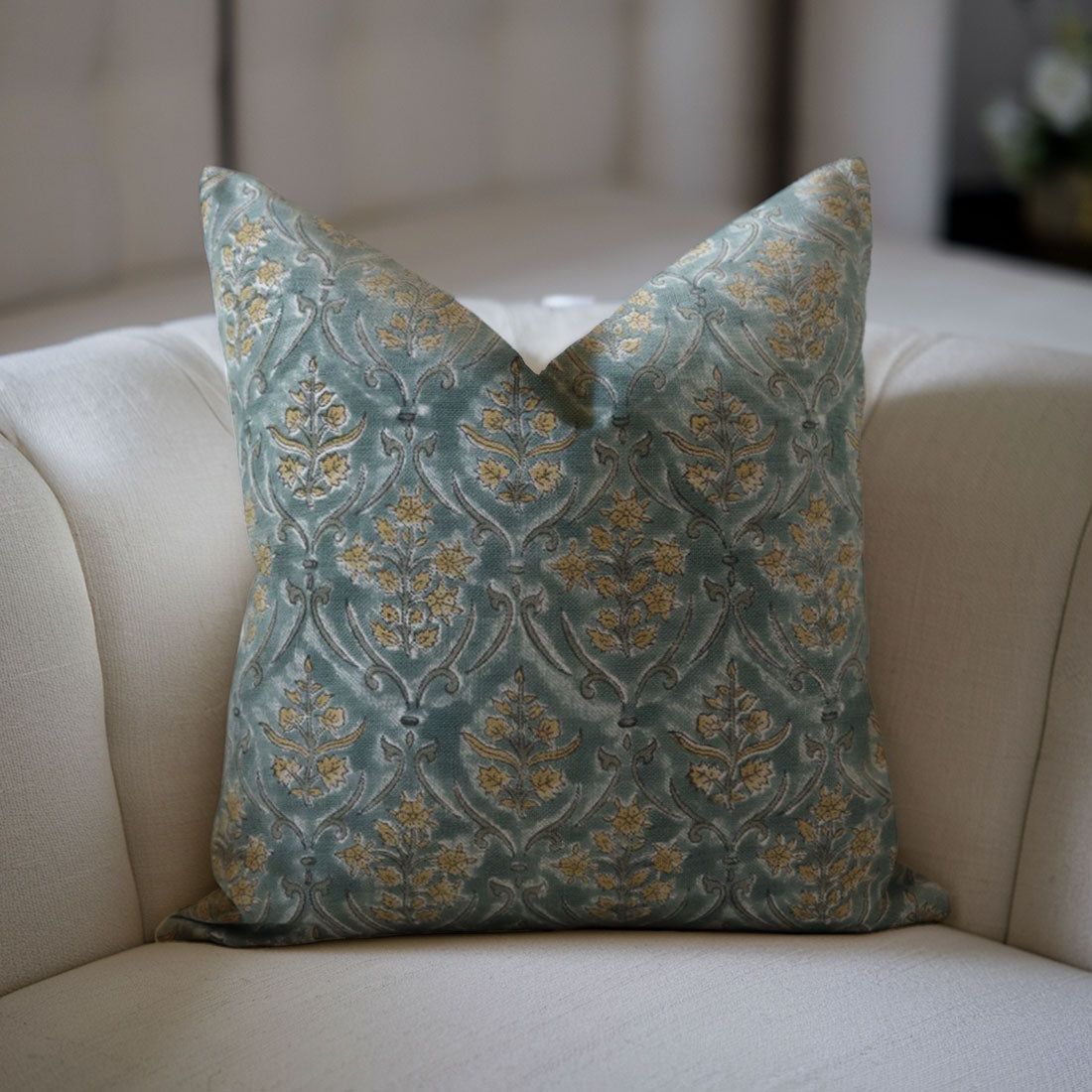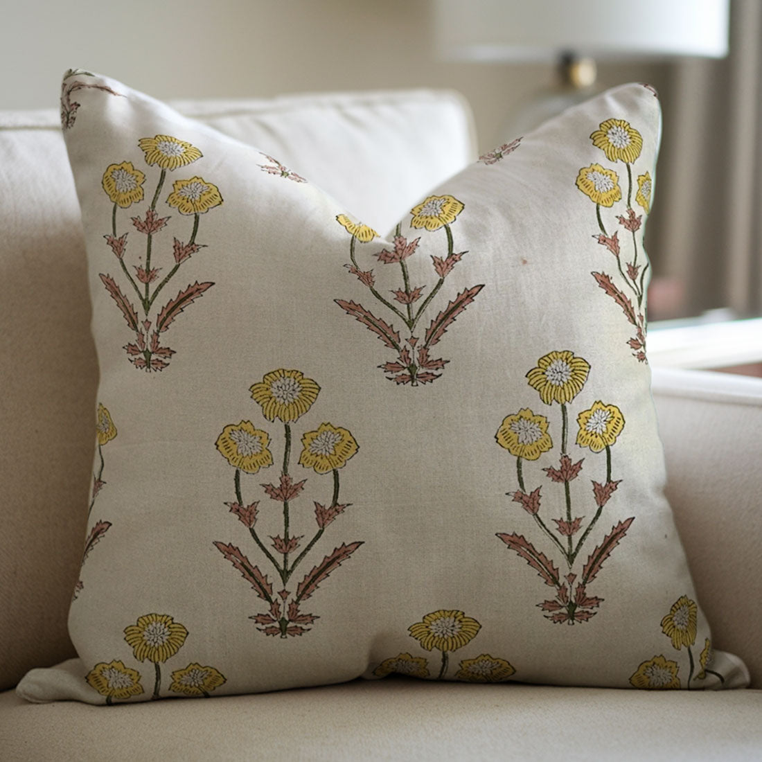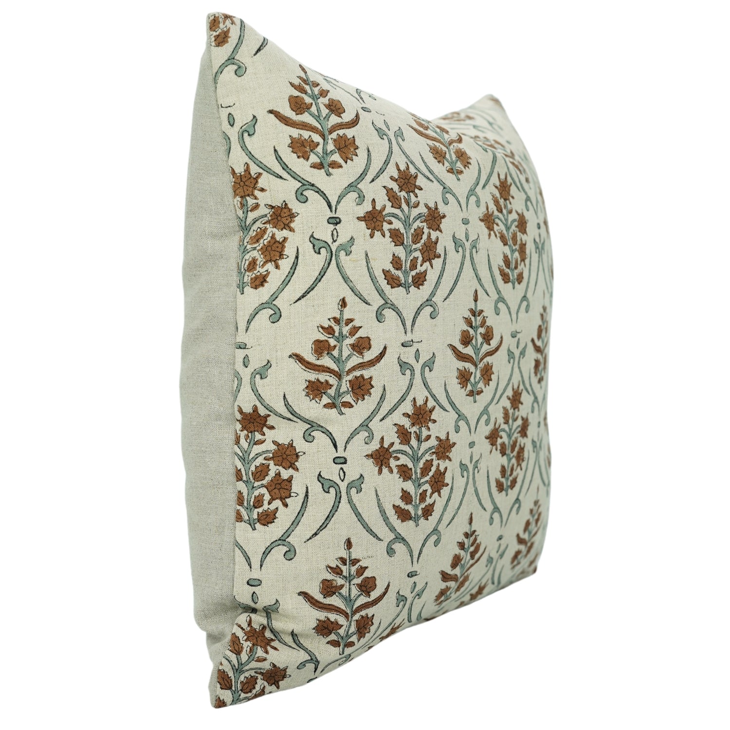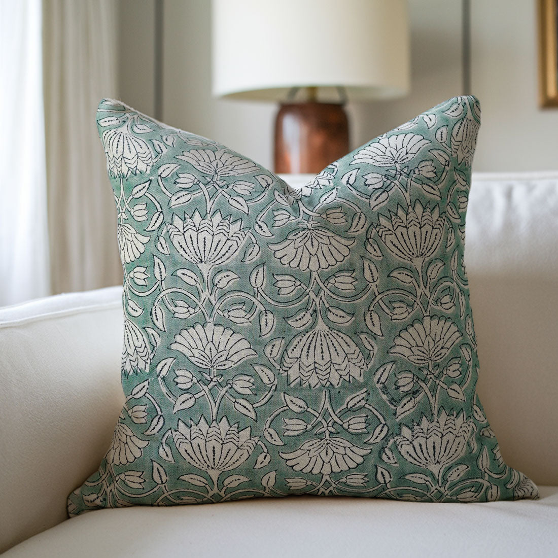 Linen Block Print Floral Pillow Covers | Handmade Cushion
