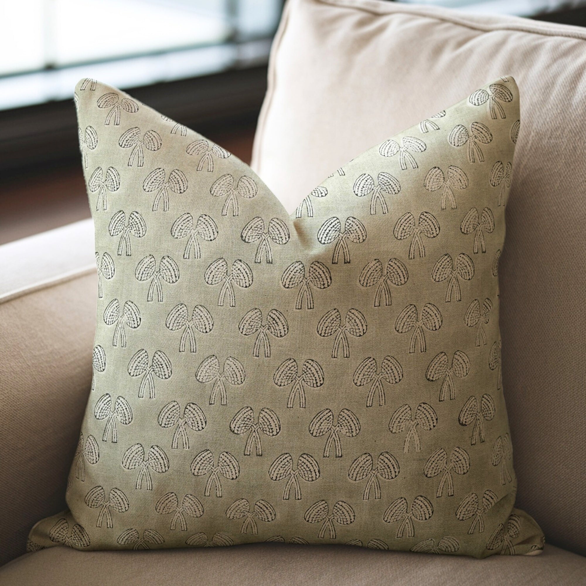 Pure Linen block print designer boho pillow/cushion cover- BETAL LEAF - Fabdivine