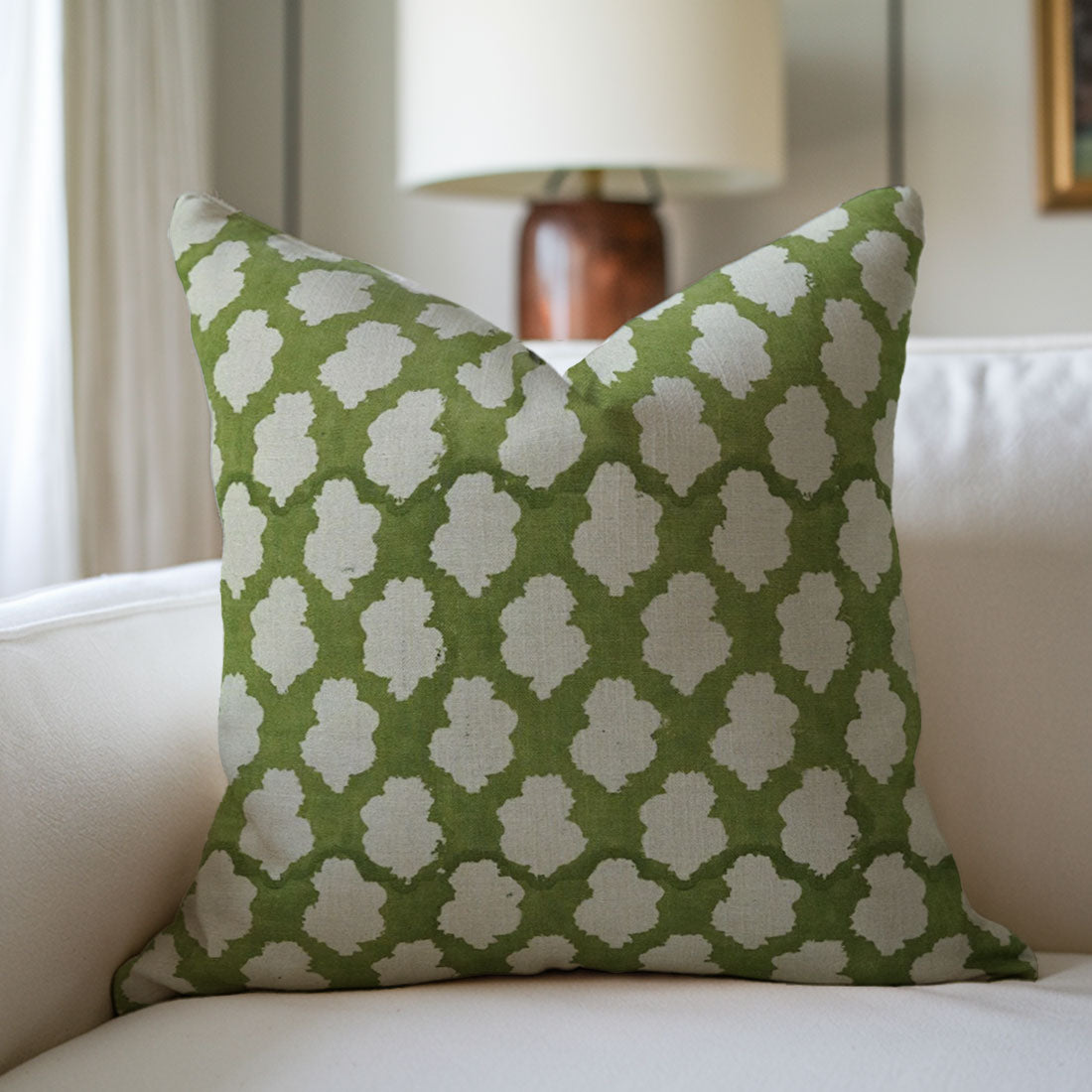 Block print Pillow cover for sofa, couch or bed- Pure Linen- SADA BAHAR - Fabdivine