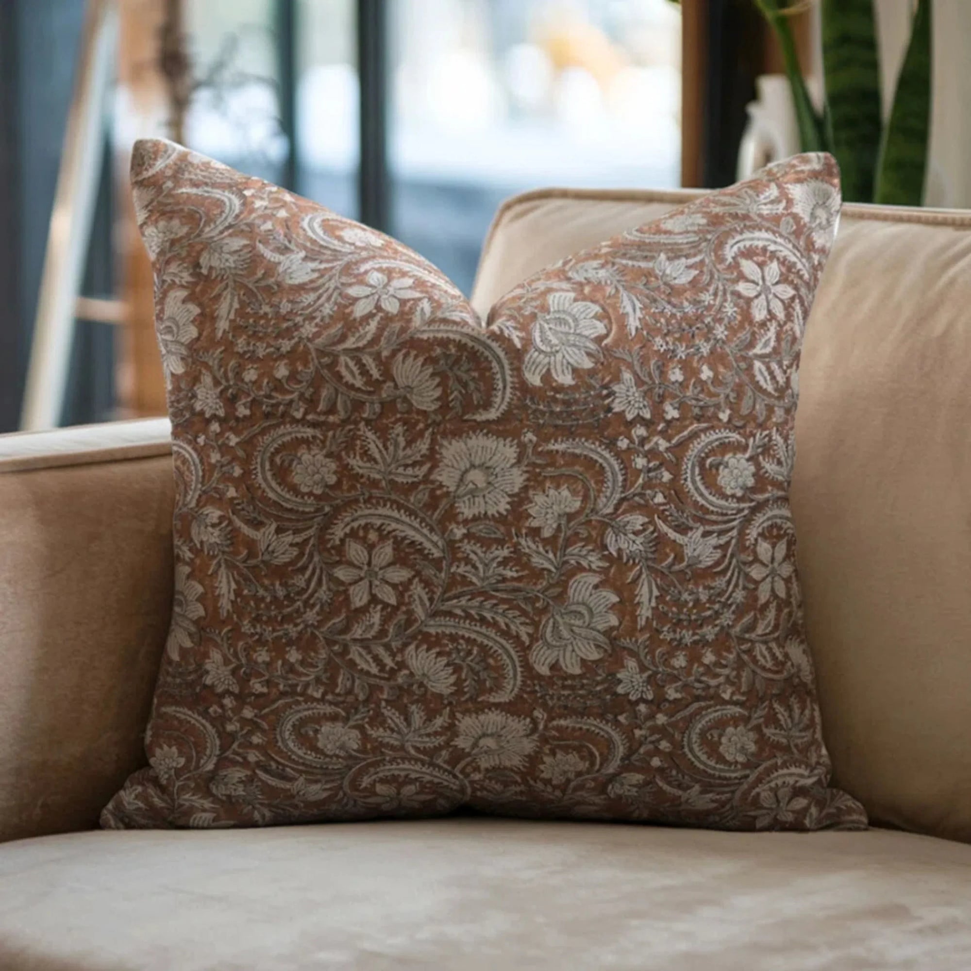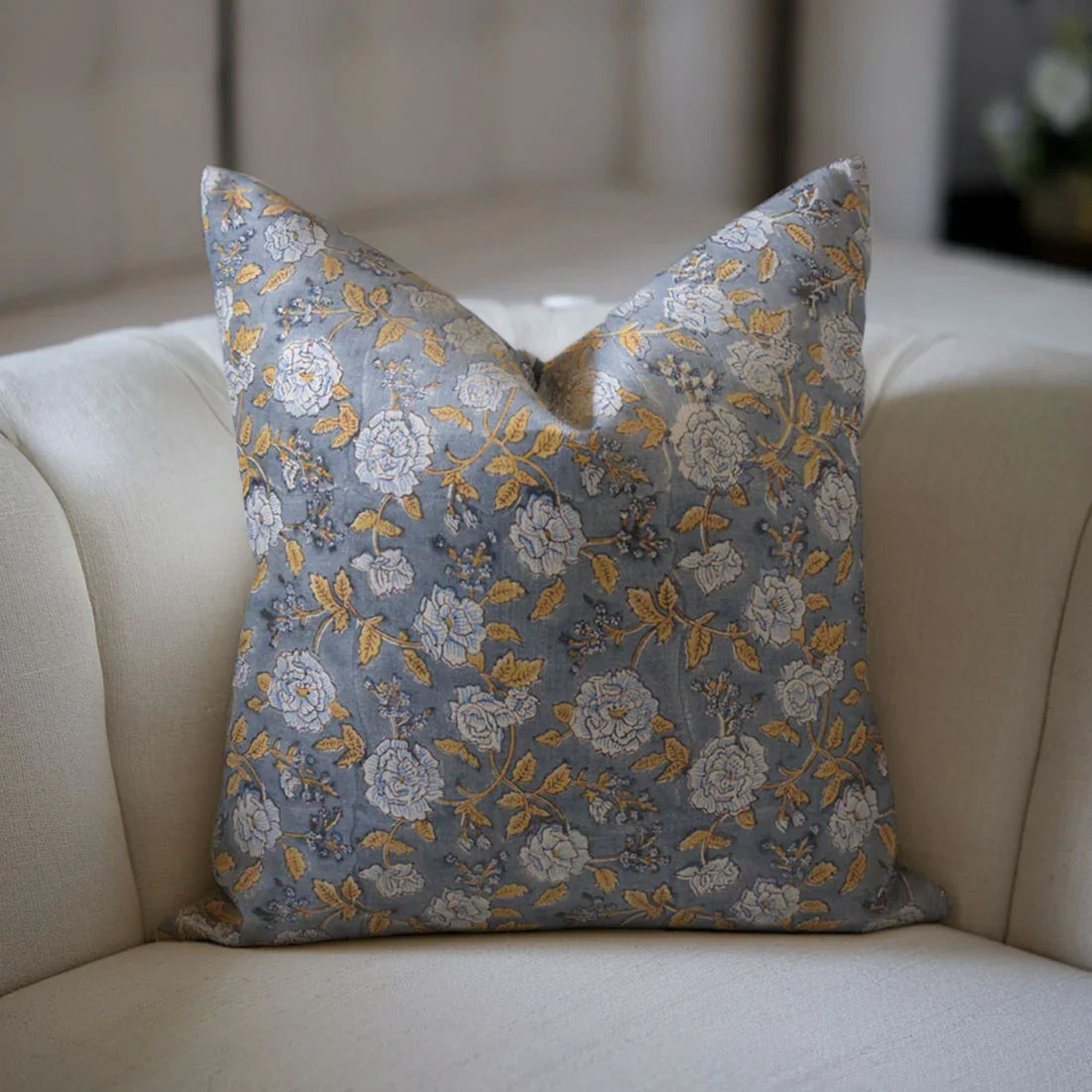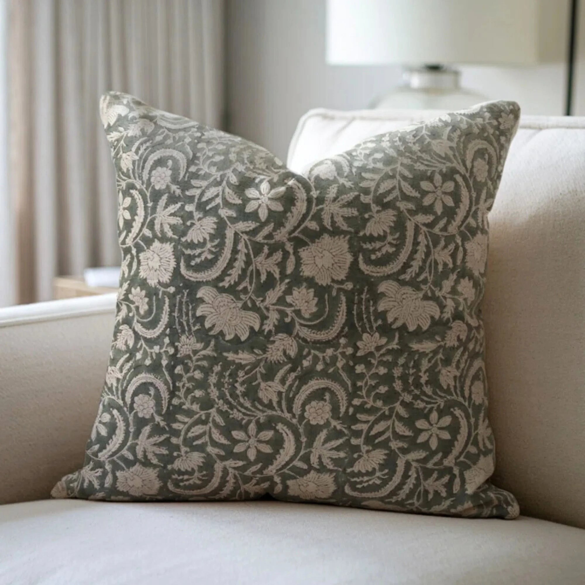 Linen Block Print Floral Pillow Covers | Handmade Cushion