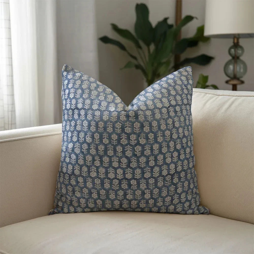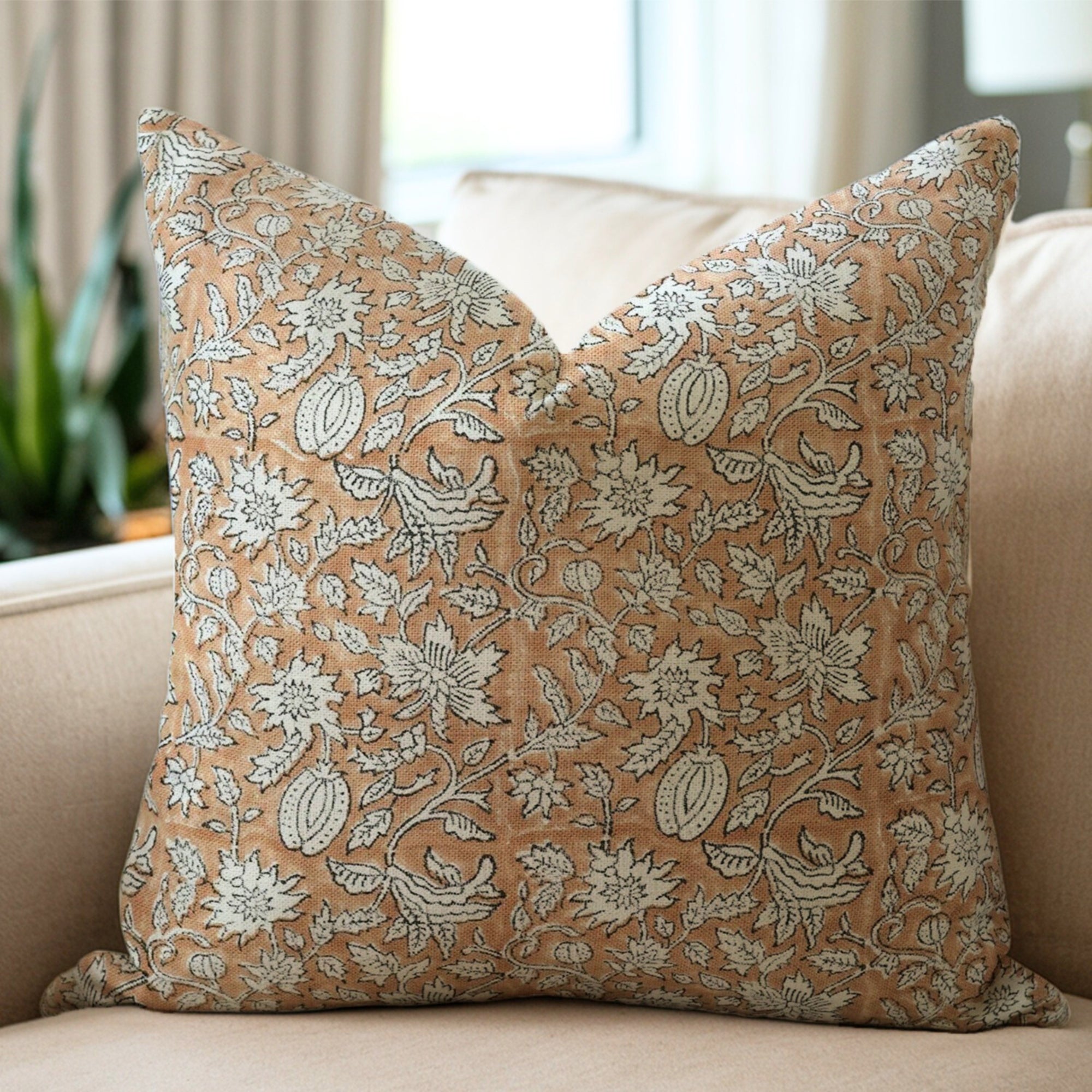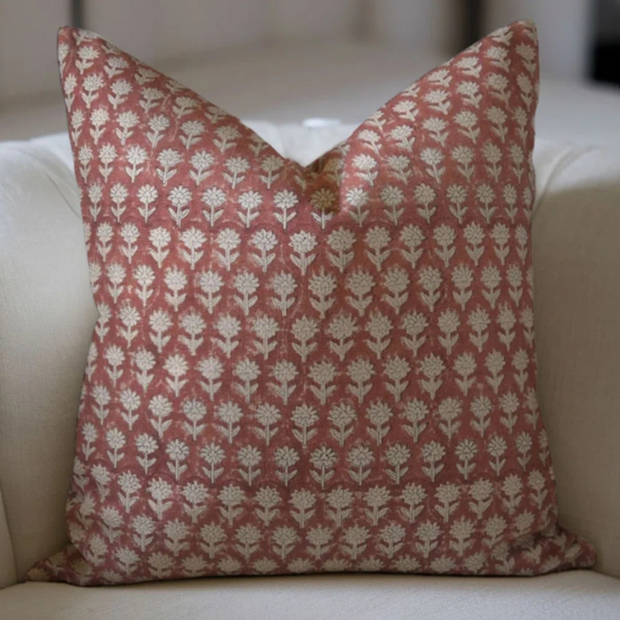 Linen Block Print Floral Pillow Covers | Handmade Cushion