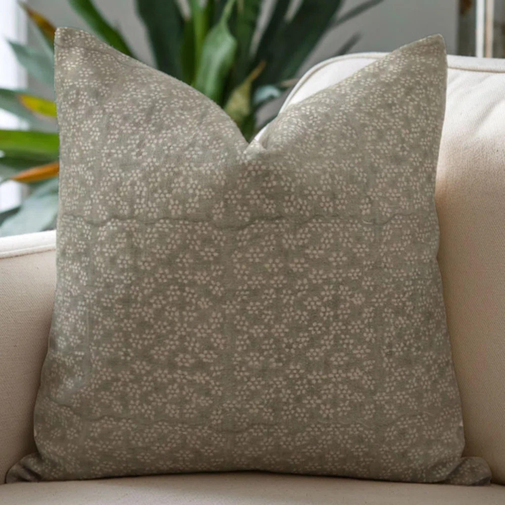 Block print Heavy Linen Pillow Cover - BIJHNI GREEN - Fabdivine
