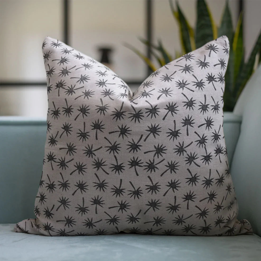 Block print pure linen throw pillow cover- COCONUT - Fabdivine