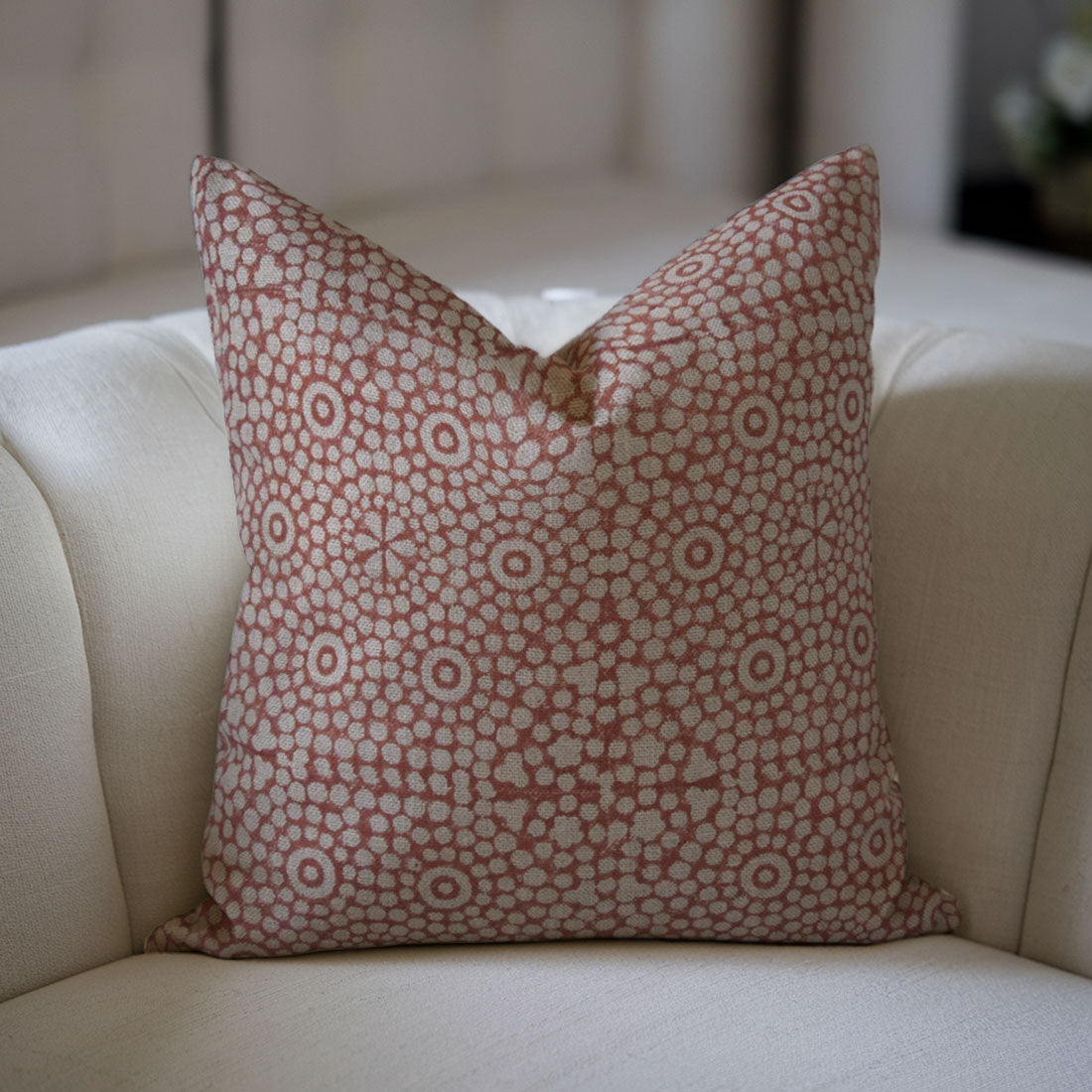 Block print Heavy Linen Pillow Cover - BIJHNI RUST - Fabdivine