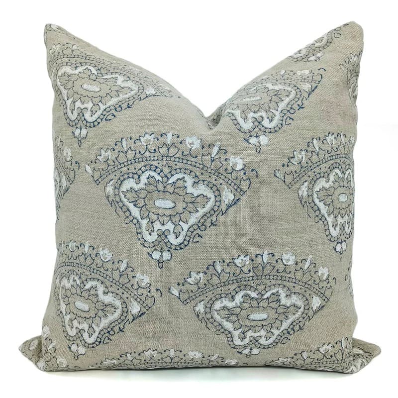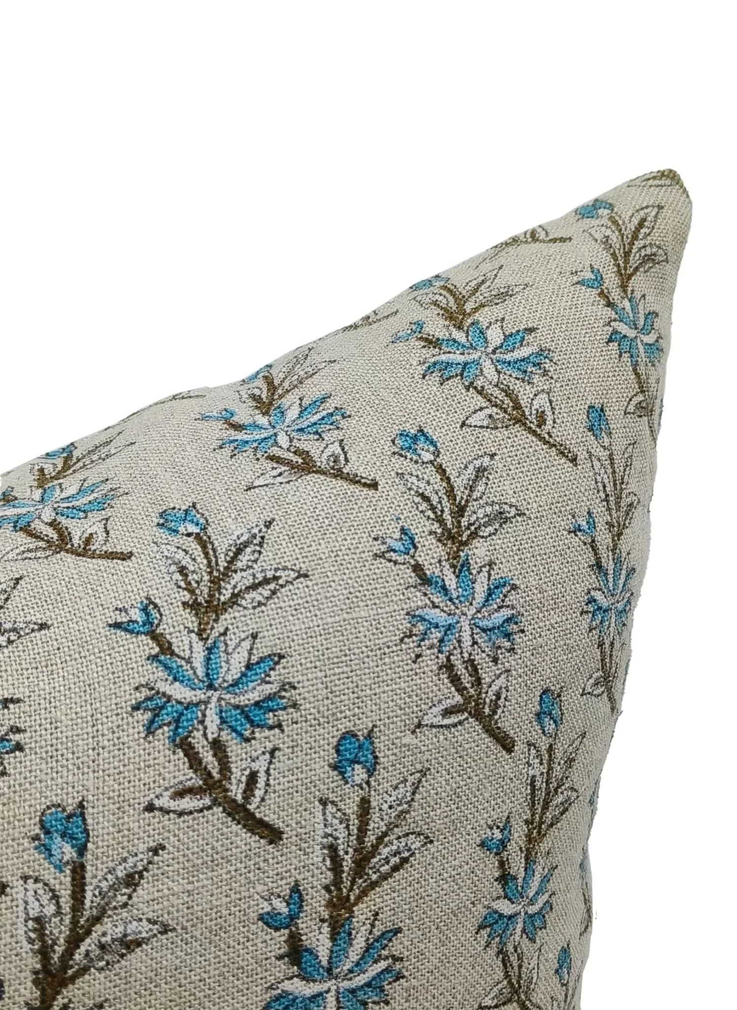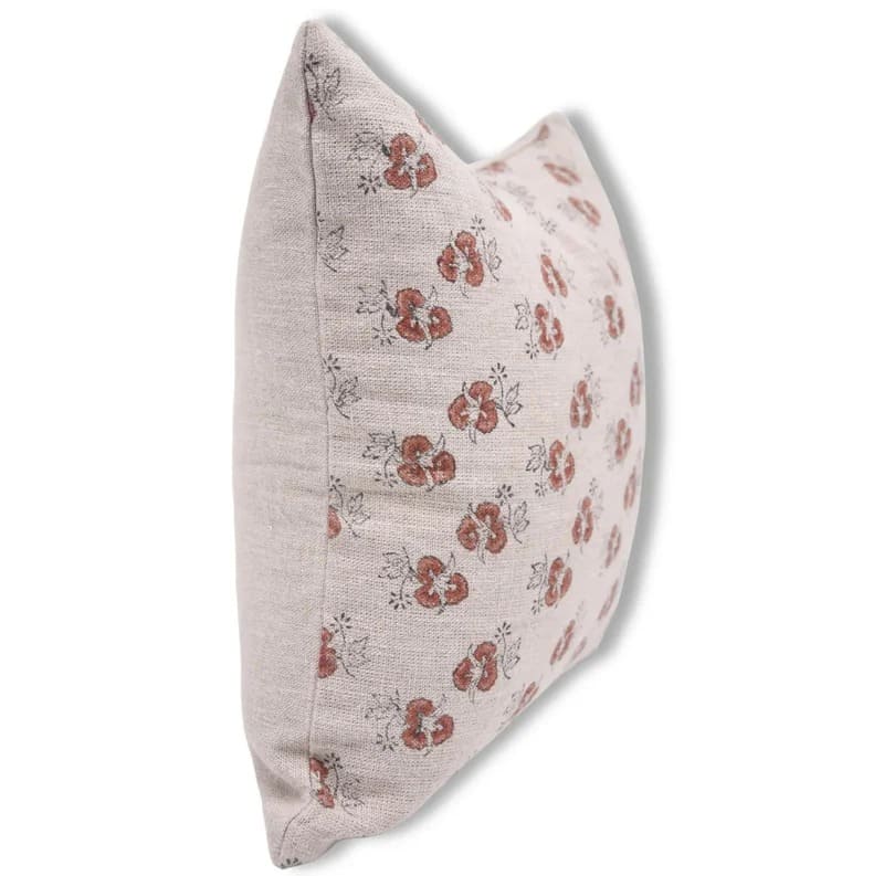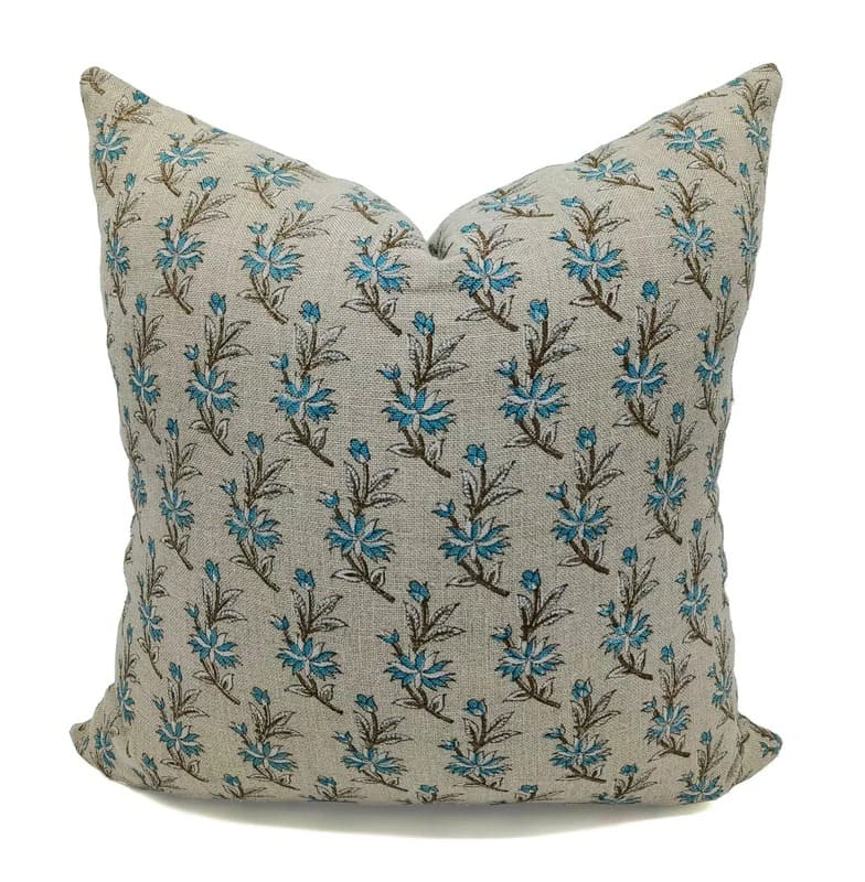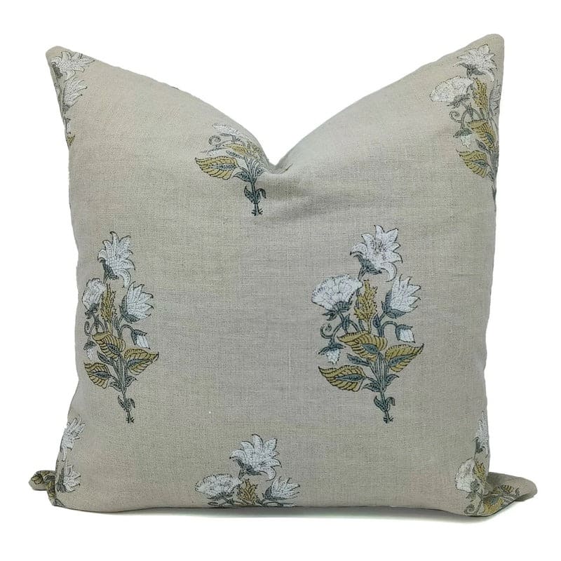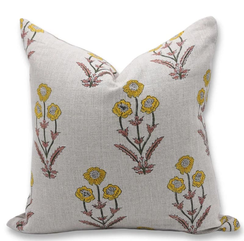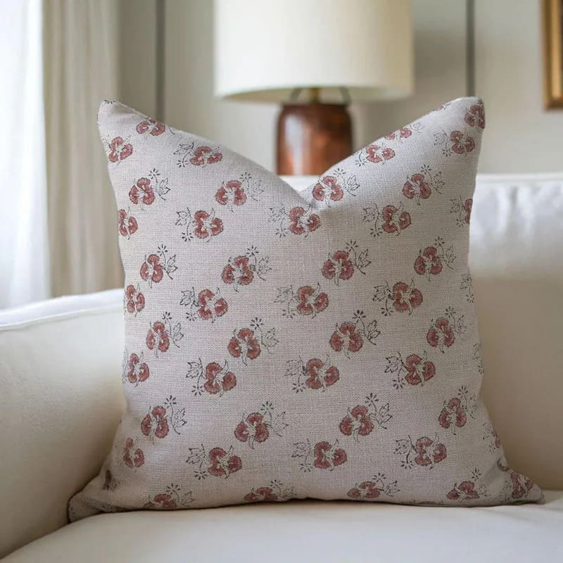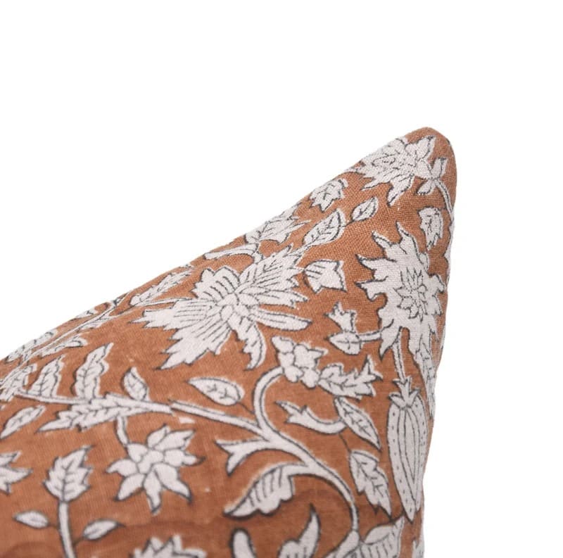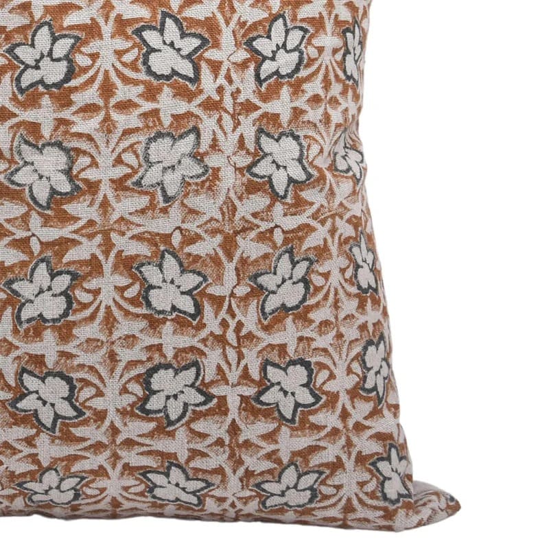 Bring summer magic home with the cushion that carries heritage warmth, linen coolness, and print exuberance.