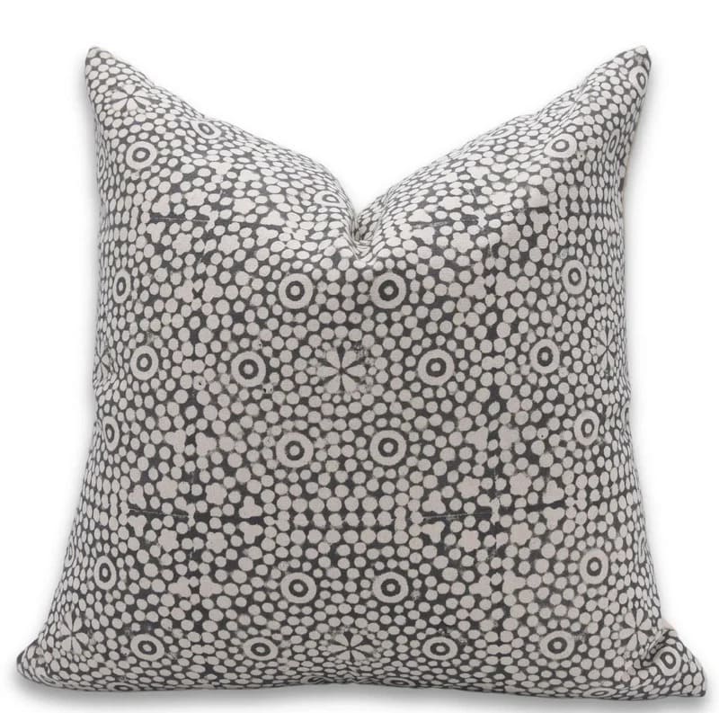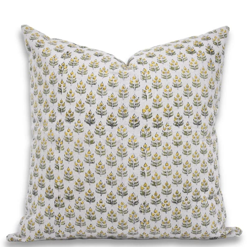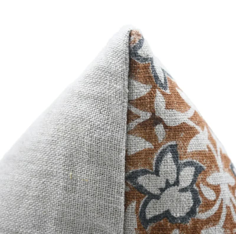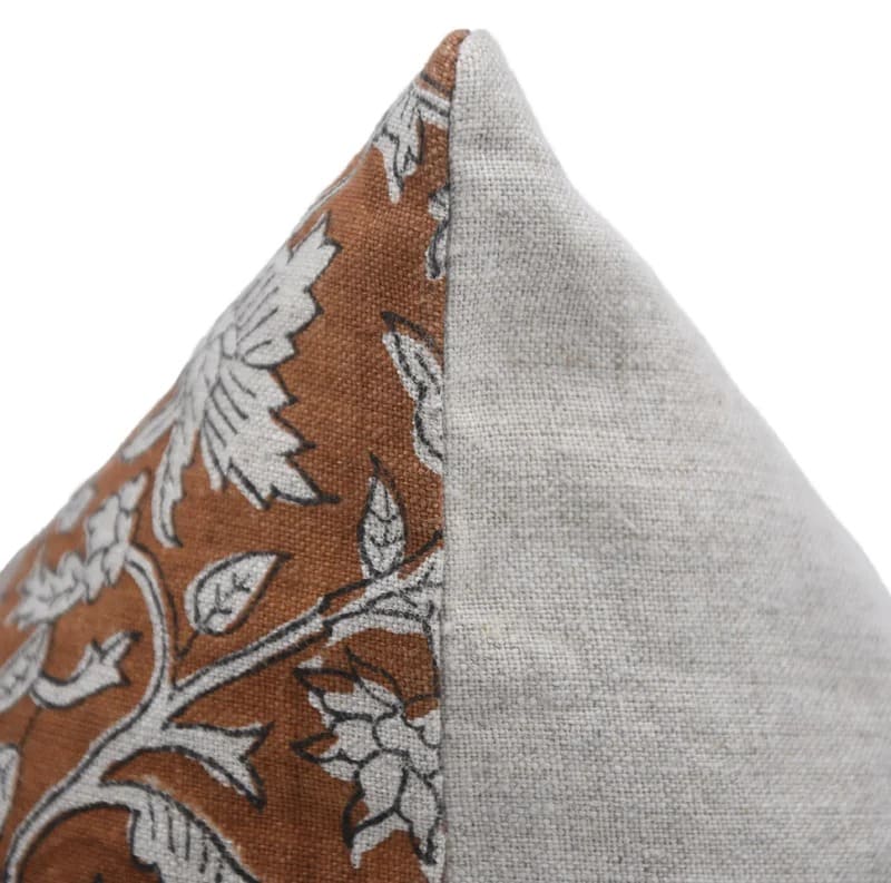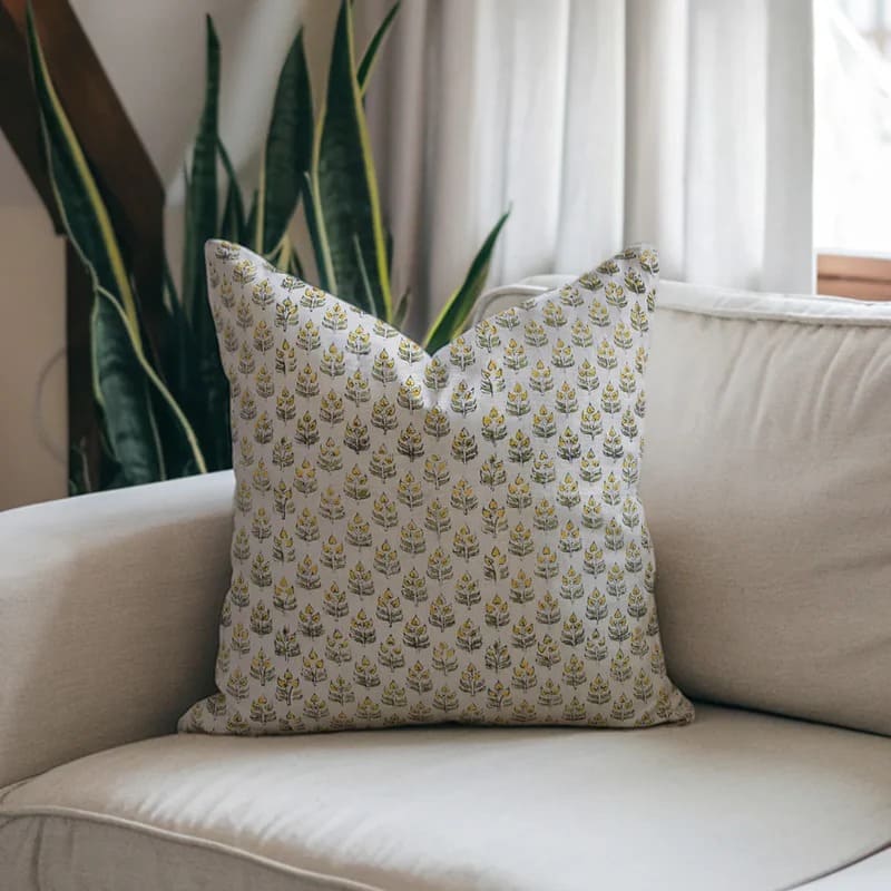 • Bold tones like the green block print pillow or elegant neutrals, such as the brown block print pillow, for refined touches