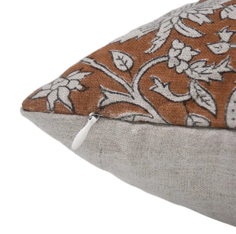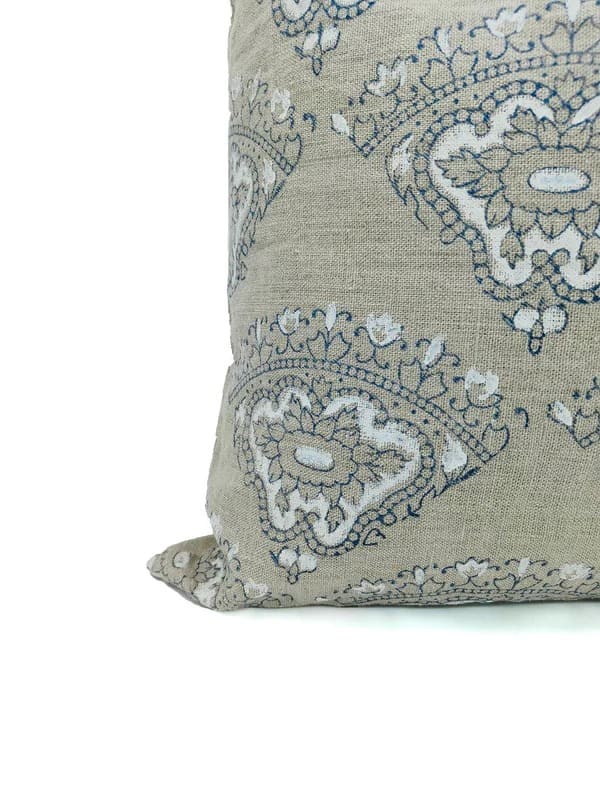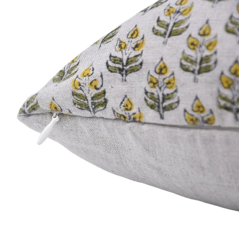 Thick Linen block print designer boho pillow/cushion cover- KHAJUR BUTTA - Fabdivine