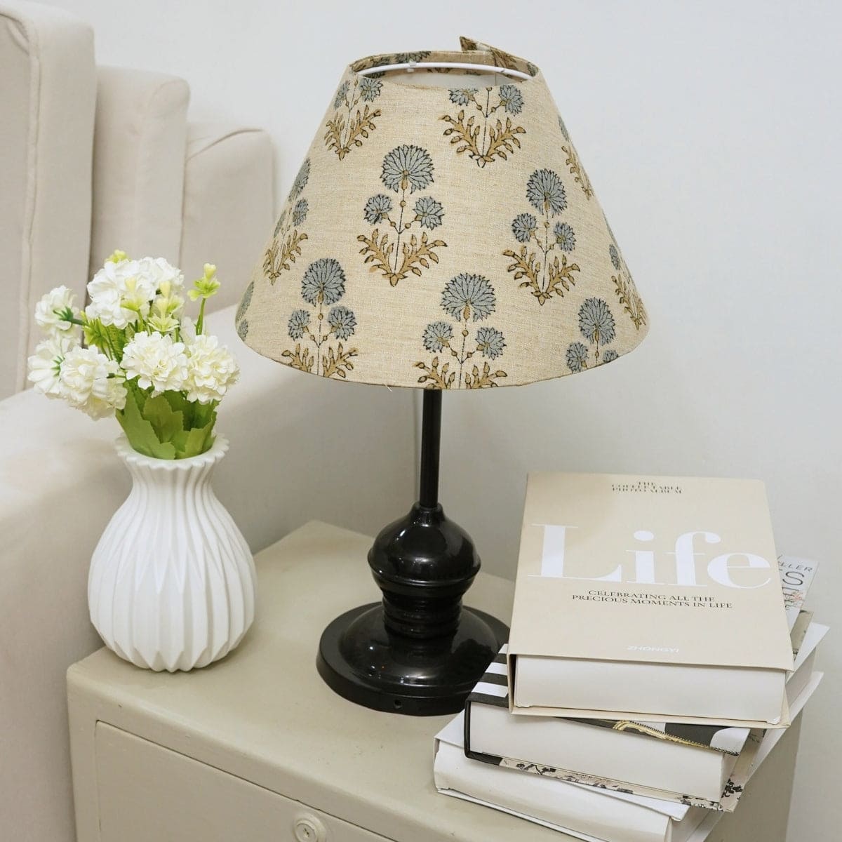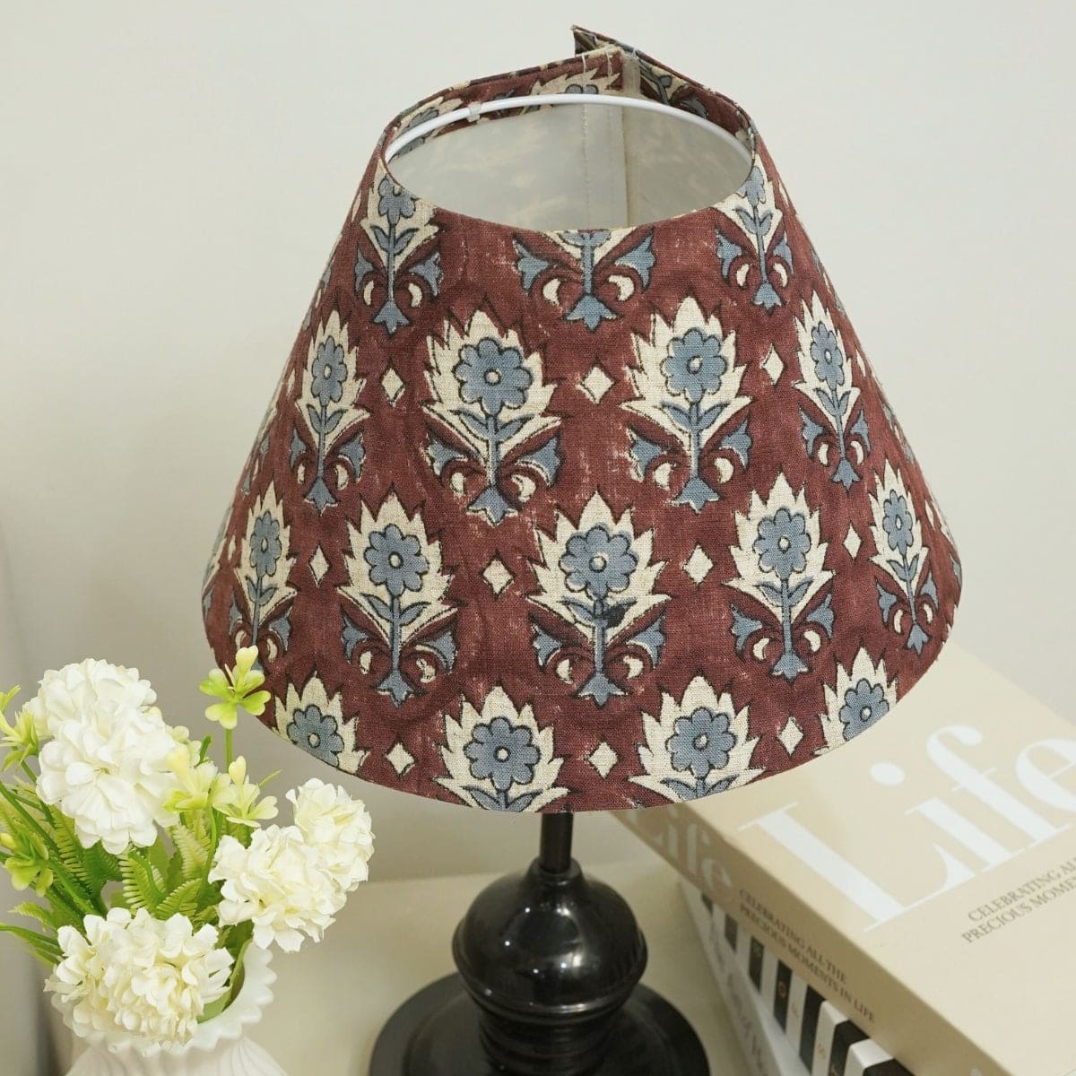 Light up your house with our handmade cone lampshade, where elaborate block prints help cast beautiful shadows and bring an ambience to the house. Both shades are individual functional art.