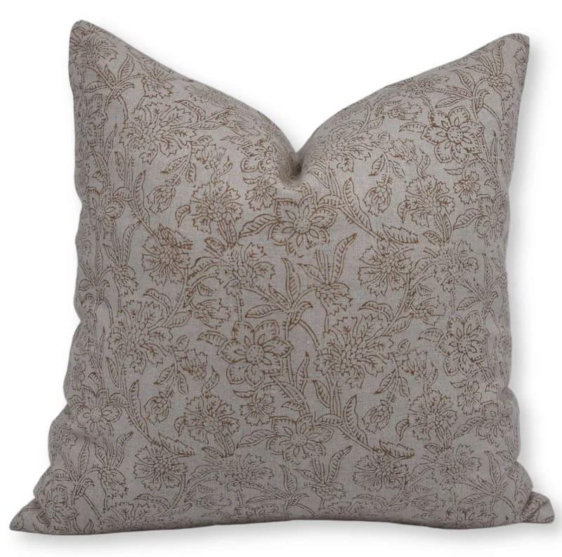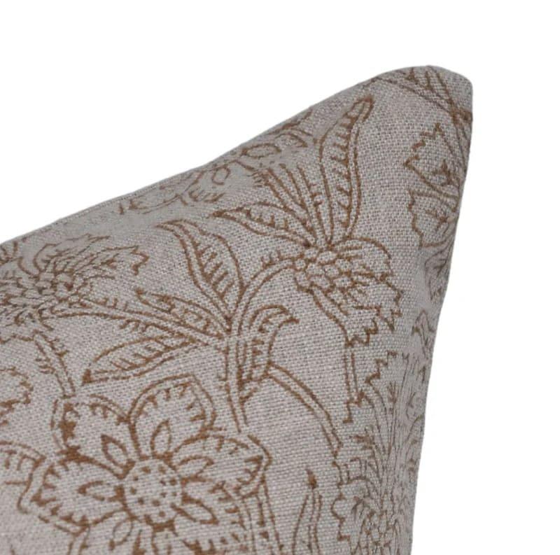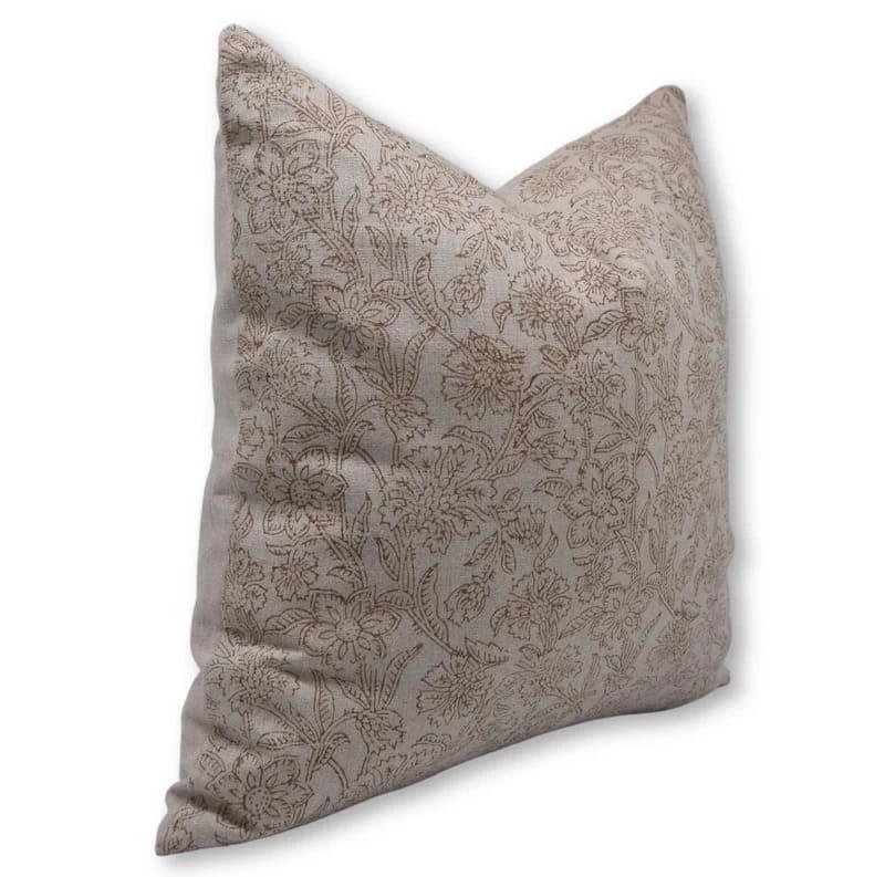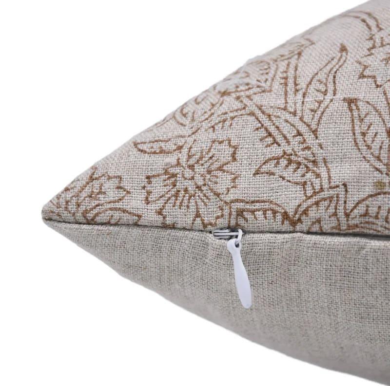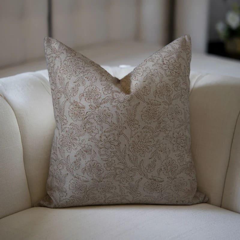 Linen Block Printed Floral Throw Pillow Covers Collection