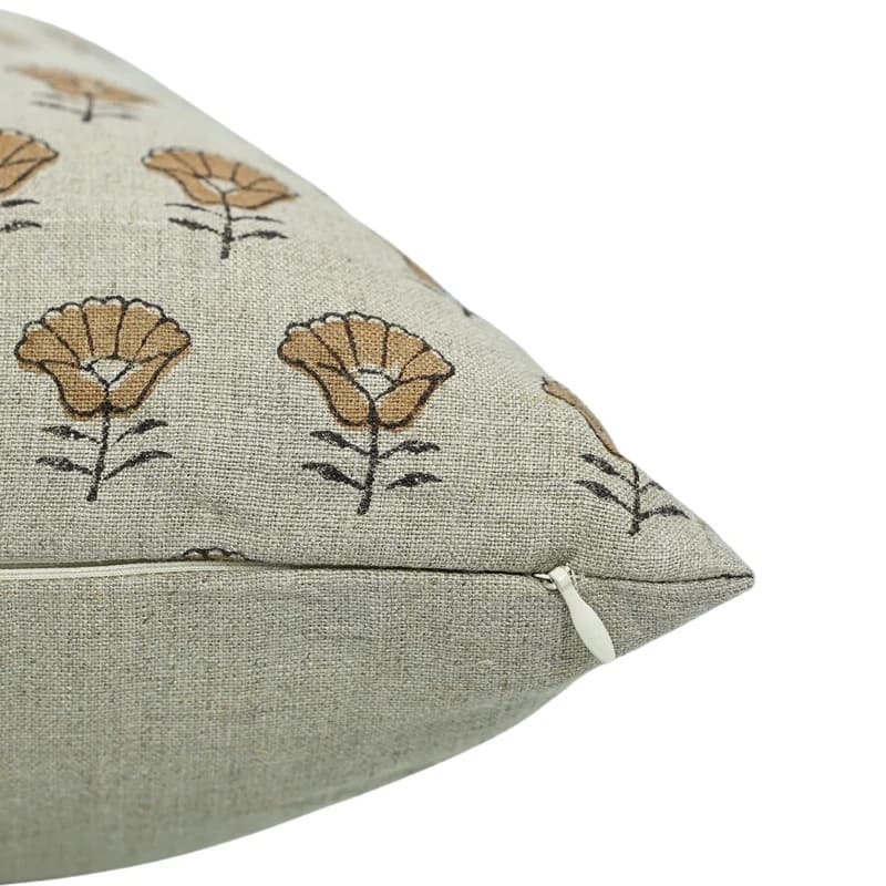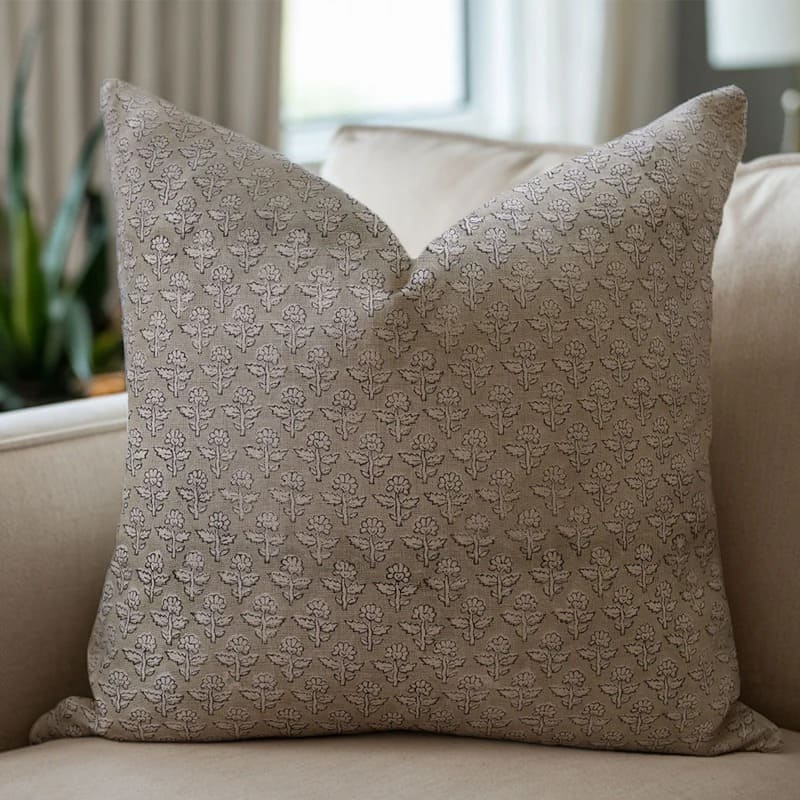 Linen Block Printed Floral Throw Pillow Covers Collection