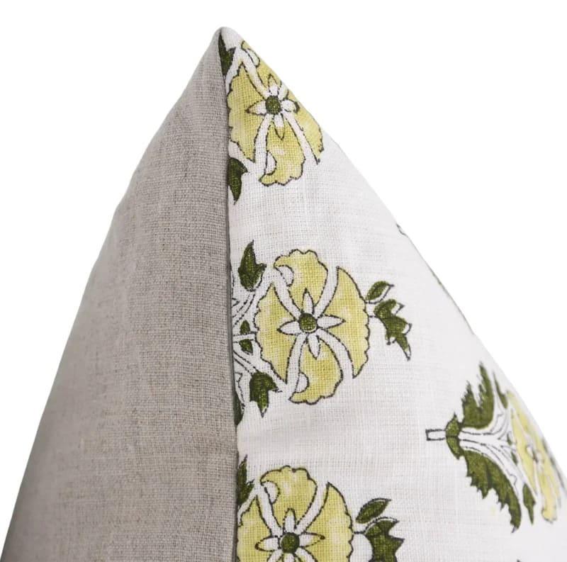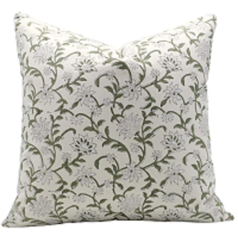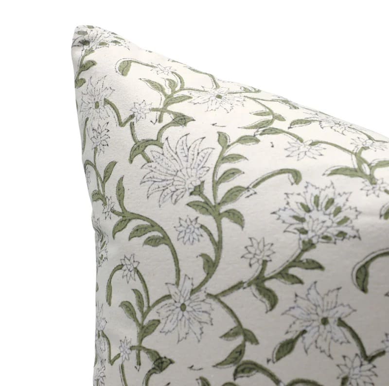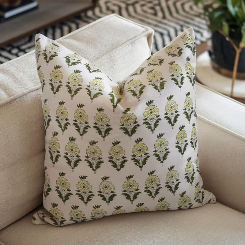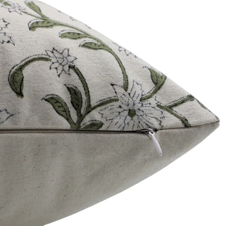 Linen Block Printed Floral Throw Pillow Covers Collection