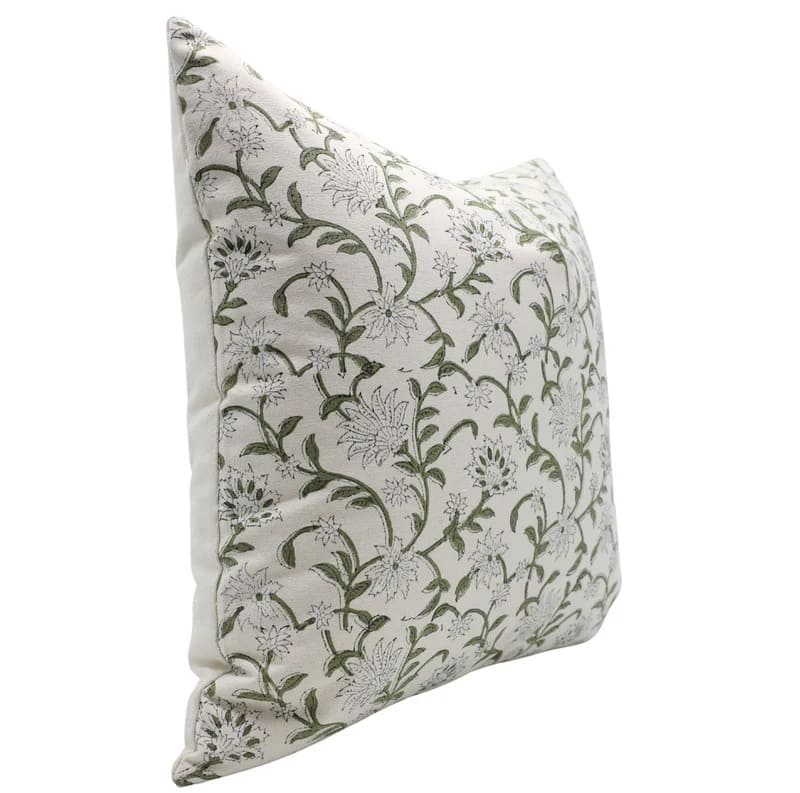 Full view of handblock print Thorny Stems cushion cover by Fab Divine, displayed as decorative pillow