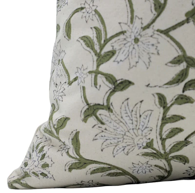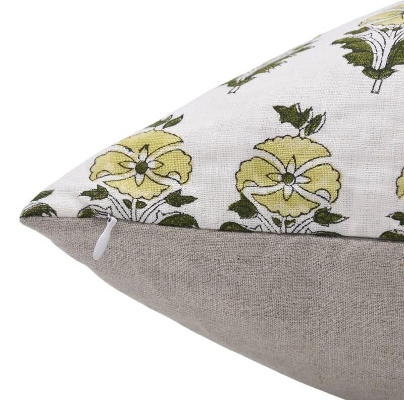 Handblock print Sandhya Pushp cushion cover by Fab Divine, pure linen fabric