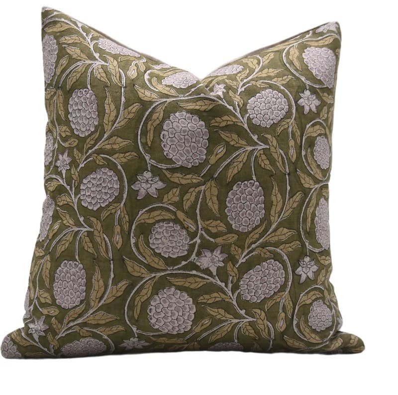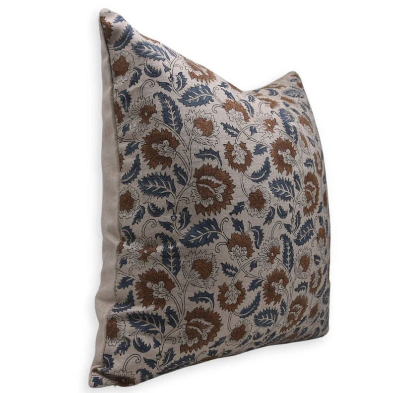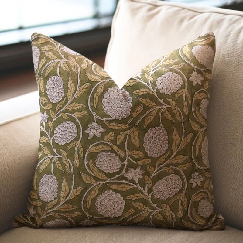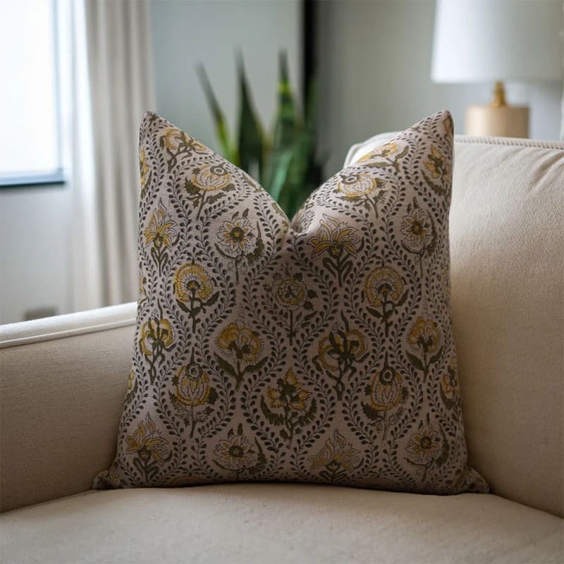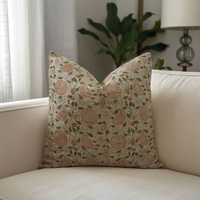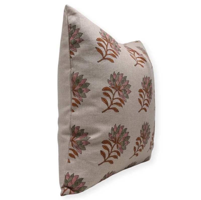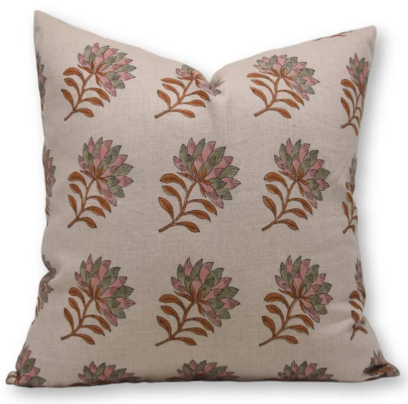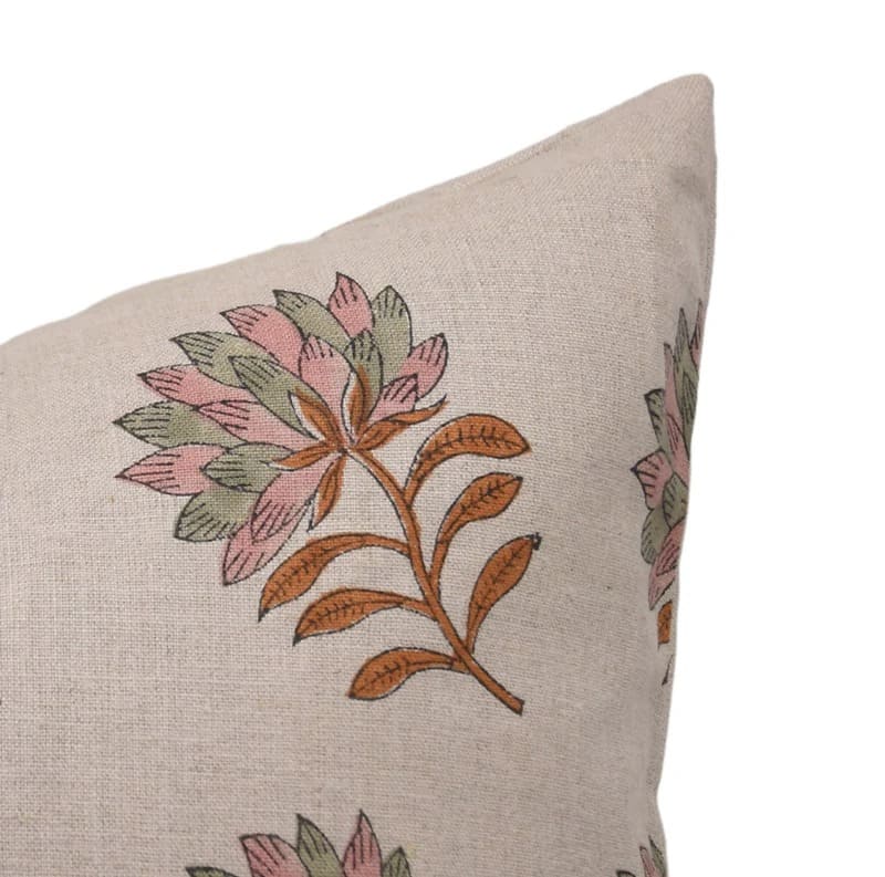 Linen Block Printed Floral Throw Pillow Covers Collection