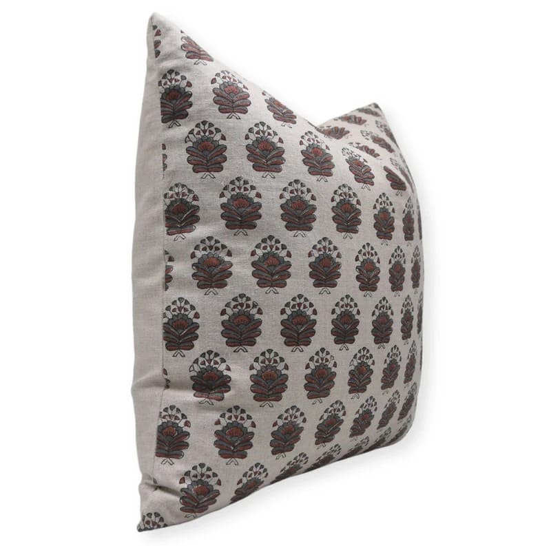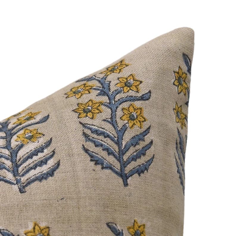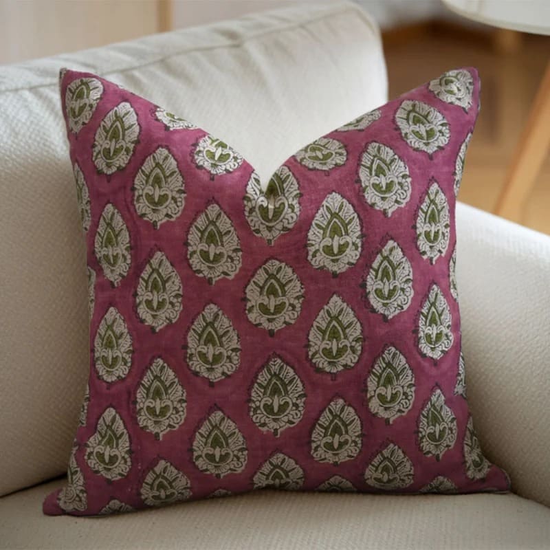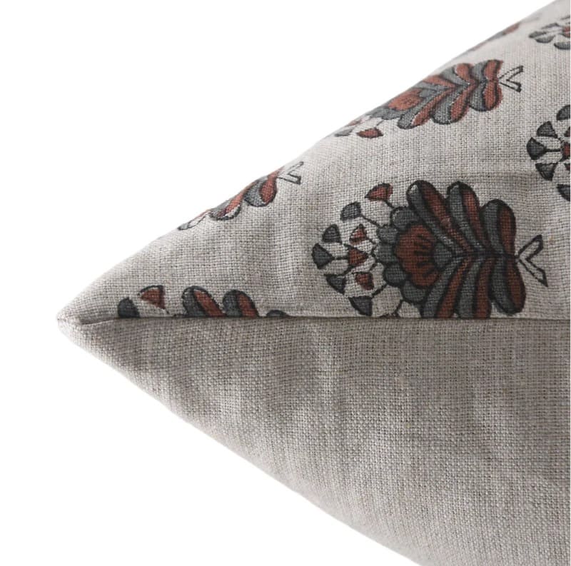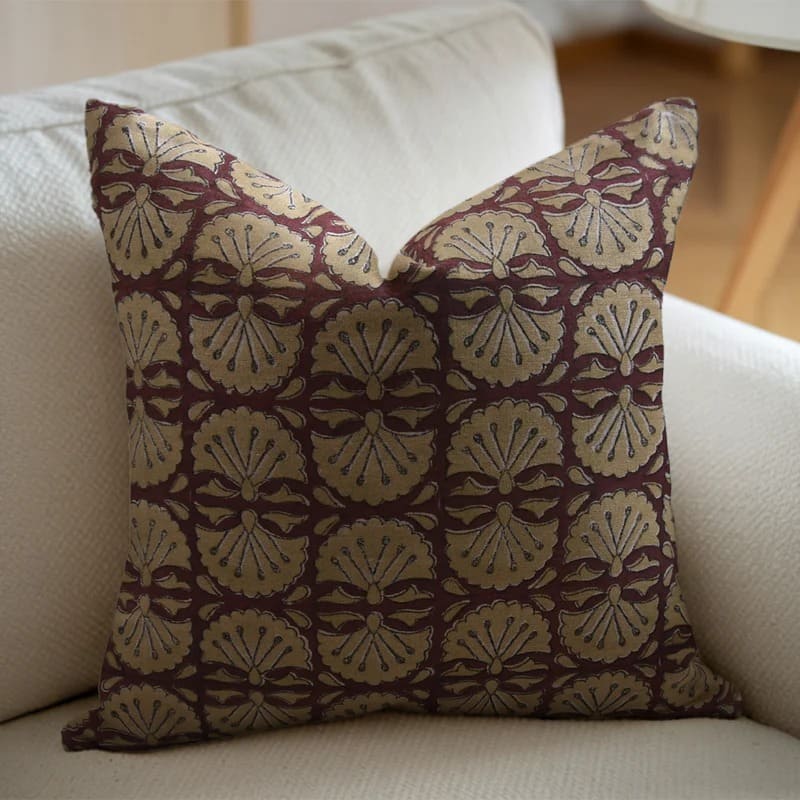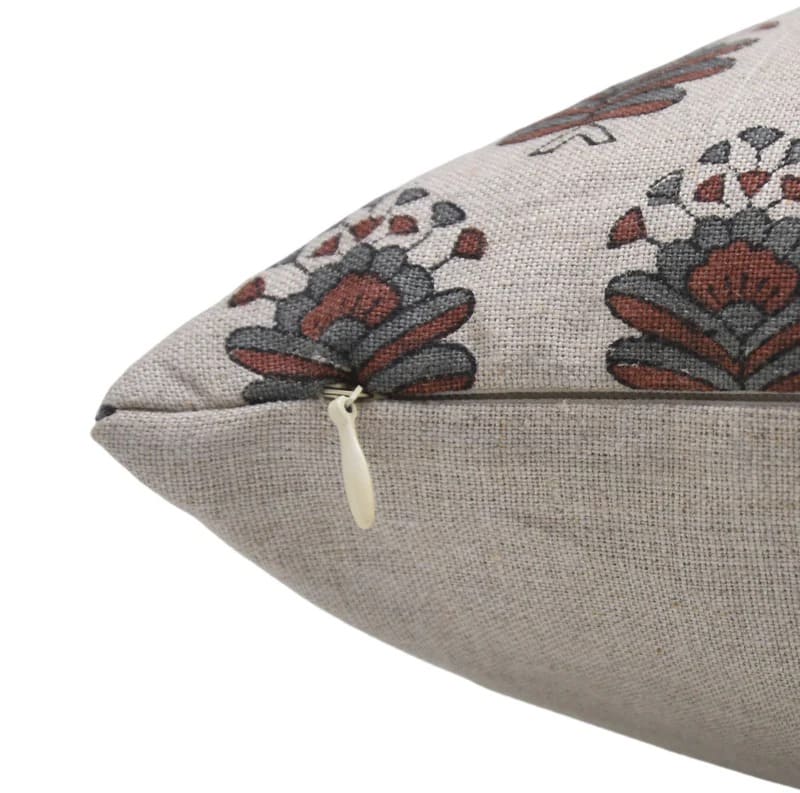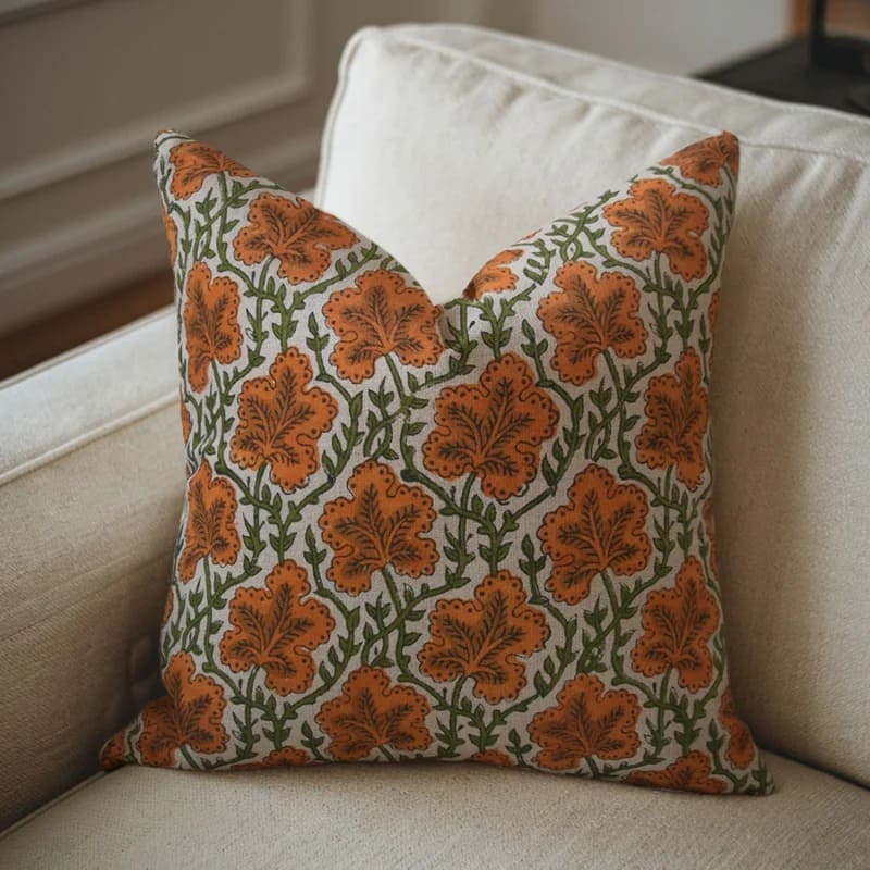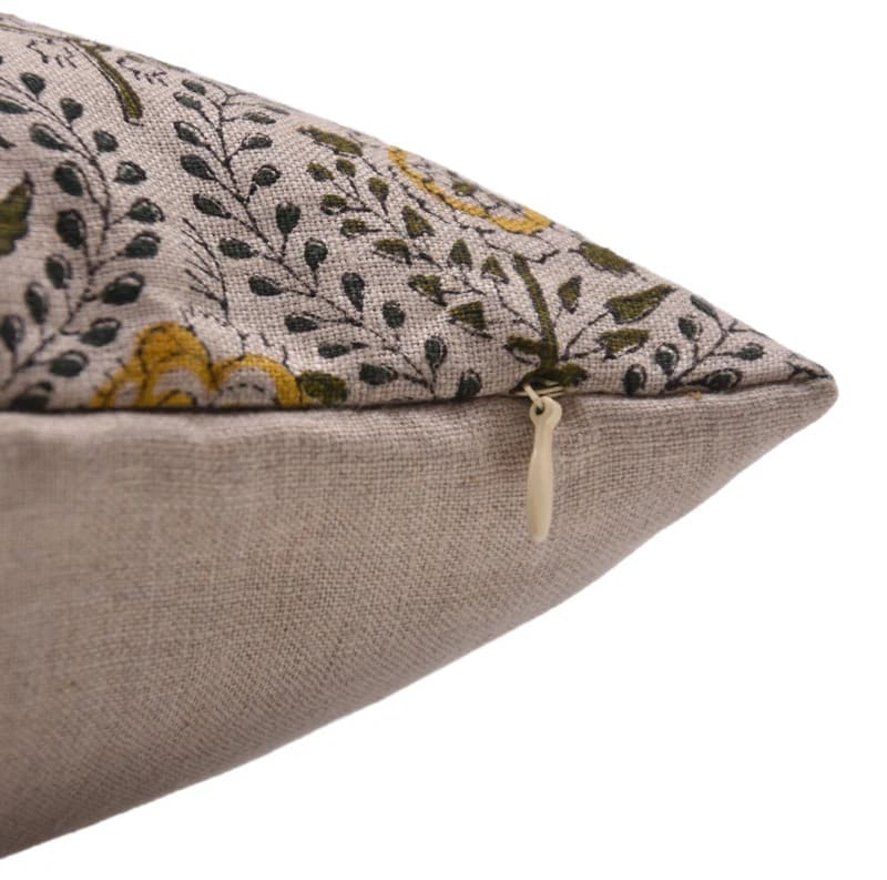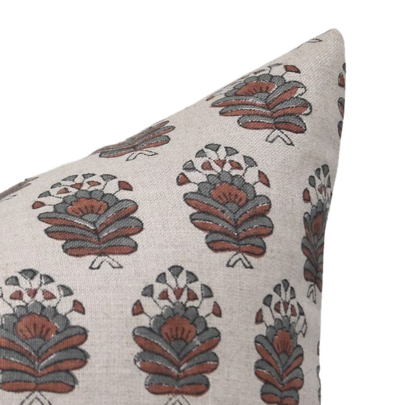 Linen Block Printed Floral Throw Pillow Covers Collection