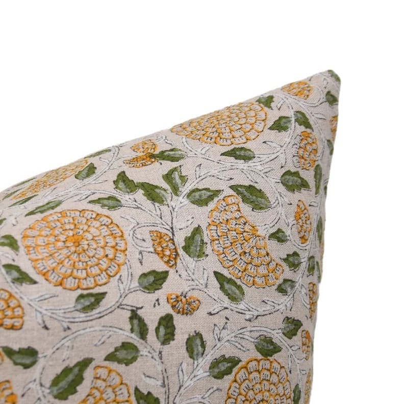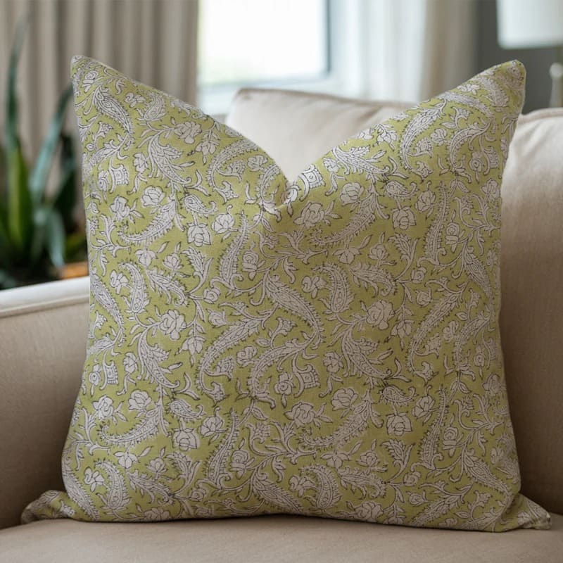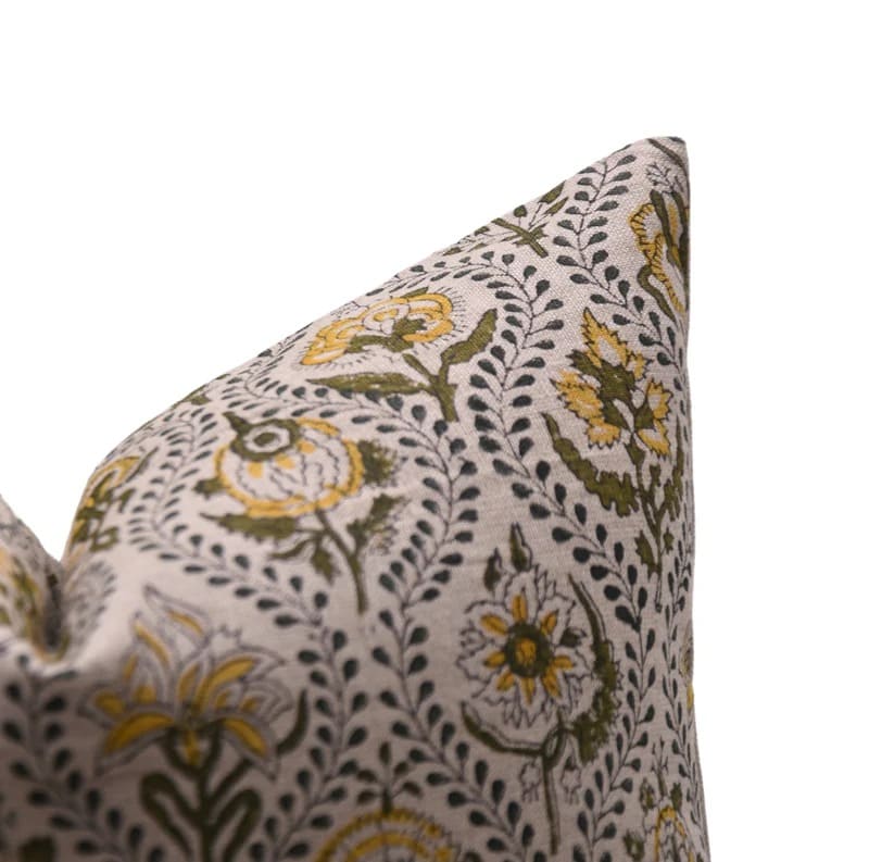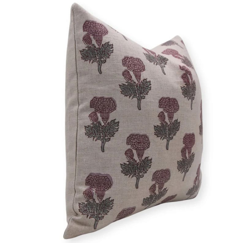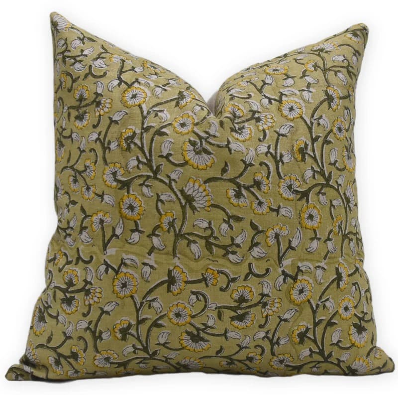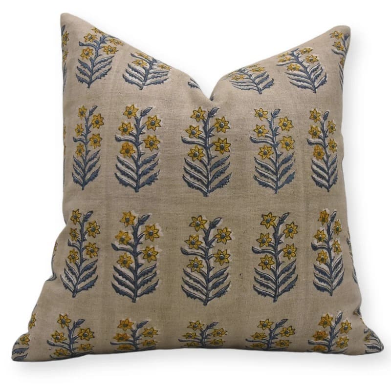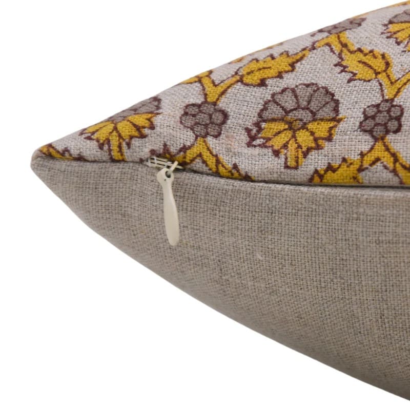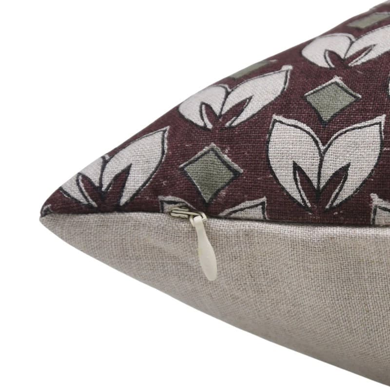 Linen Block Printed Floral Throw Pillow Covers Collection