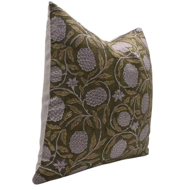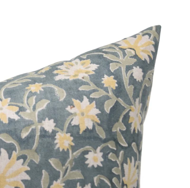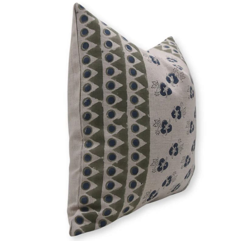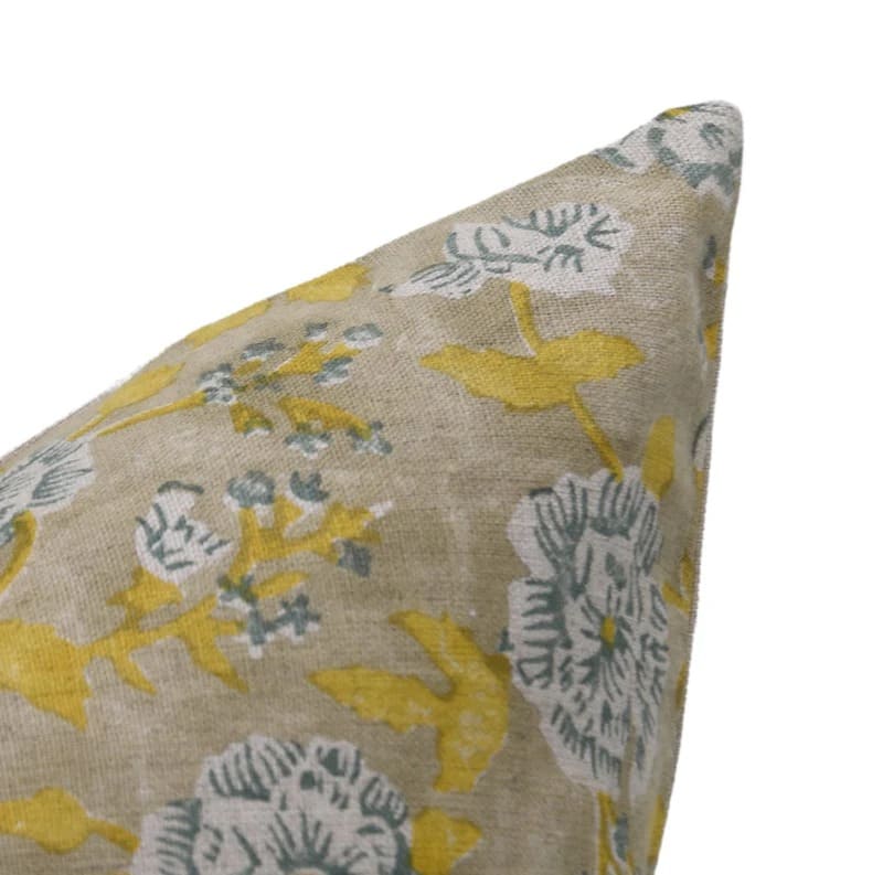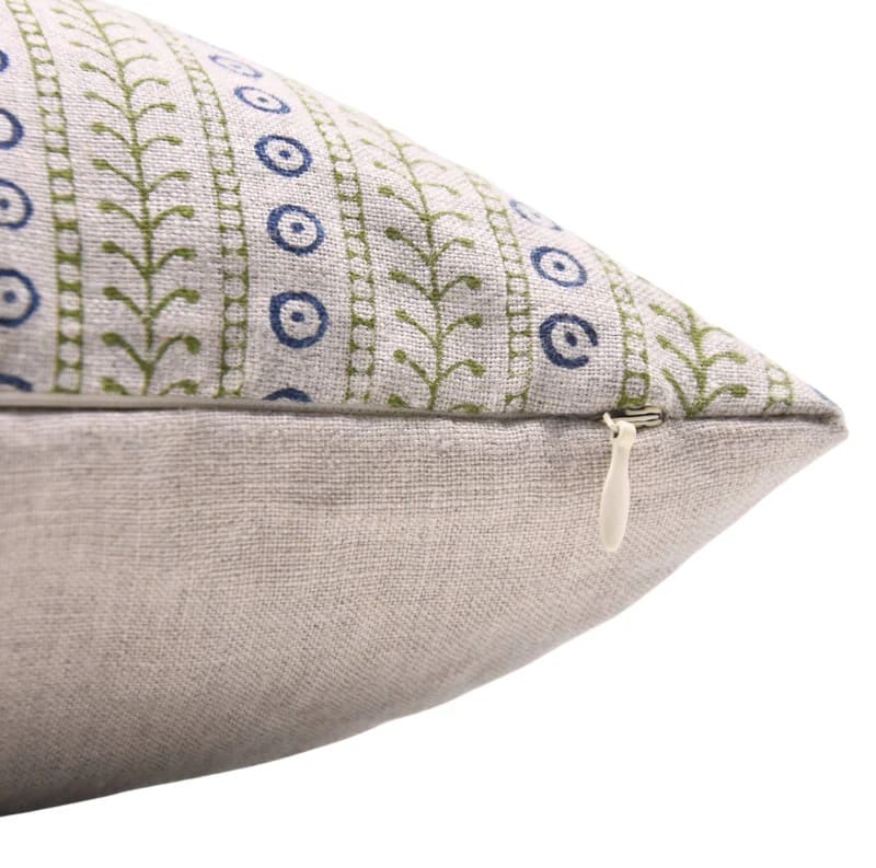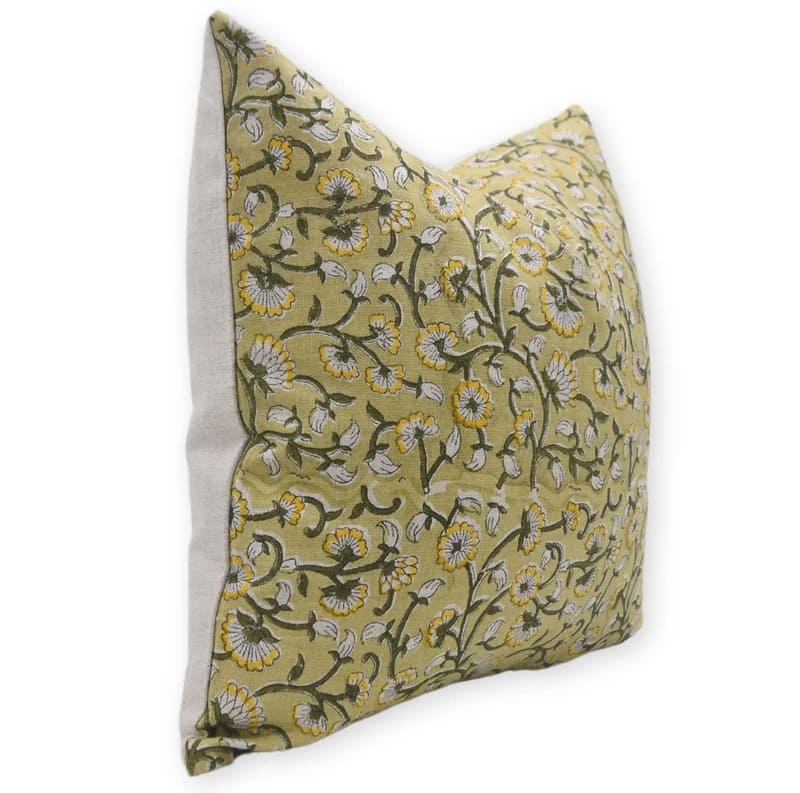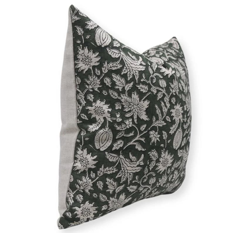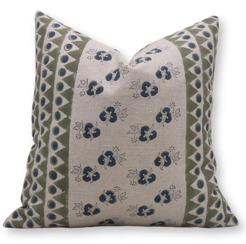 Linen Block Printed Floral Throw Pillow Covers Collection