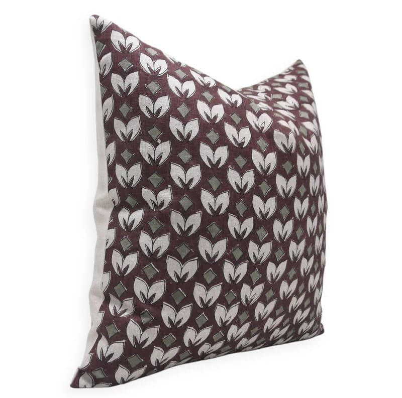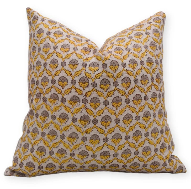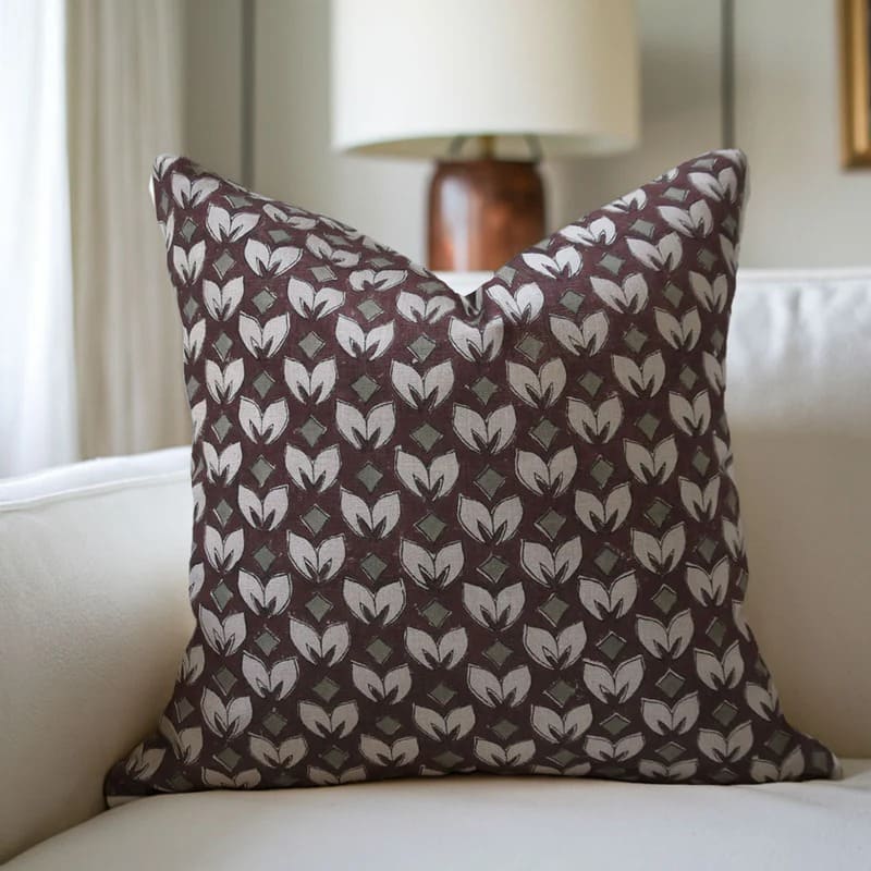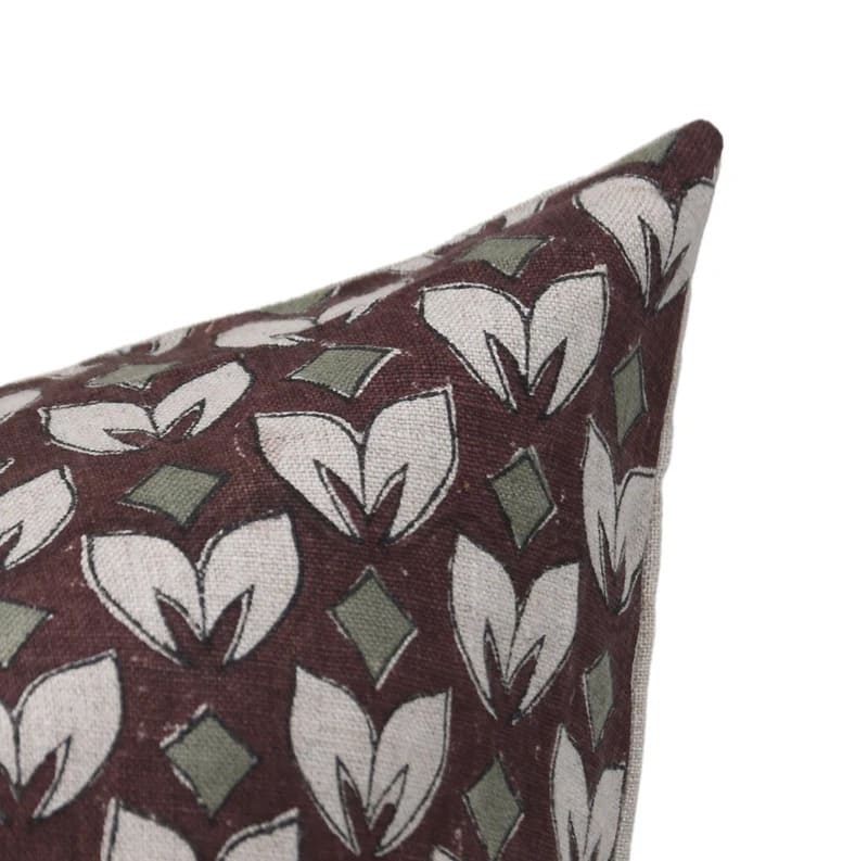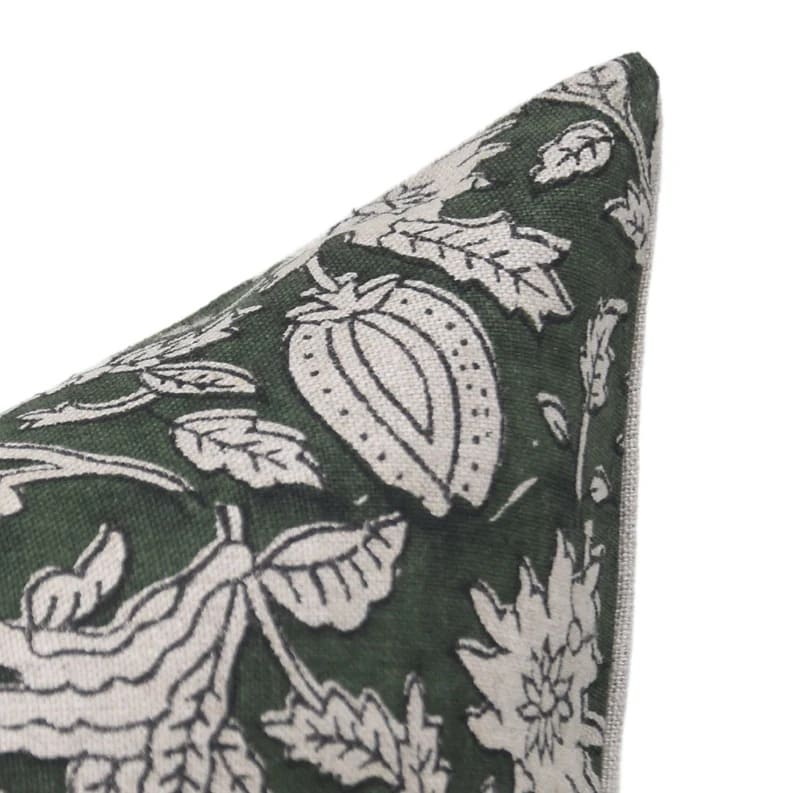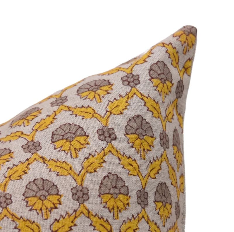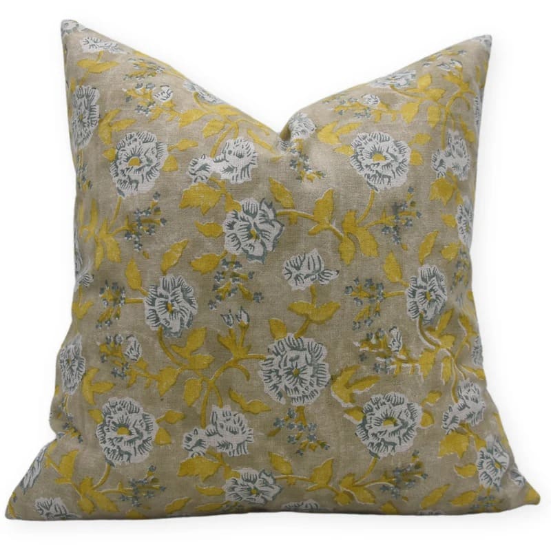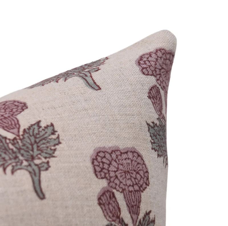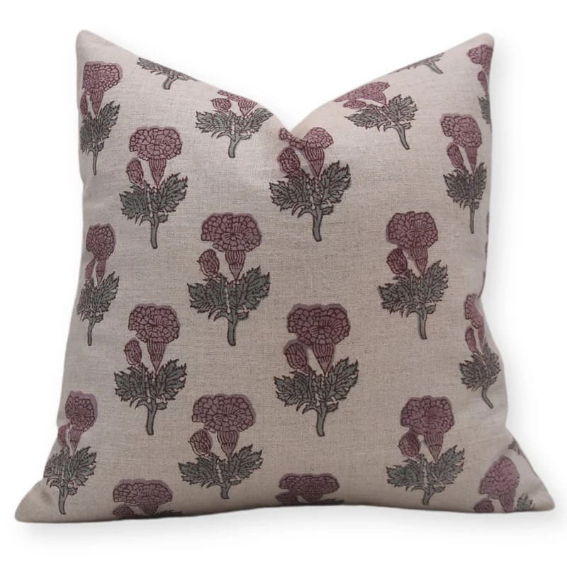 Linen Block Printed Floral Throw Pillow Covers Collection