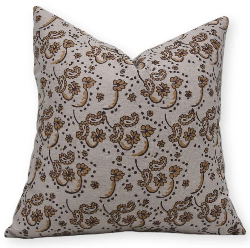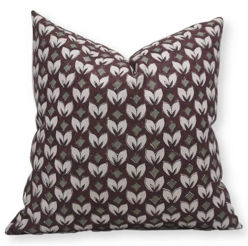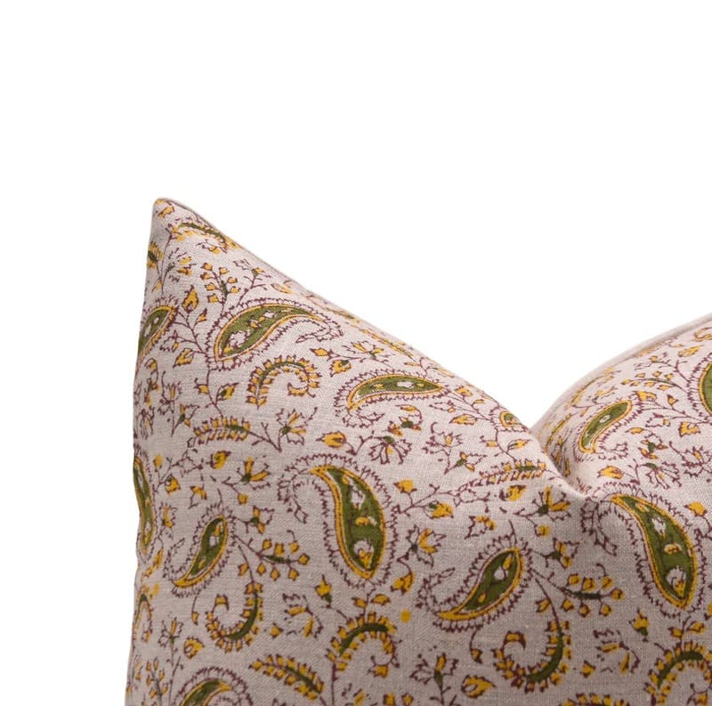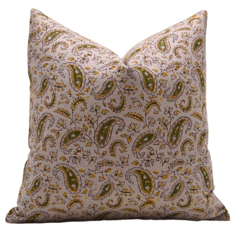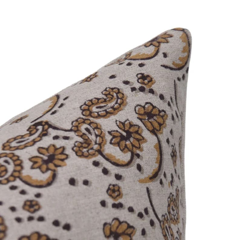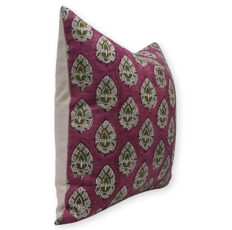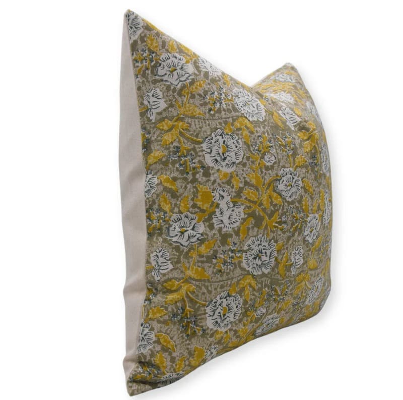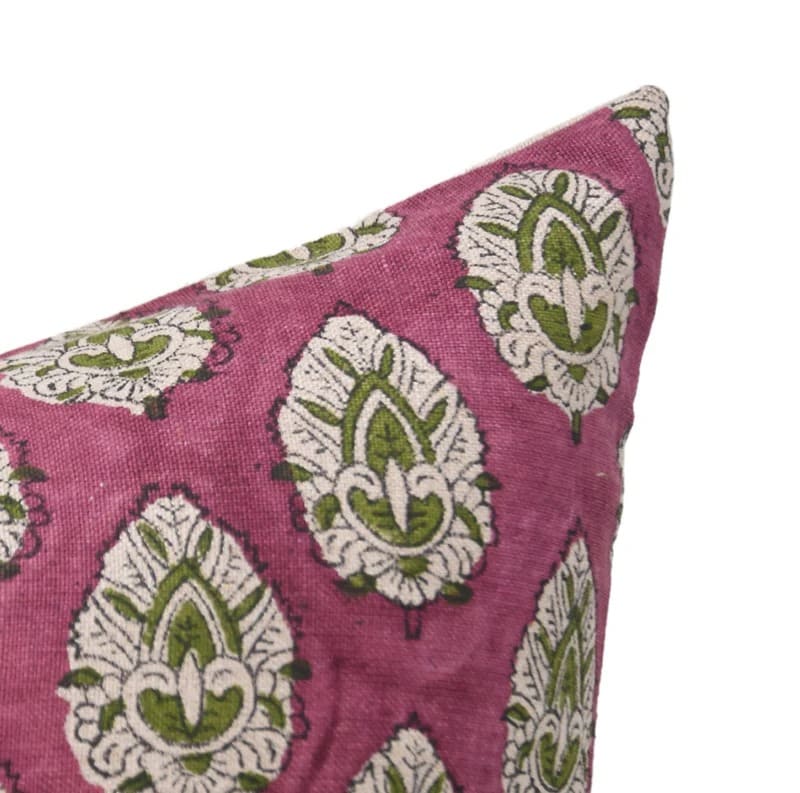 Linen Block Printed Floral Throw Pillow Covers Collection