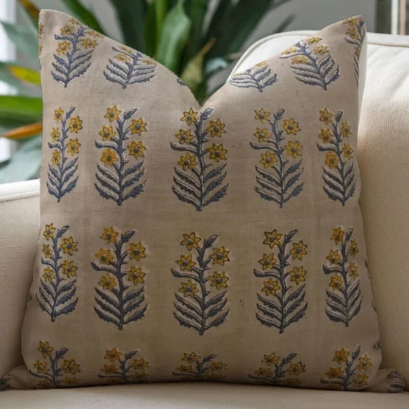 The best of our collection is a combo of craft and exquisite, timeless style. Our organic block-printed linen flower throw pillow cover collection combines block-printed floral mixes and linen texture and feel. These covers come in a variety of sizes, that is, 12 x 20, 26 x 26 inches, and they match well with couches, beds, and even outdoor furniture. The ingredients used are thick linen and blends, which are strong and classy. We have off-white linen styles; the botanical feel is negligible, yet it appeals to the people who love simplicity and elegance.