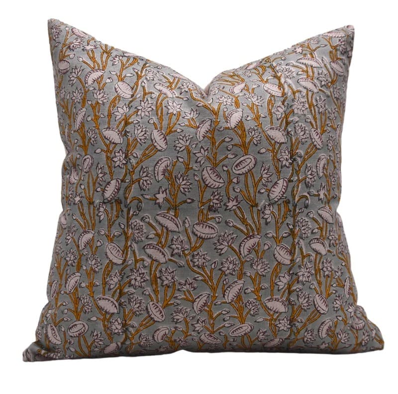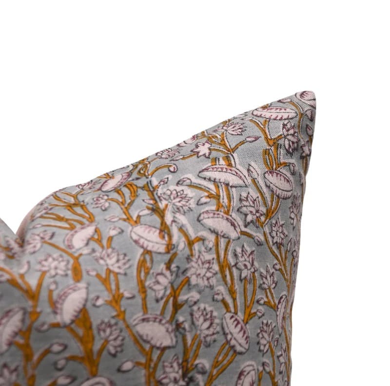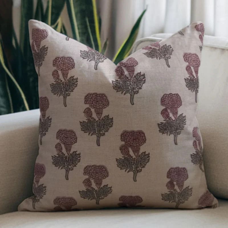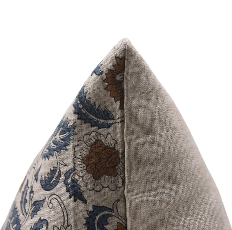Pure Linen Block Printed Floral Throw Pillow Covers Collection