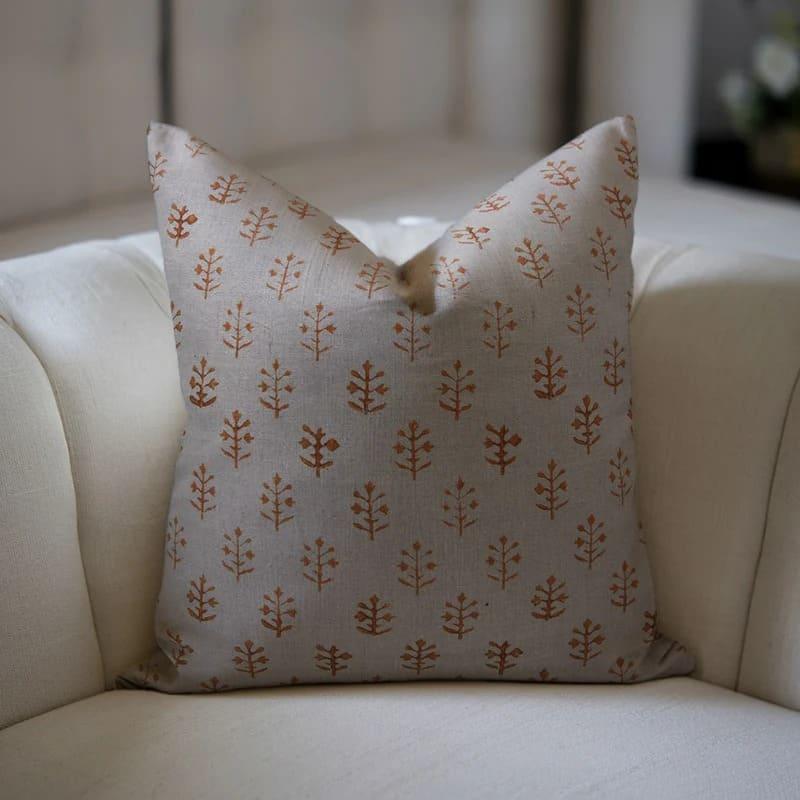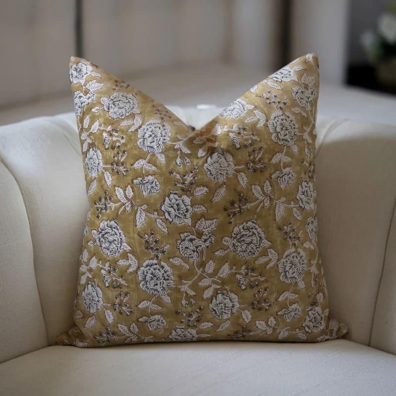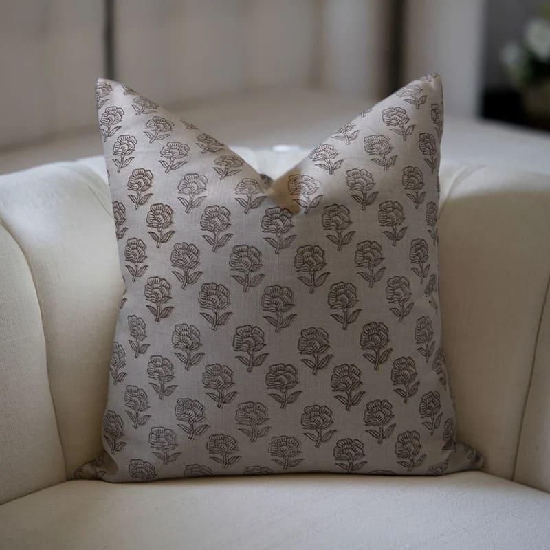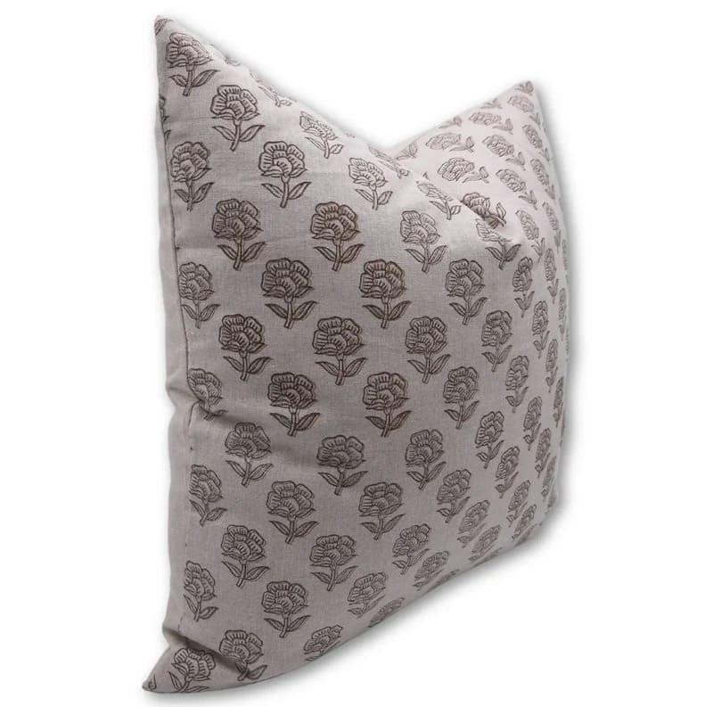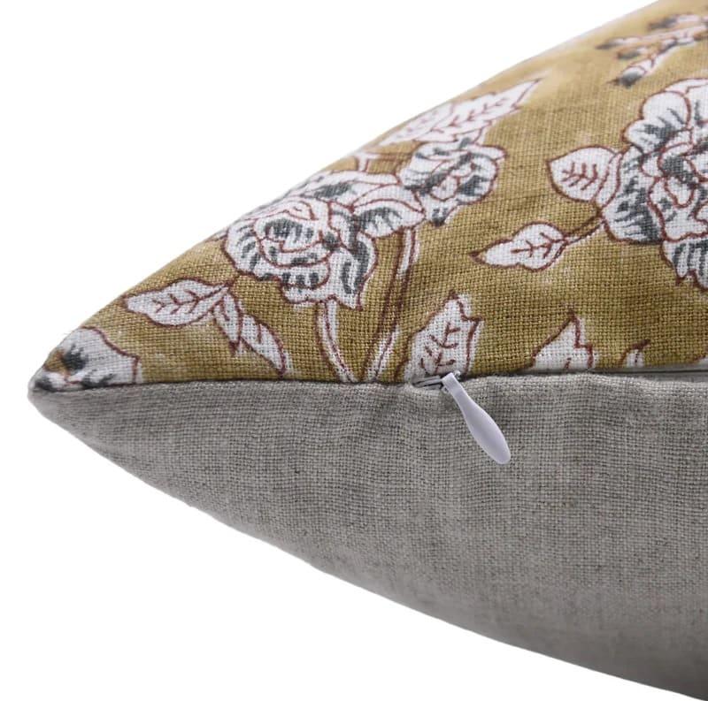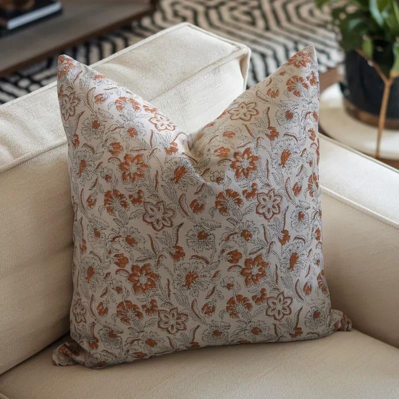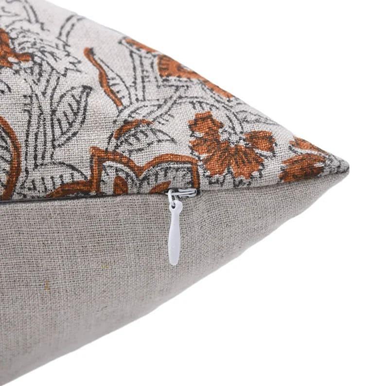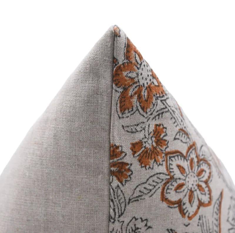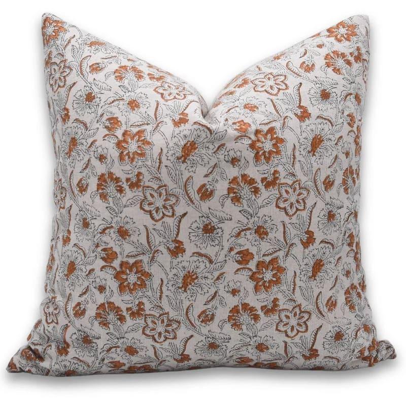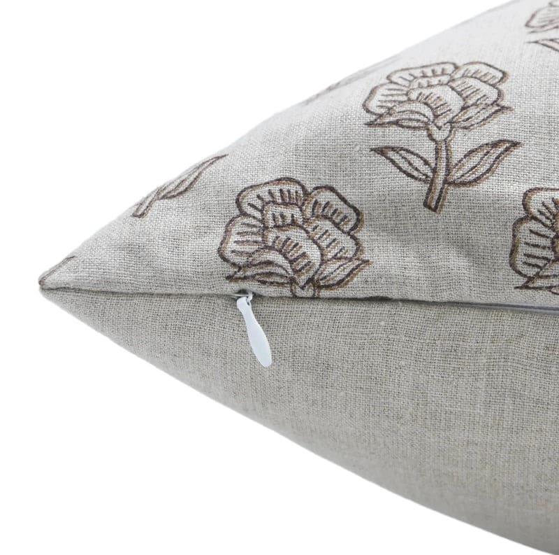 Linen Block Printed Floral Throw Pillow Covers Collection