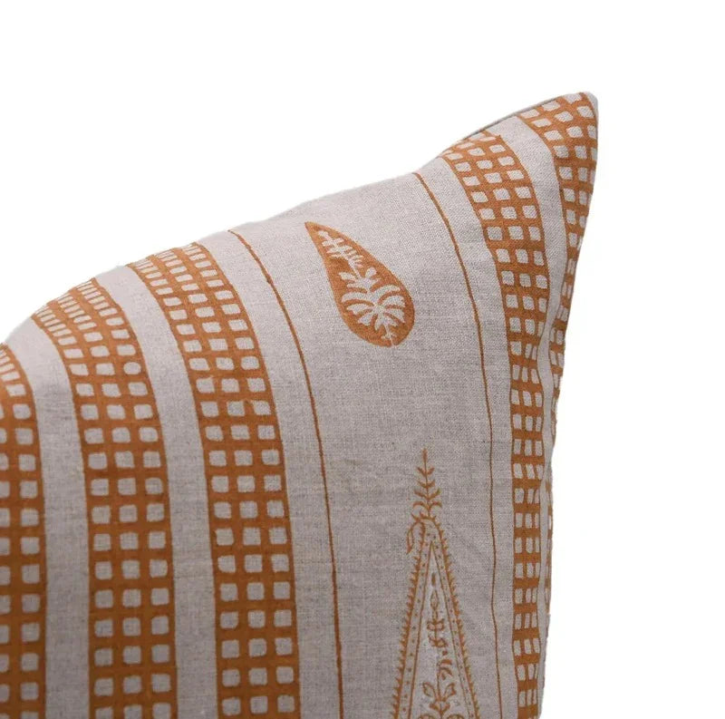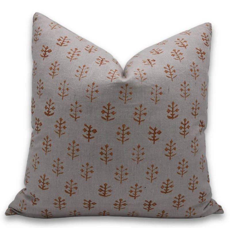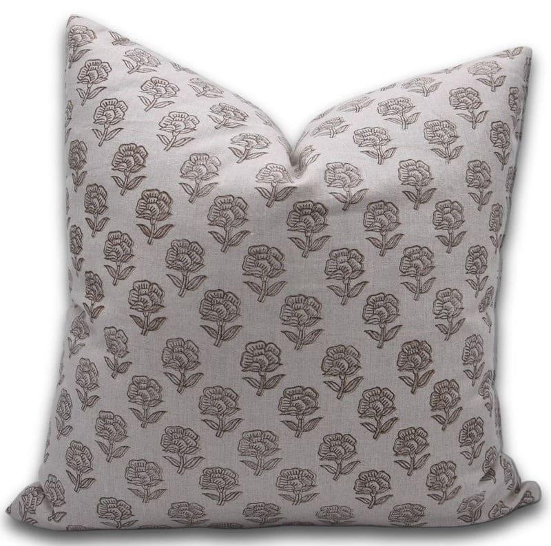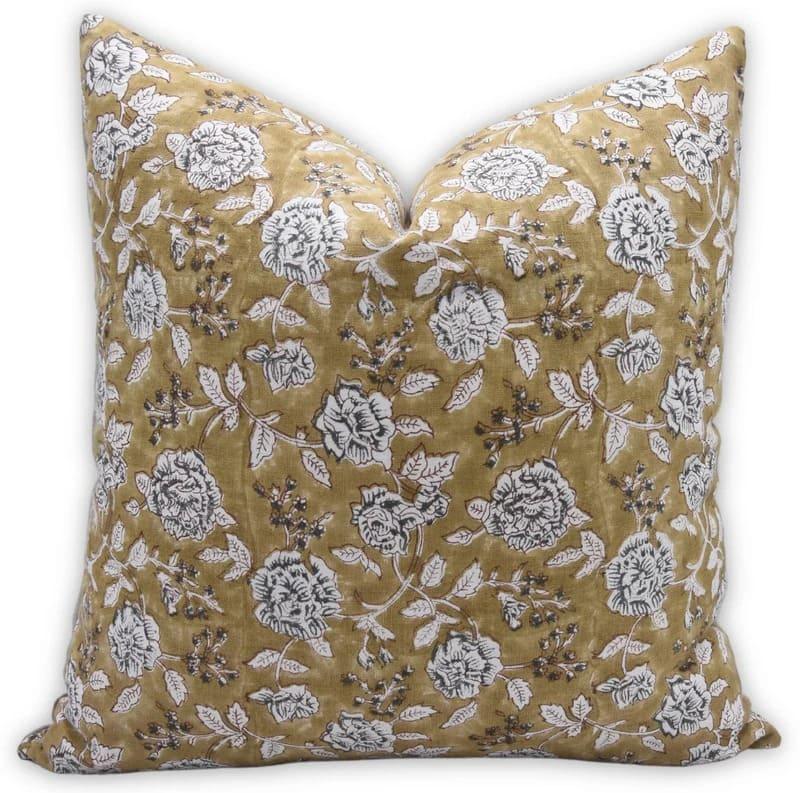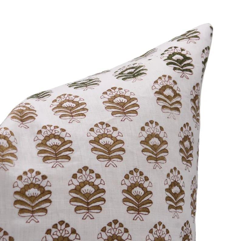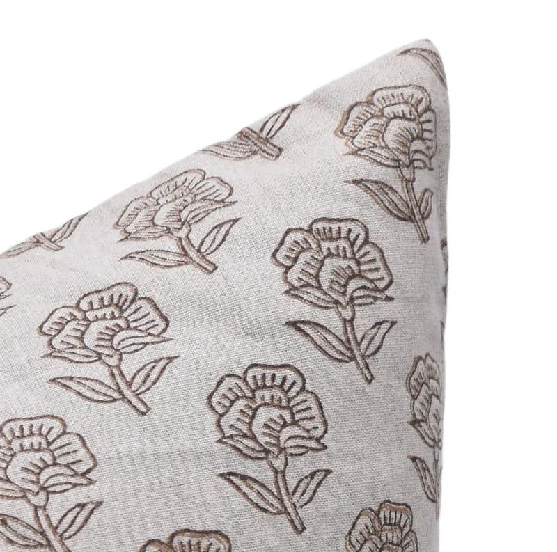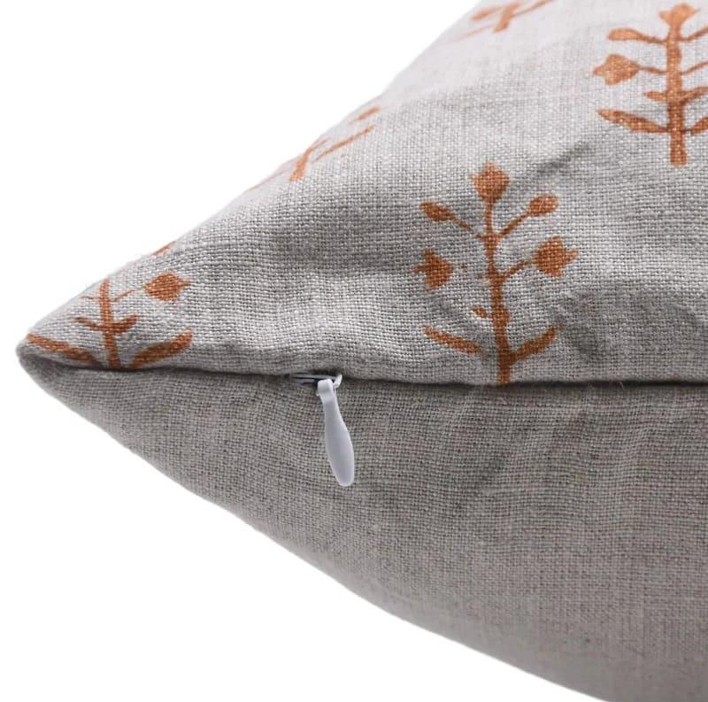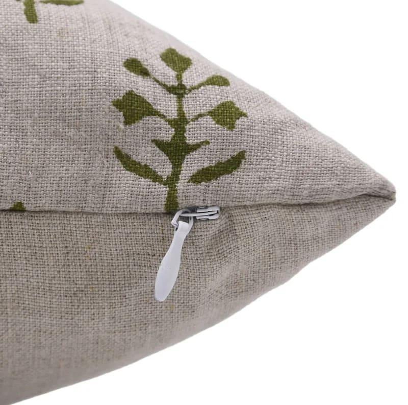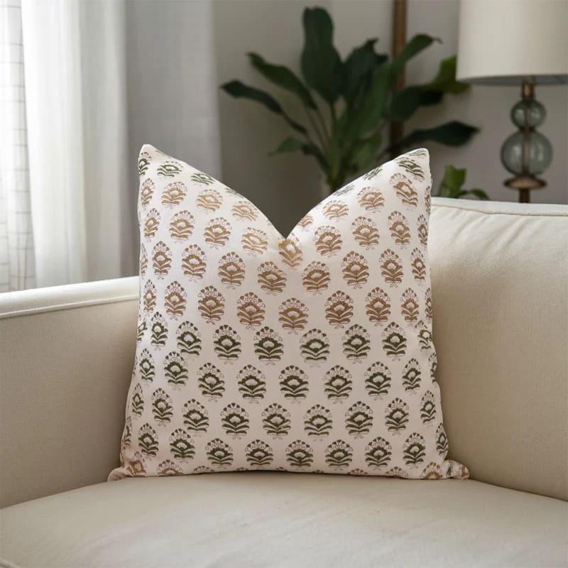 Linen Block Printed Floral Throw Pillow Covers Collection