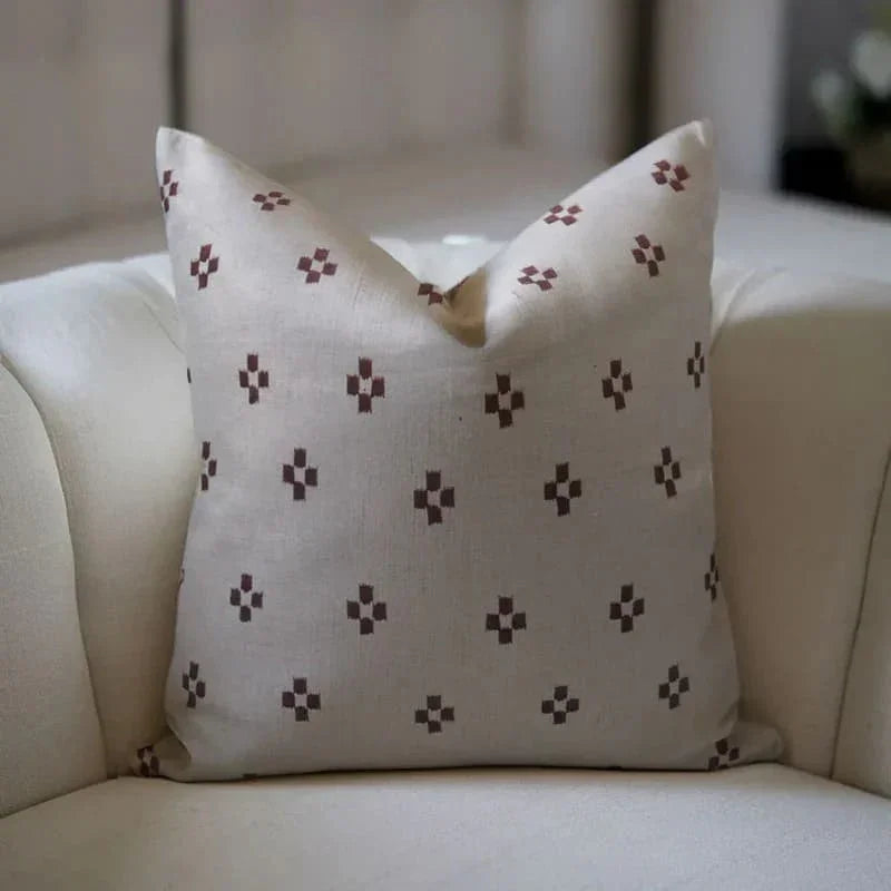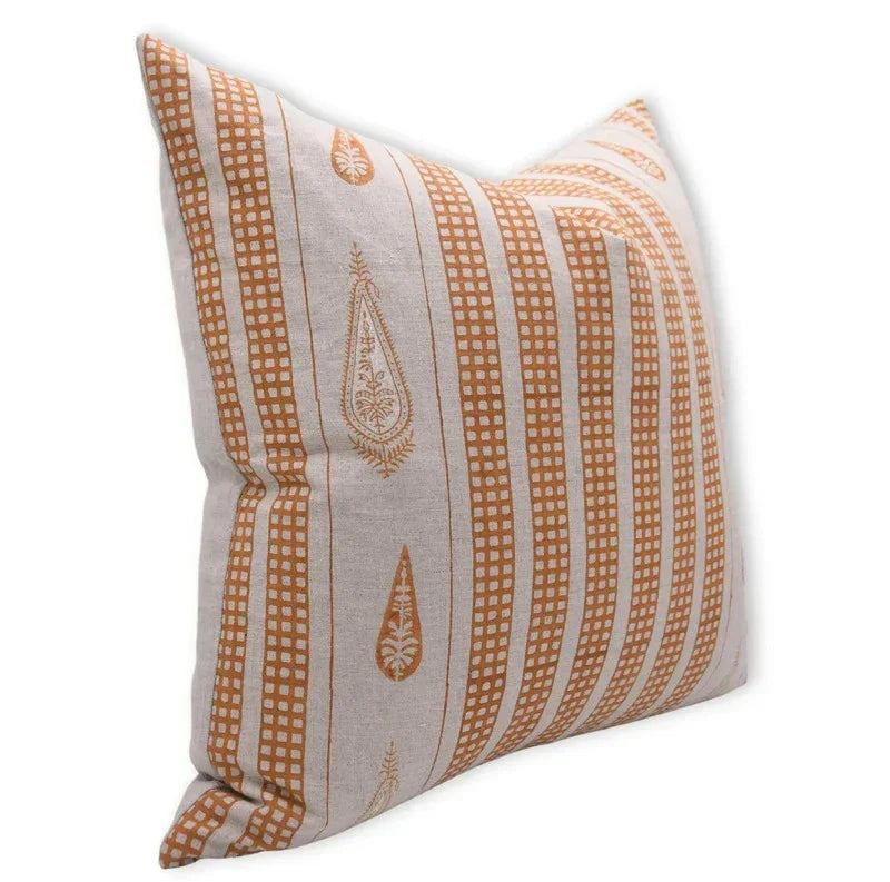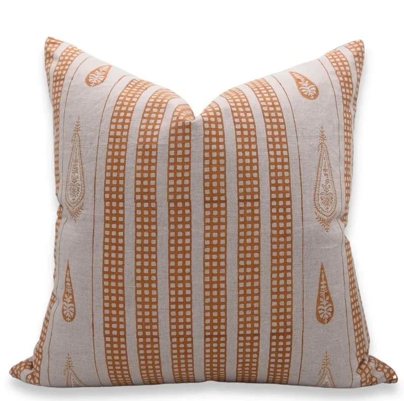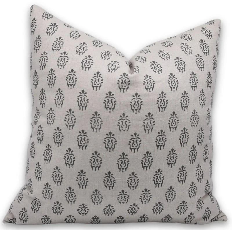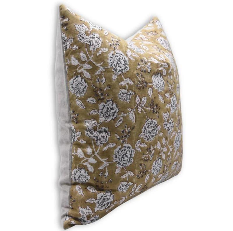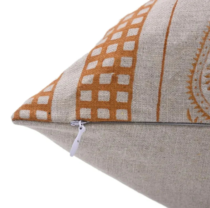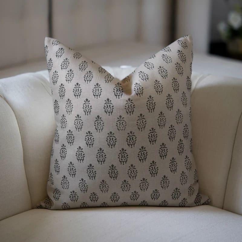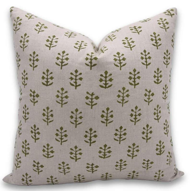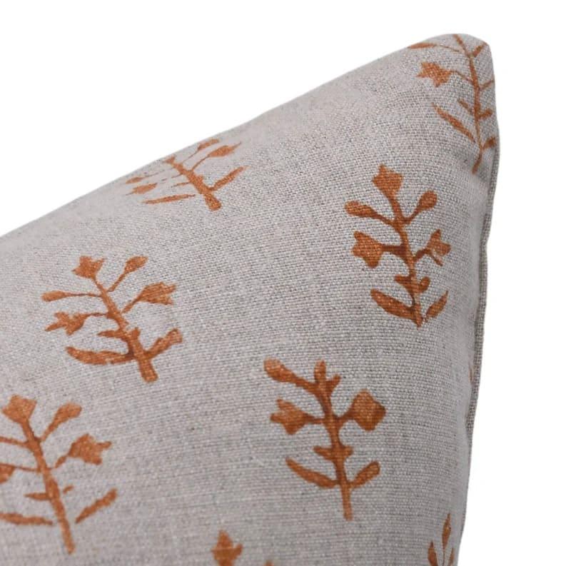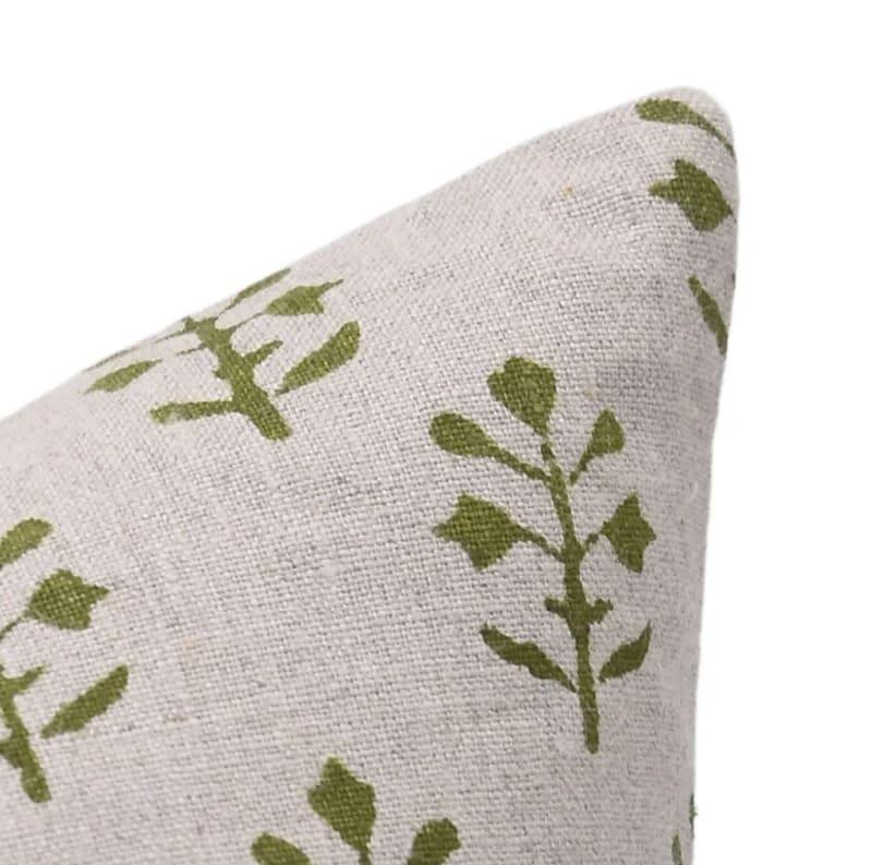 Linen Block Printed Floral Throw Pillow Covers Collection