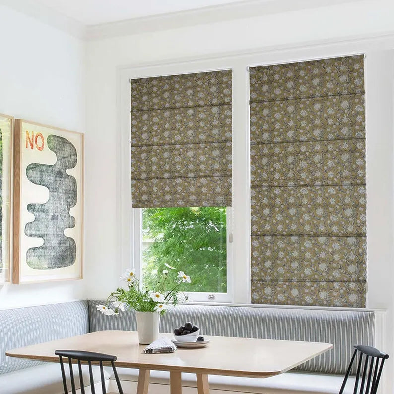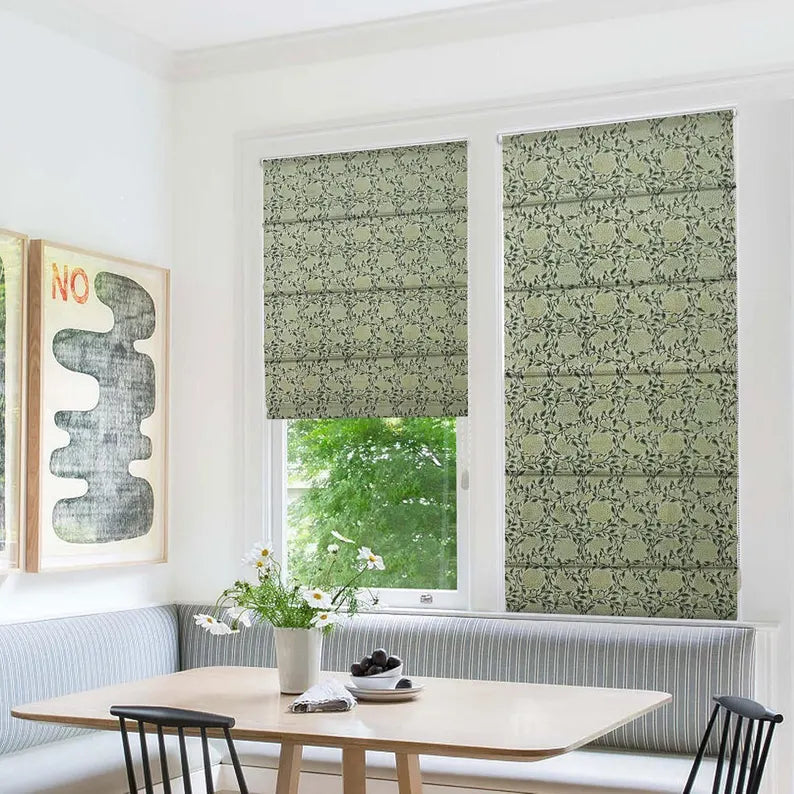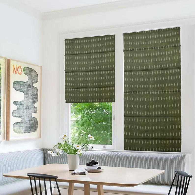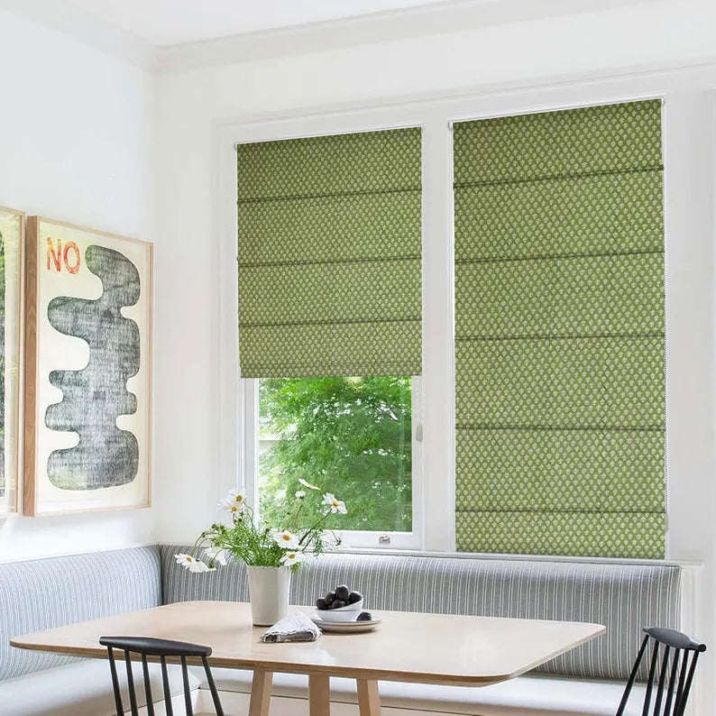 Roman shades above a kitchen sink make one of the classic applications blending beauty with practicality. With moisture-resistant fabrics, kitchen Roman shades are not only stylish but also practical, withstanding the heat and humidity of kitchens. The picture-perfect kitchen window Roman shade would be the one that is as much of a tour de force in functionality as it is pleasing to look at, giving your kitchen space an aura of elegance and warmth.