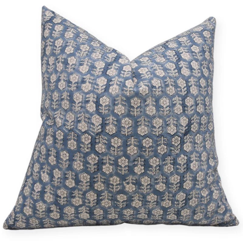Blue throw pillow floral pattern