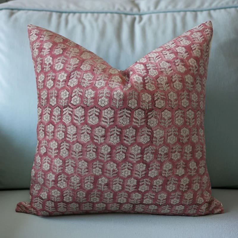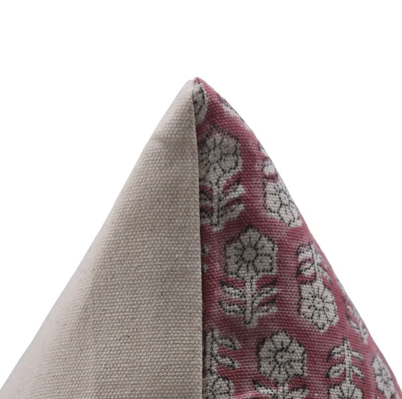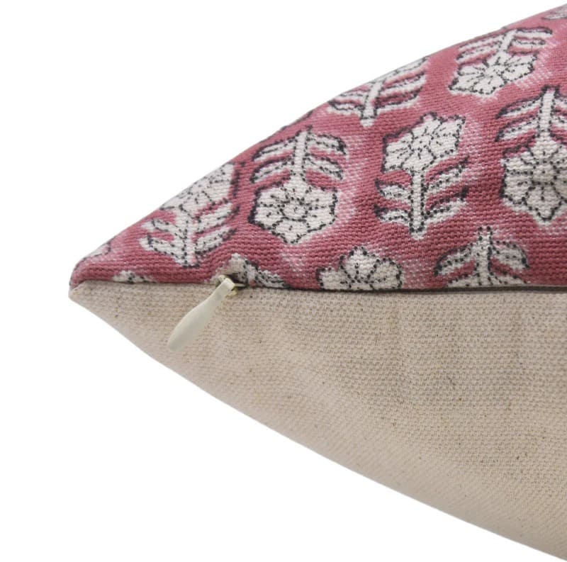 Fab Divine artisan handblock print pillow cover featuring Lotus pattern on linen blend
