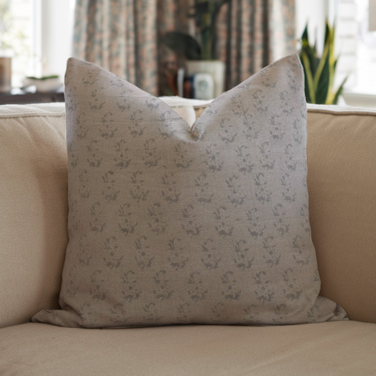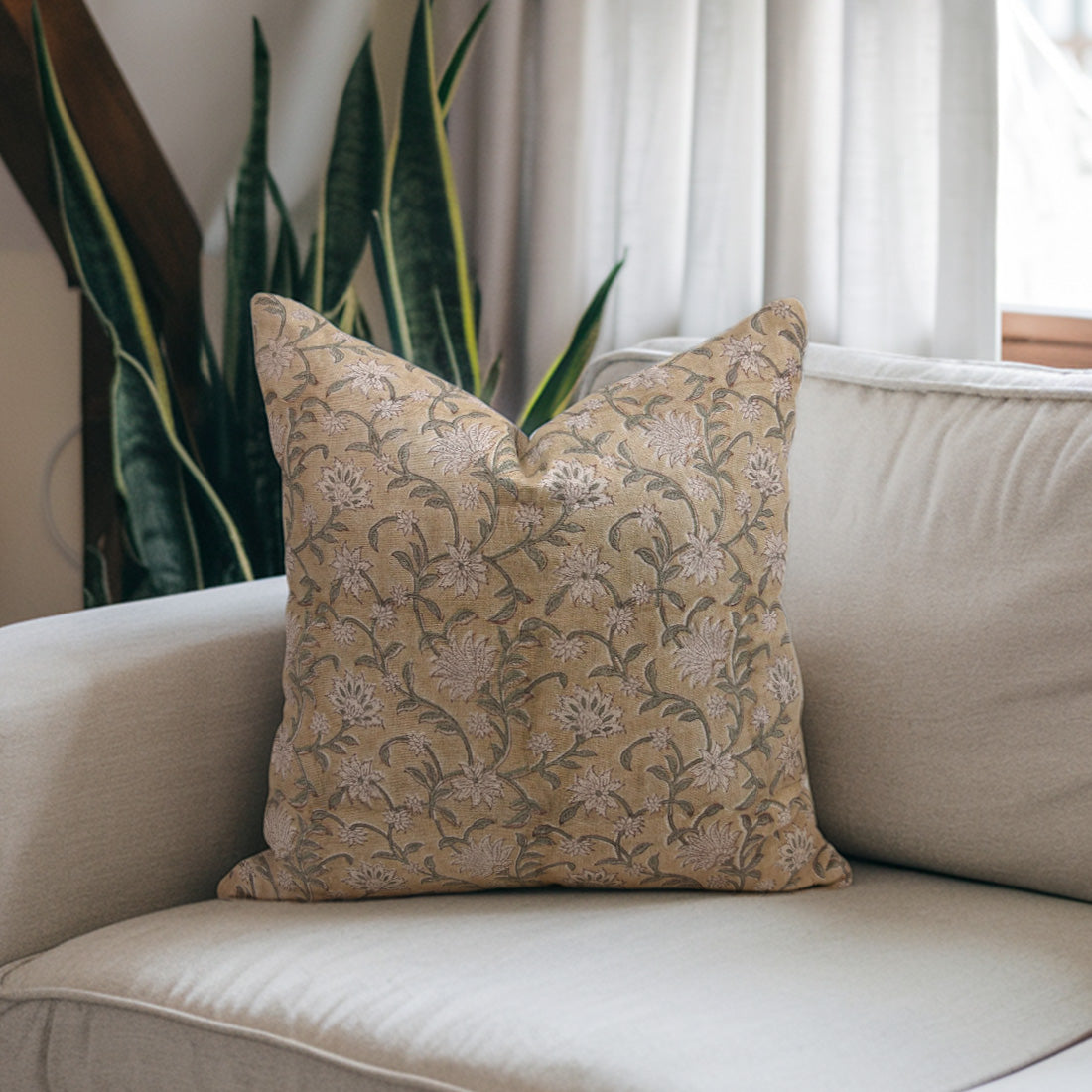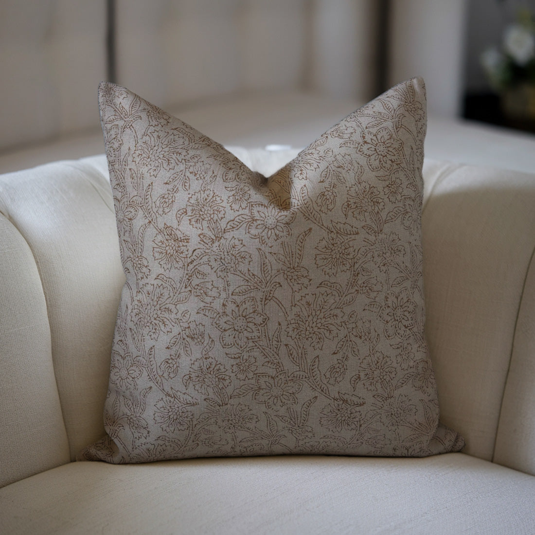 Block print Pillow cover for sofa, couch or bed- Thick/Heavy Linen- TULSI BUTI - Fabdivine