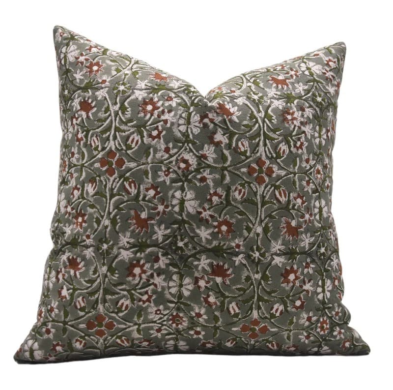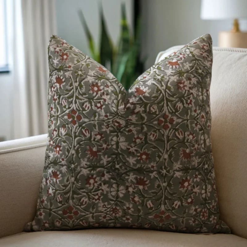 Fab Divine artisan handblock print pillow cover featuring Barfi pattern on linen blend