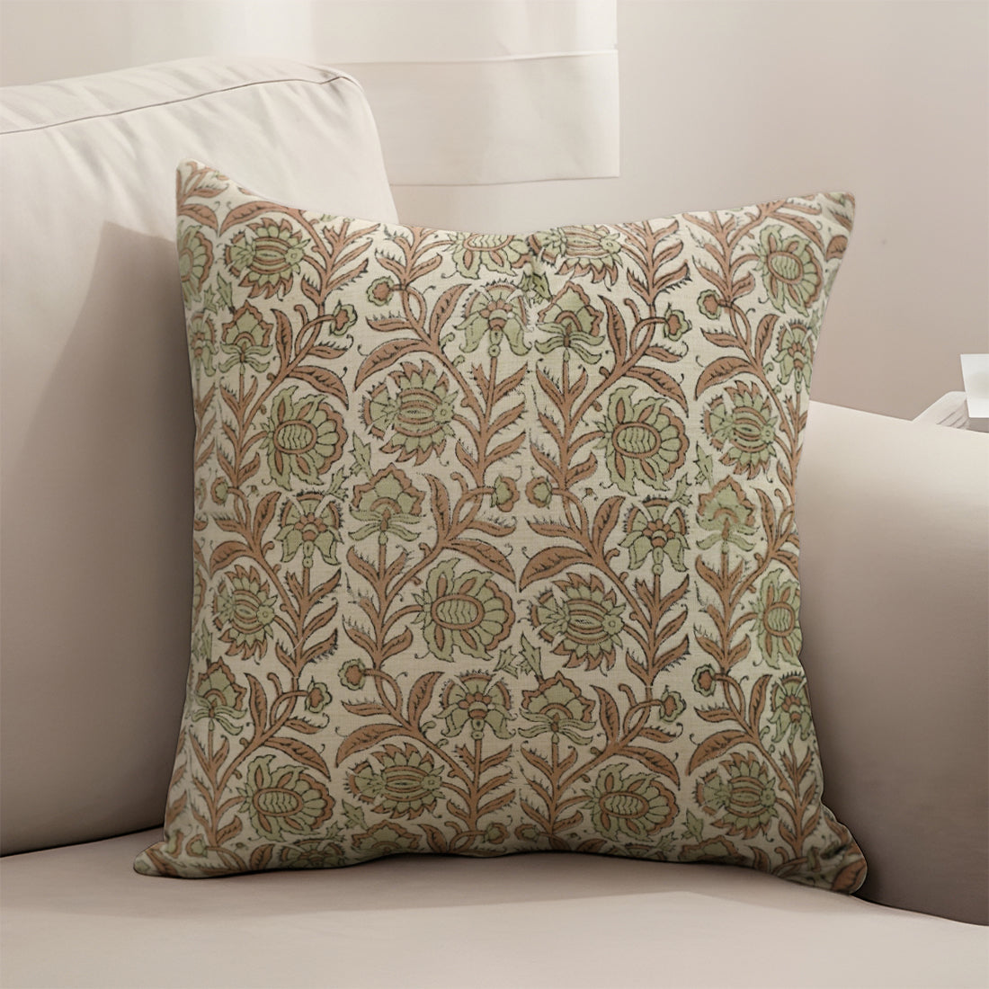 Linen Blend Hand Block Floral Printed Pillow Cover – Rajat Border By Fabdivine