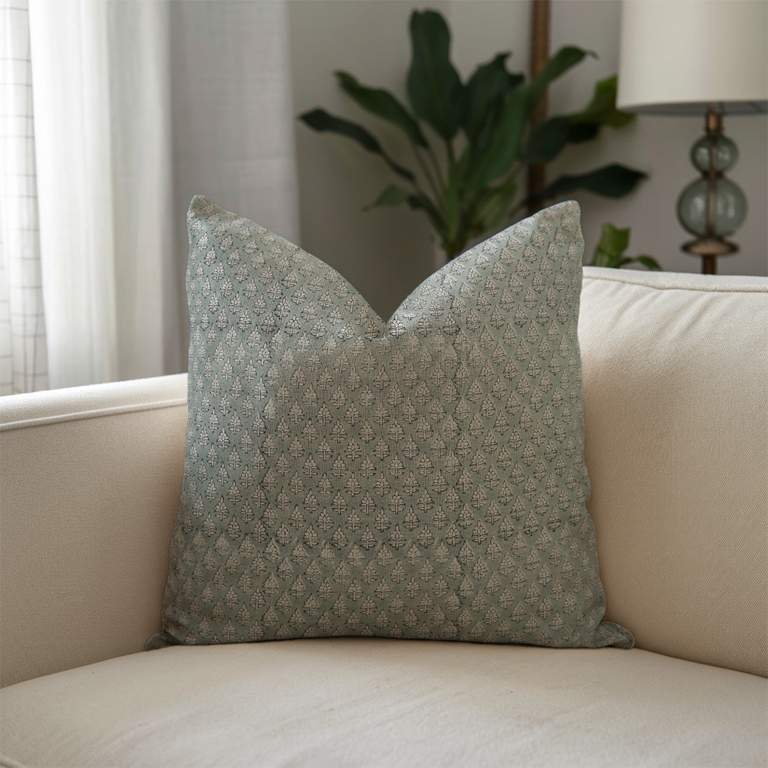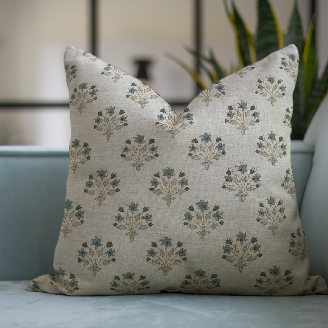 Block print Pillow cover for sofa, couch or bed- Pure Linen- SADA BAHAR - Fabdivine