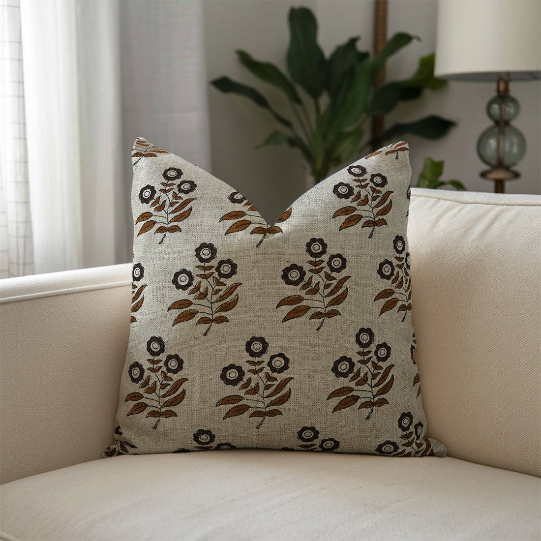 Block print Pillow cover for sofa, couch or bed- Linen Blend- CHIMNI - Fabdivine
