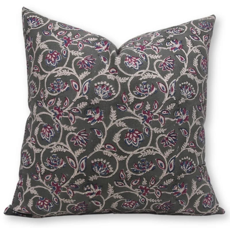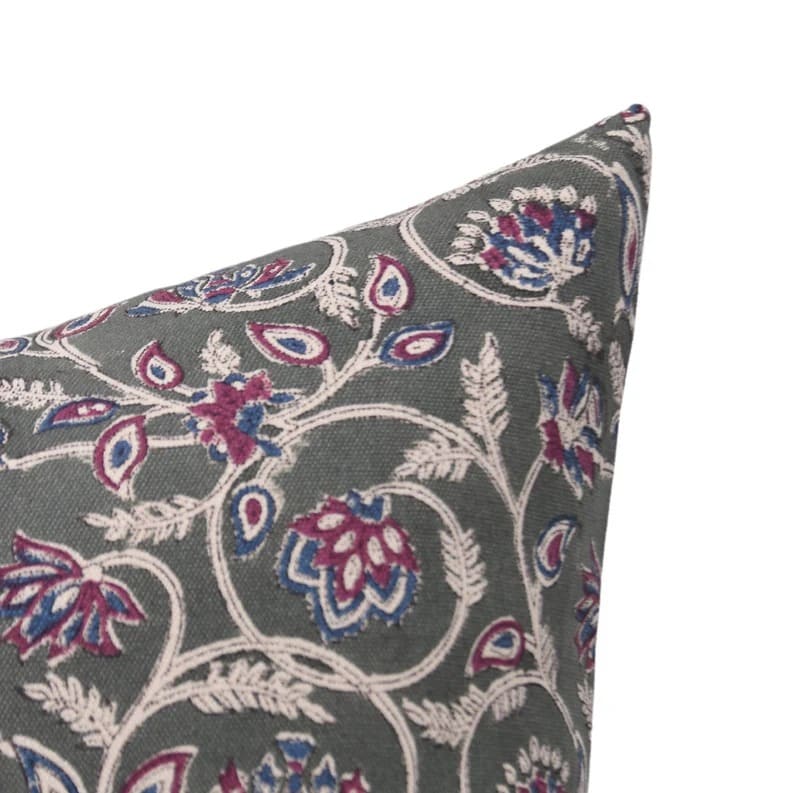 Designer Hand Block Printed Duck Canvas Cotton Throw Pillow Cover - BHEESHMA - Fabdivine