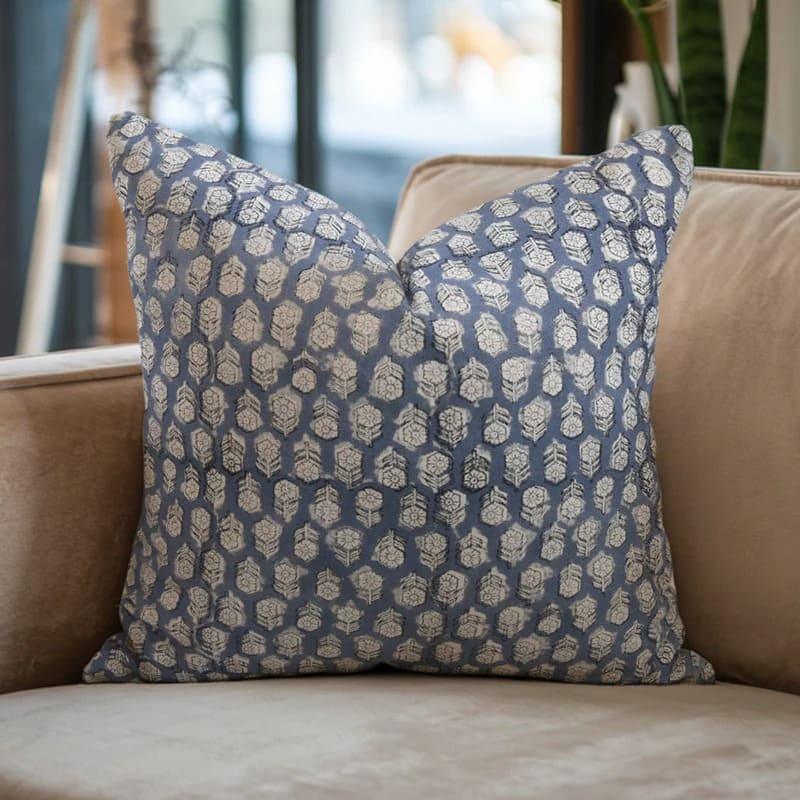 Heavy Linen block print designer boho pillow/cushion cover- TARANGINI - Fabdivine