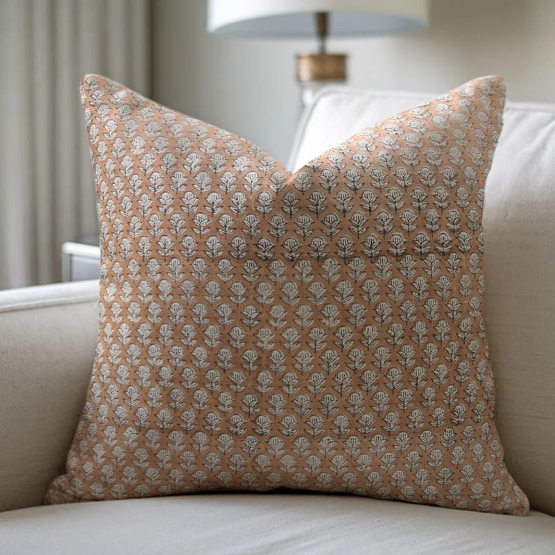 Thick Linen block print designer boho pillow/cushion cover- TULSI BUTI - Fabdivine