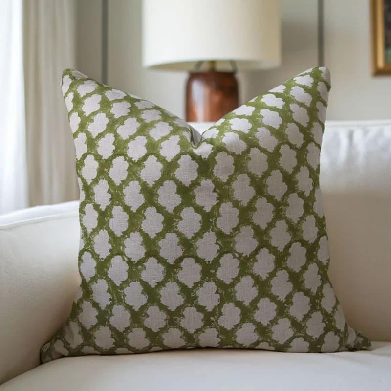 Green and white patterned boho  pillow cover