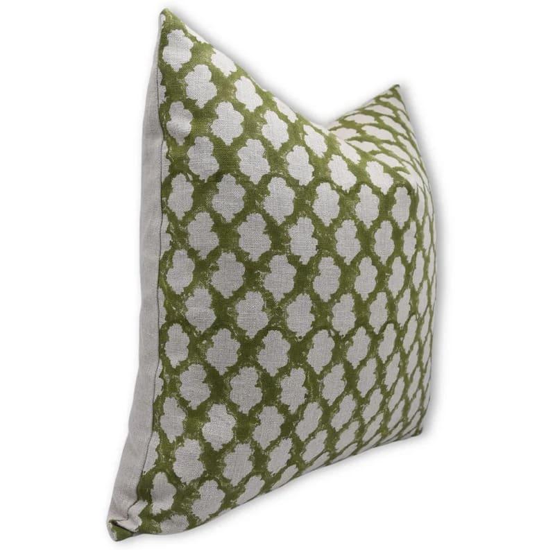 Designer pillow cover with green and white pattern