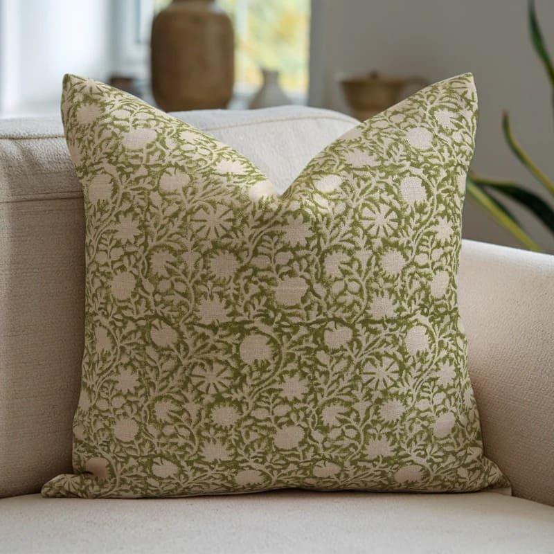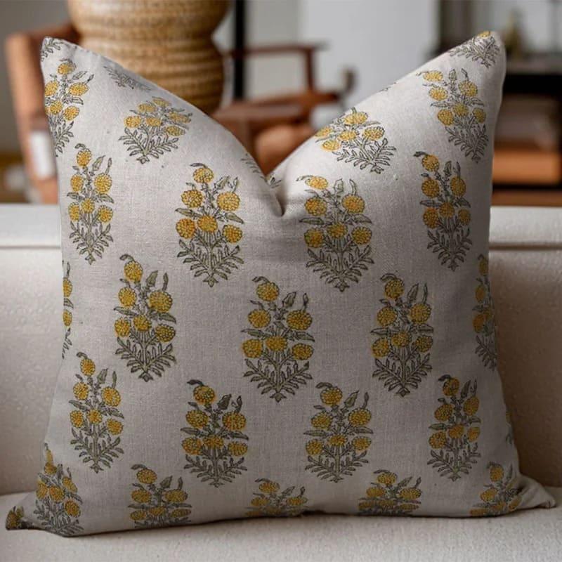 Hand Block Print thick linen designer pillow cover- PUSHP VARSHA - Fabdivine