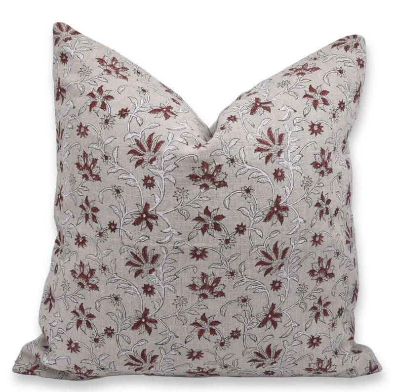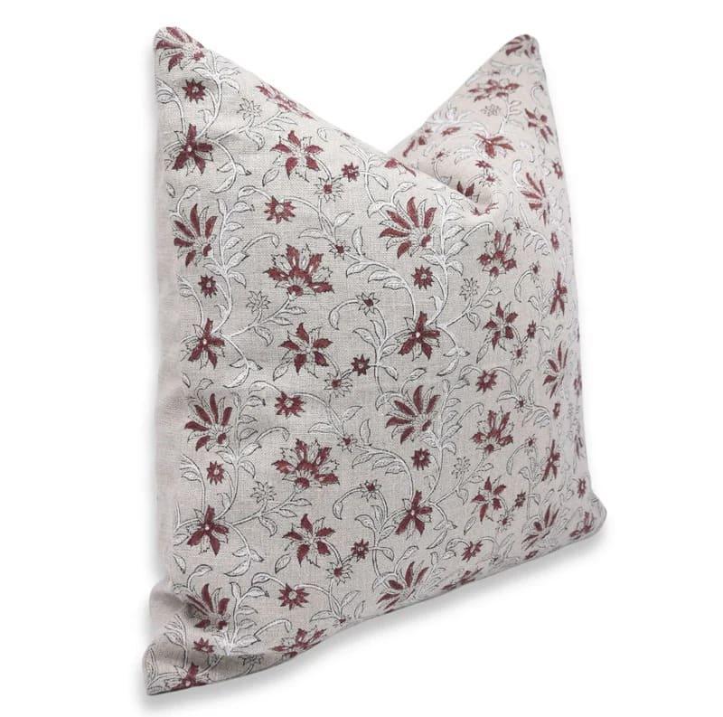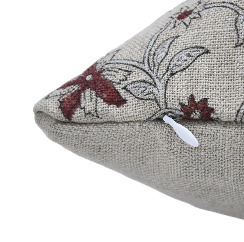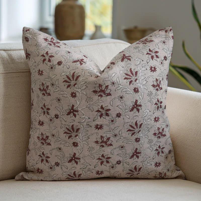 hand block printed pillow cover with floral pattern